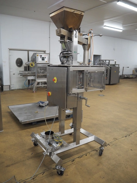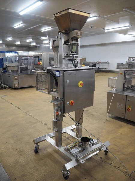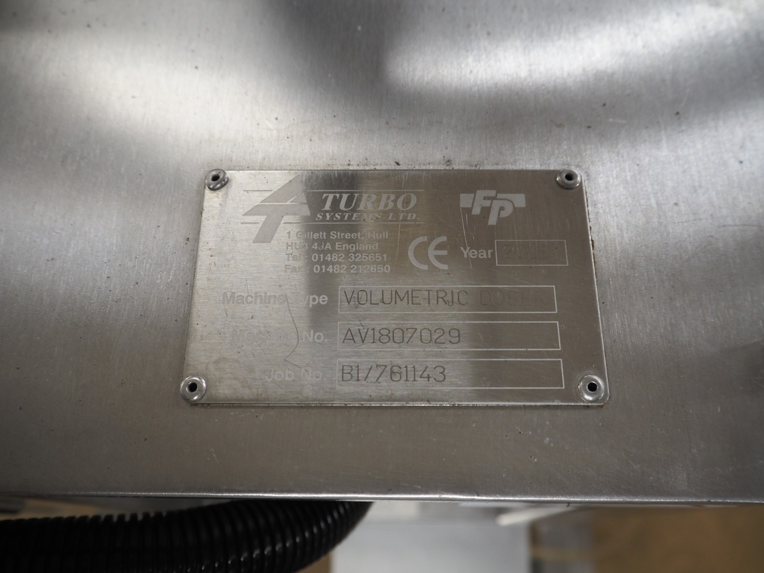 Turbo Systems LTD. mobile dosing machine, type: VOLUMETRIC DOSER, machine number: AV1807029, year of construction: 2018, infeed clearance: 350 mm x 390 mm, vibrating gutter length: 520 mm, vibrating gutter width: 145 mm, outfeed pipe: Ø 105 mm, total dimensions: 1050 mm x 960 mm x 2310 mm. Including extra dosing head, outfeed pipe: Ø 80 mm.