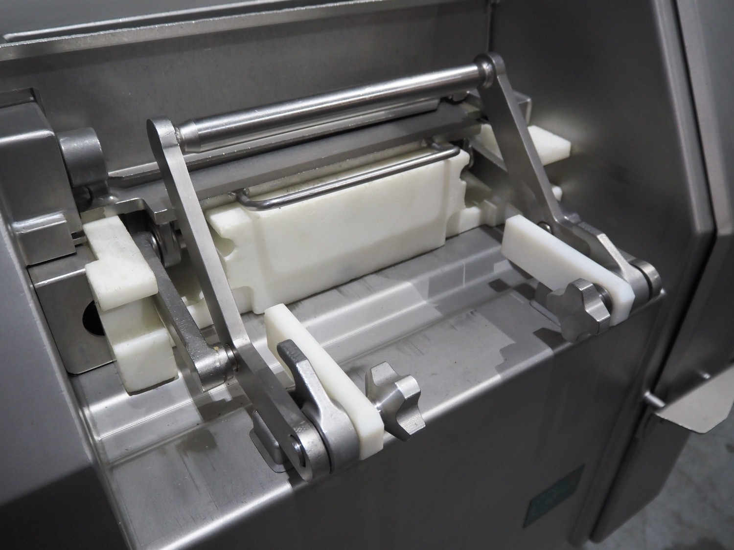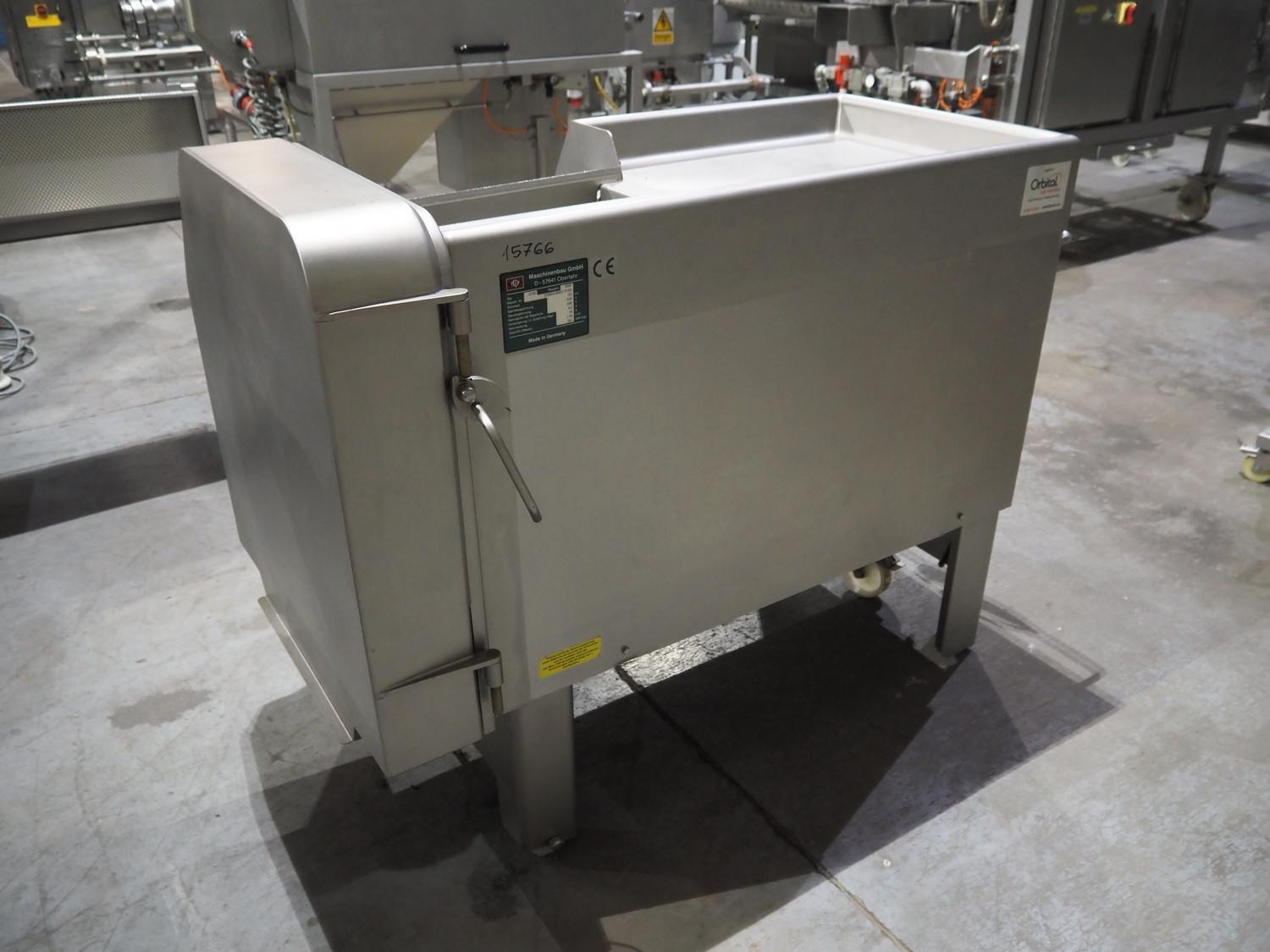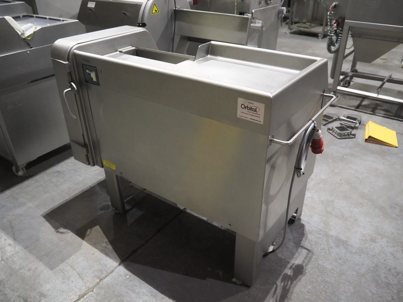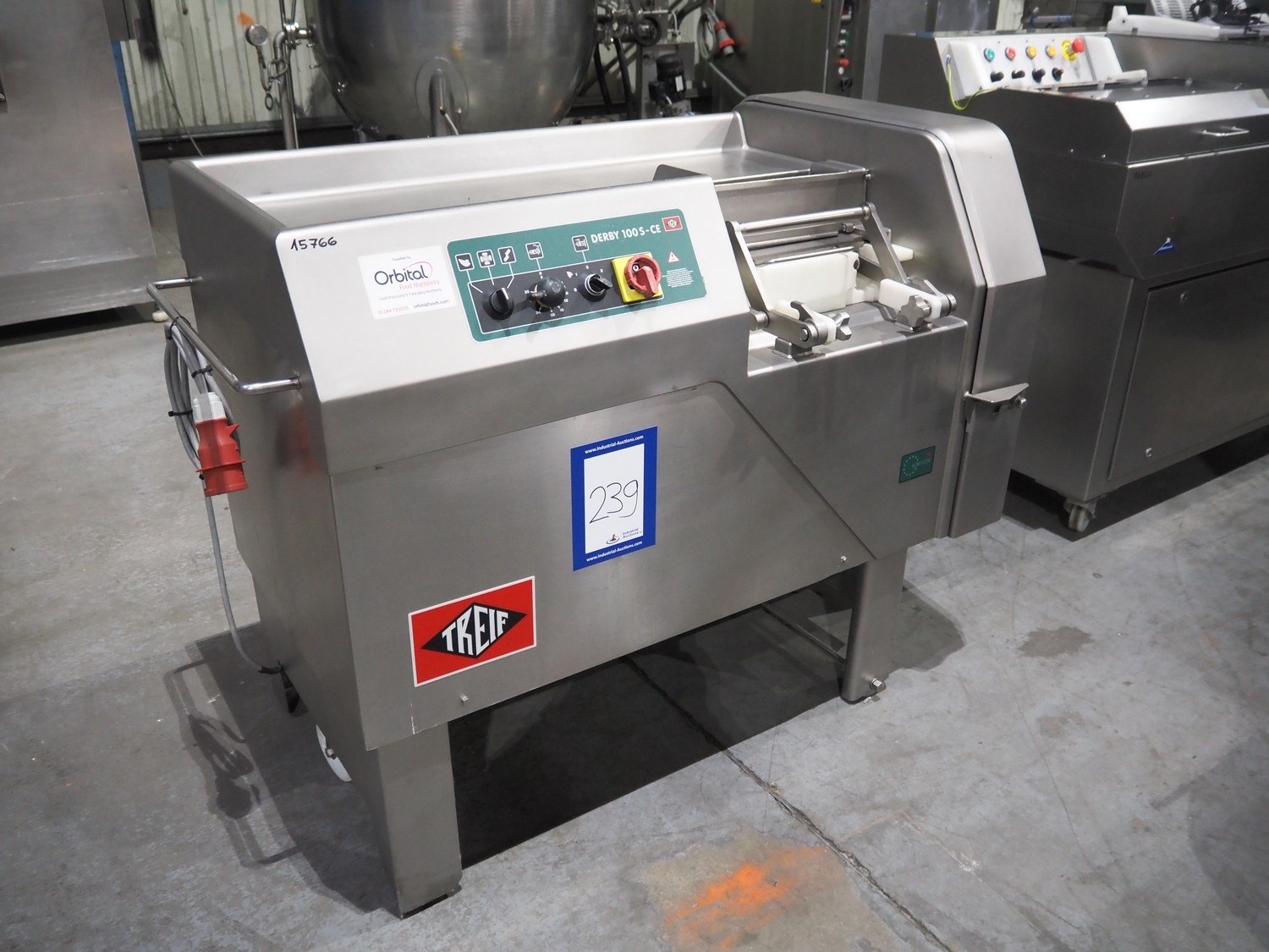 Treif Maschinebau GmbH dicer, type: 2740, machine number: 274003.69021.0120, year of construction: 1999, 400 V, 50 Hz, 4.2 A, 1.75 kW, weight: 281 kg, dimensions chamber: 105 mm x 95 mm, total dimensions: 1400 mm x 800 mm x 1100 mm. Including extra grid set.