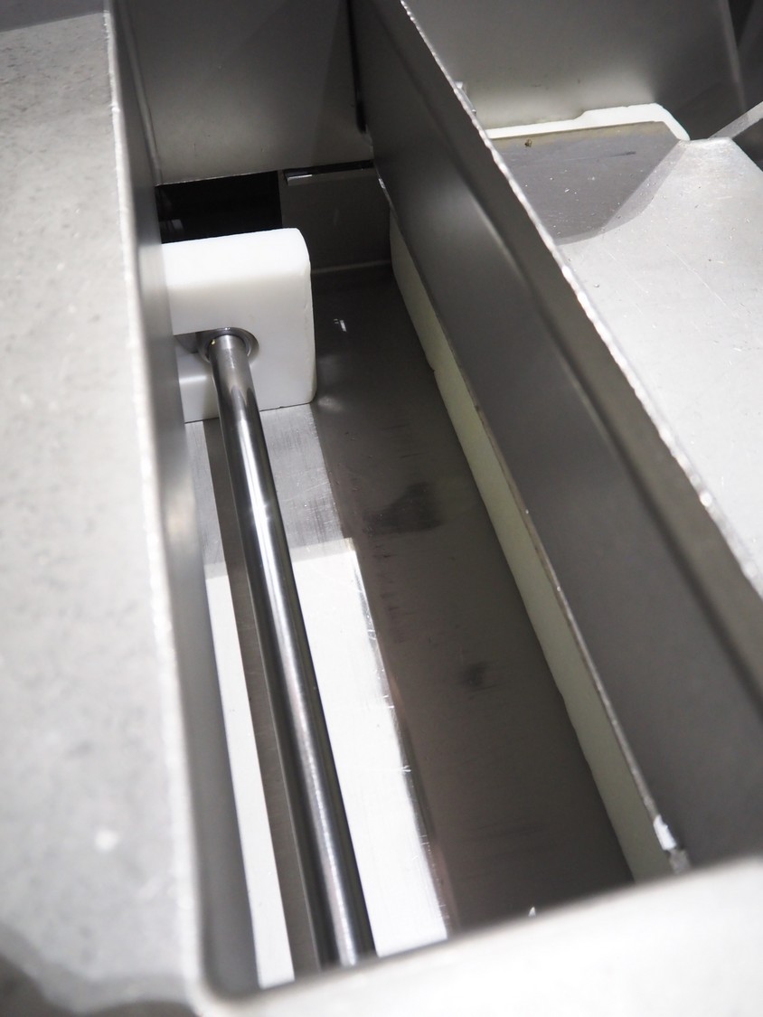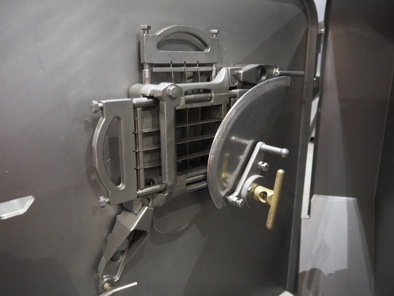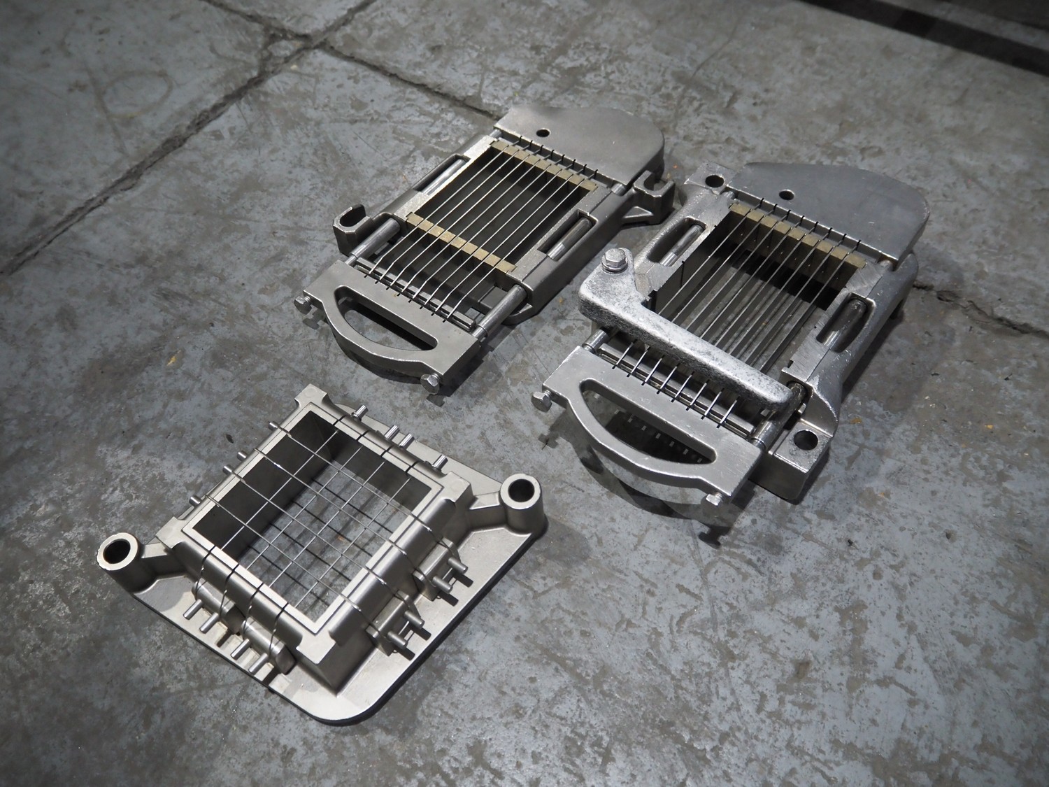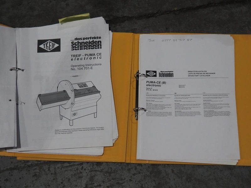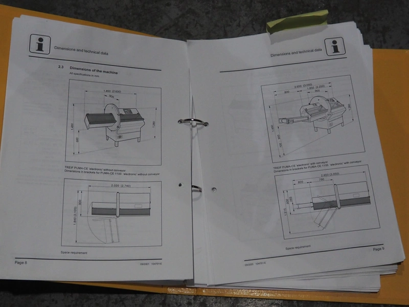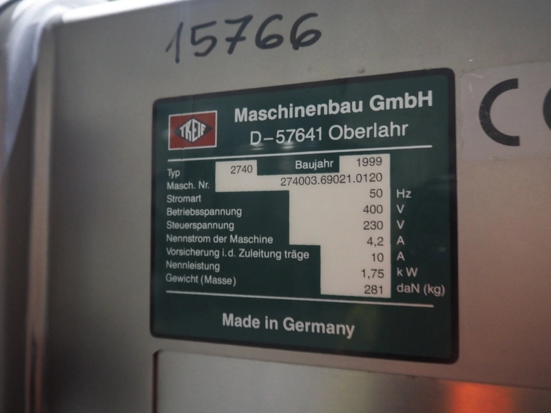 Treif Maschinebau GmbH dicer, type: 2740, machine number: 274003.69021.0120, year of construction: 1999, 400 V, 50 Hz, 4.2 A, 1.75 kW, weight: 281 kg, dimensions chamber: 105 mm x 95 mm, total dimensions: 1400 mm x 800 mm x 1100 mm. Including extra grid set.