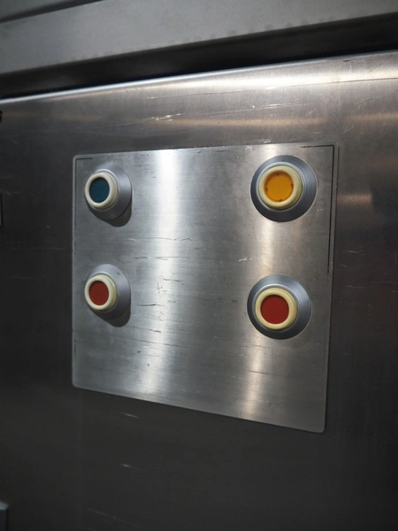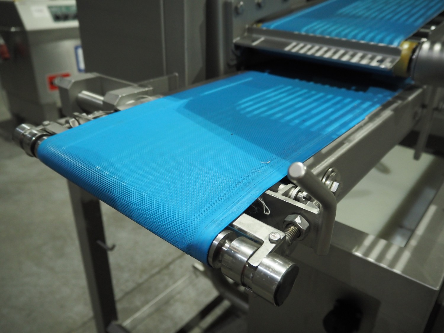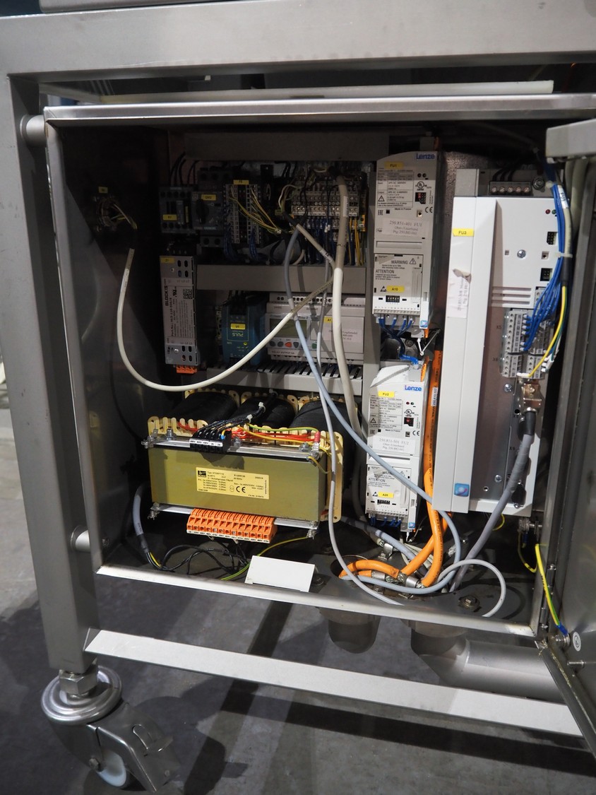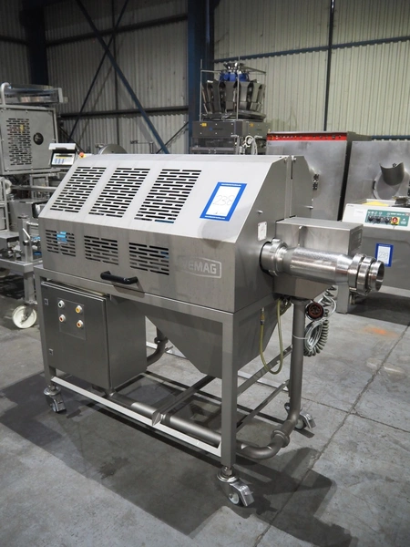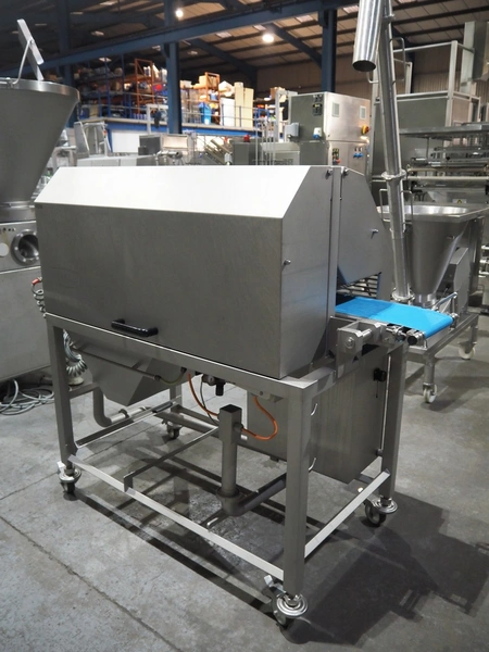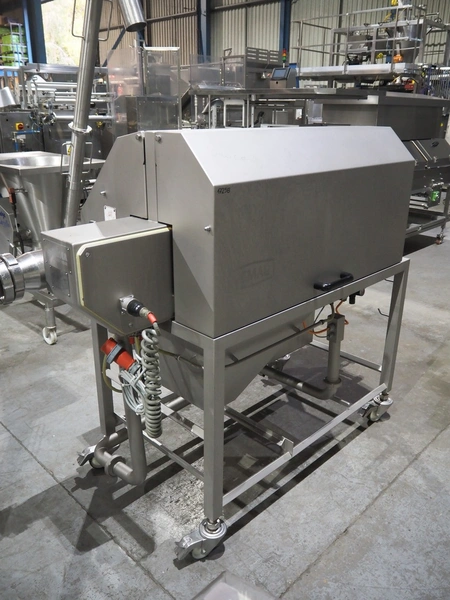 Vemag mobile hamburger forming machine, model: FM250, number: 2500648, year of construction: 2016, 400-460 V, 3 Ph, 50/60 Hz, 4 A, 2.5 kW, weight: 340 kg, diameter clearance: 90 mm, plastic belt, belt width: 245 mm, total dimensions: 2000 mm x 850 mm x 1500 mm