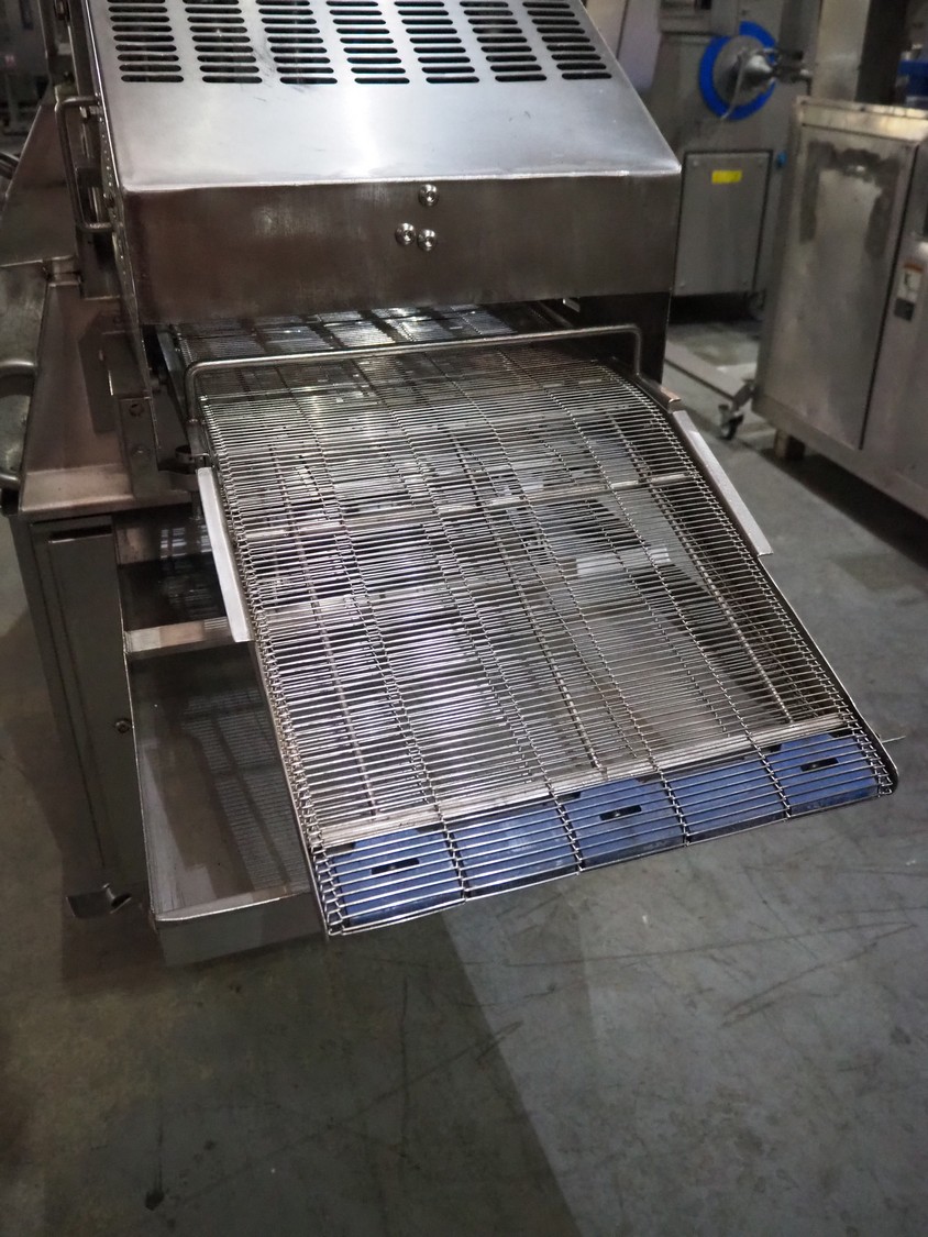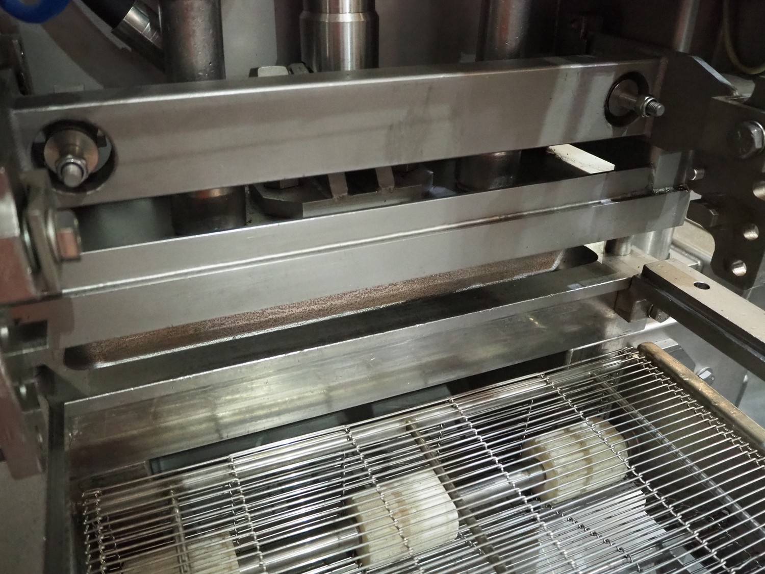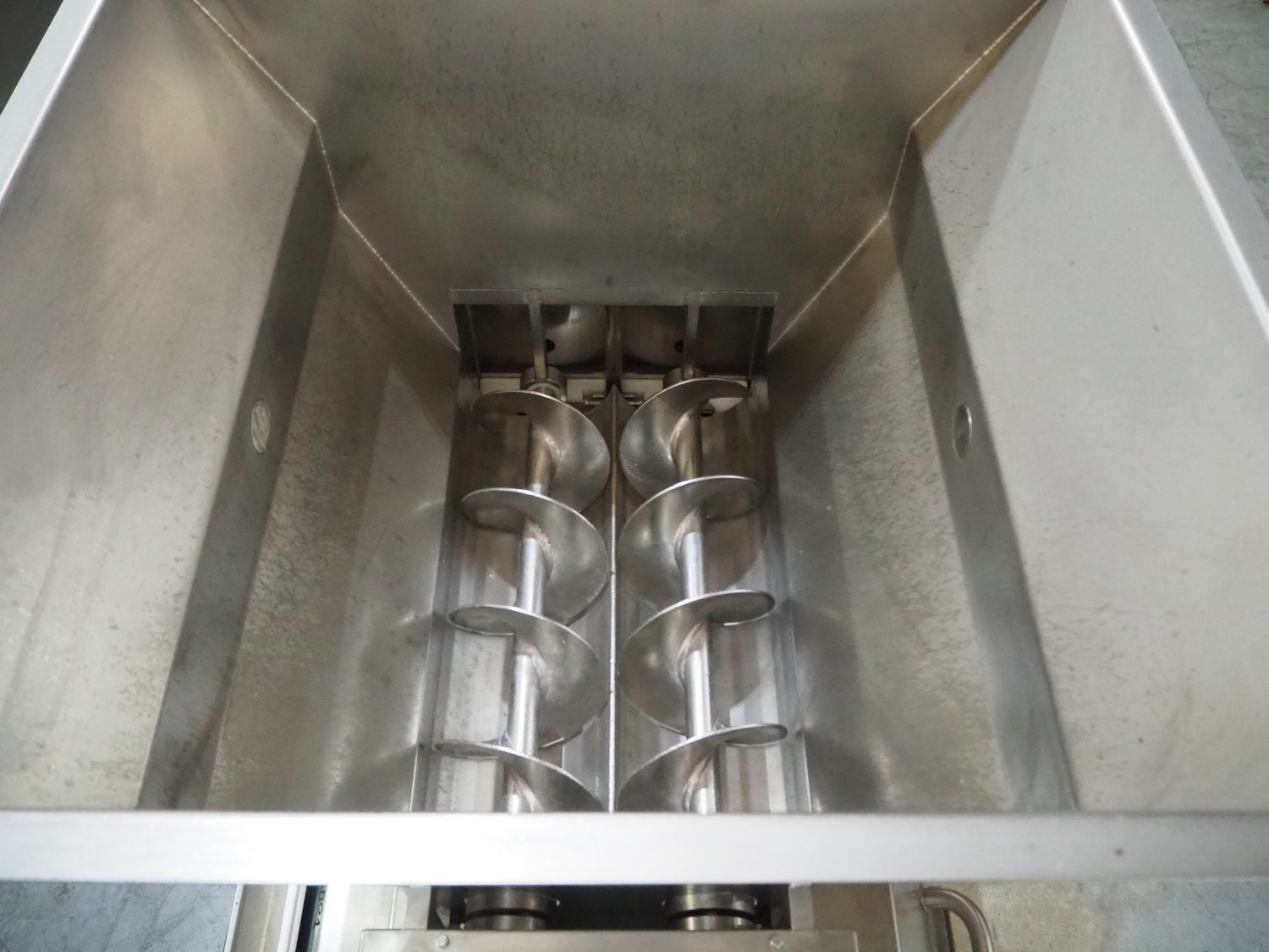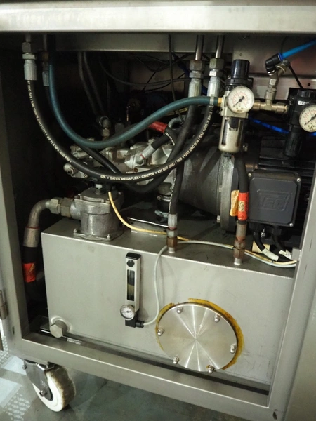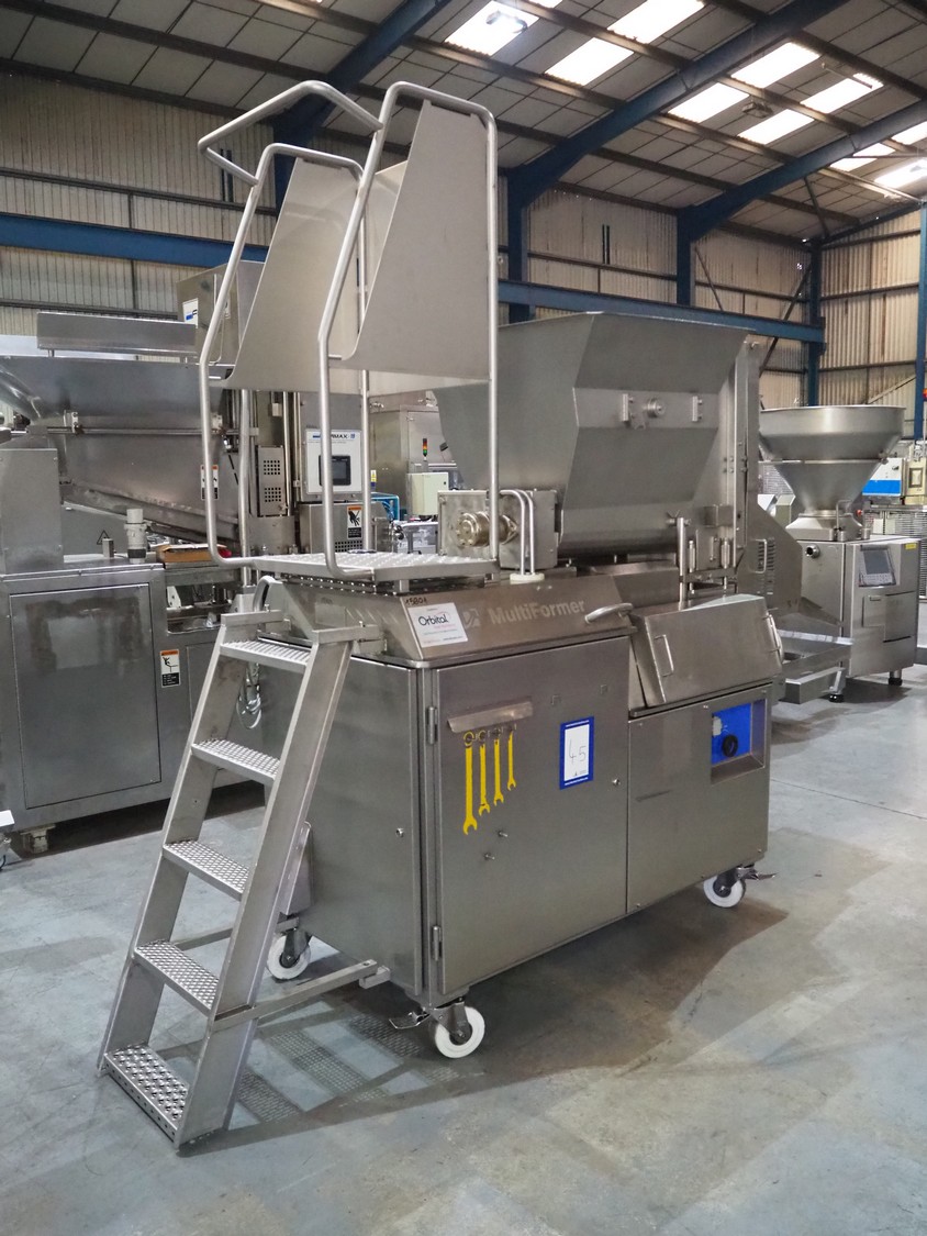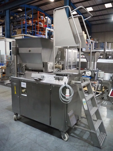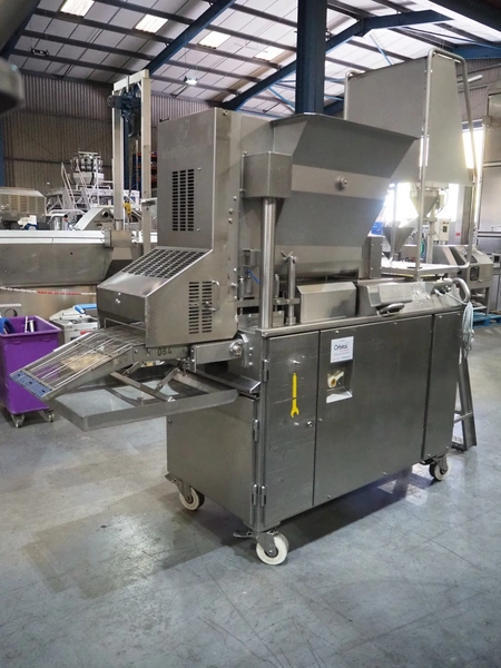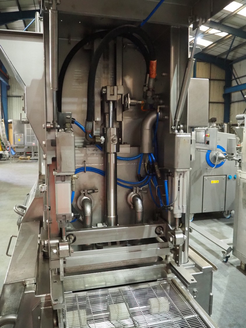 GEA / CFS mobile forming machine, type: MLF 400, machine number: 2178, year of construction: 2001, 380 V, 3 Ph, 50 Hz, 16.95 A, 7.77 kW, weight: 1186 kg, with GEA upgraded screen, s/s mesh belt, belt width: 400 mm, total dimensions: 3300 mm x 900 mm x 2600 mm. Missing forming plate and ejector.