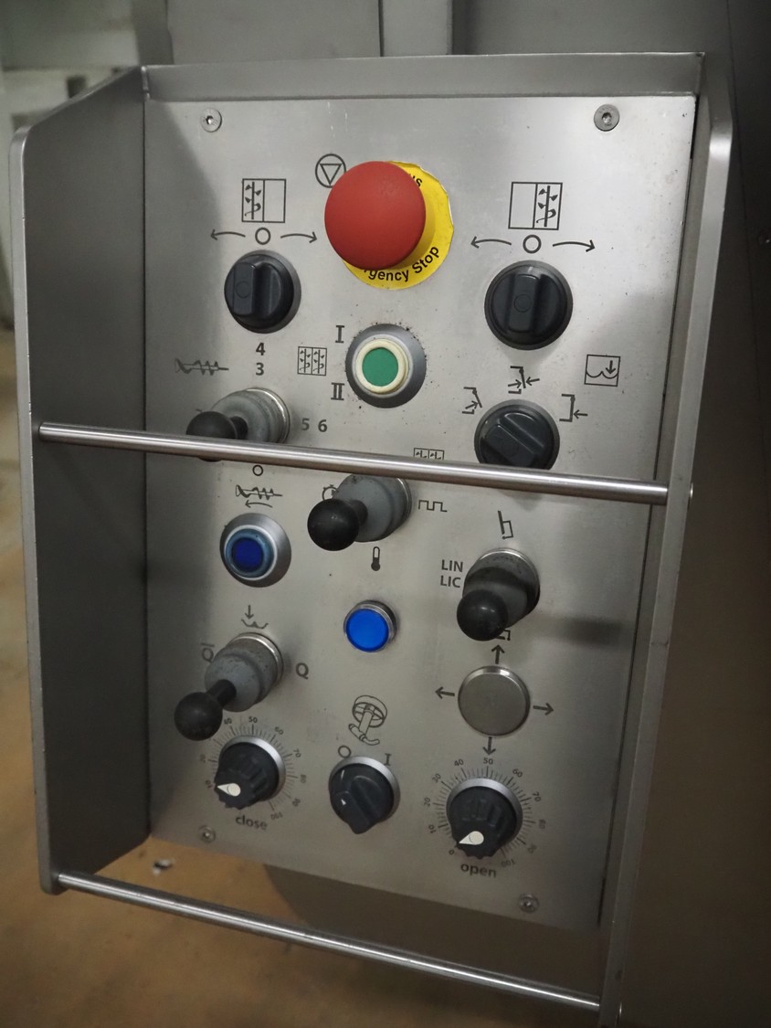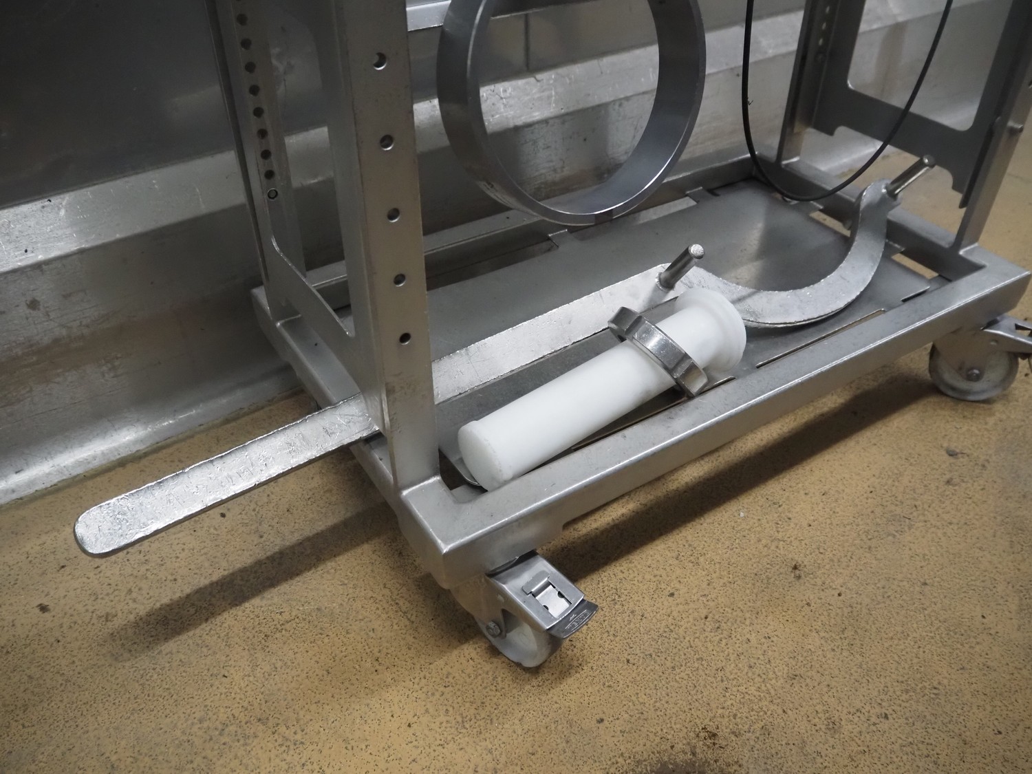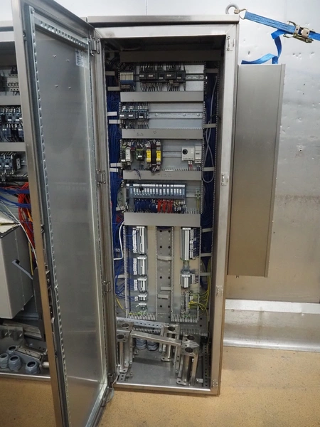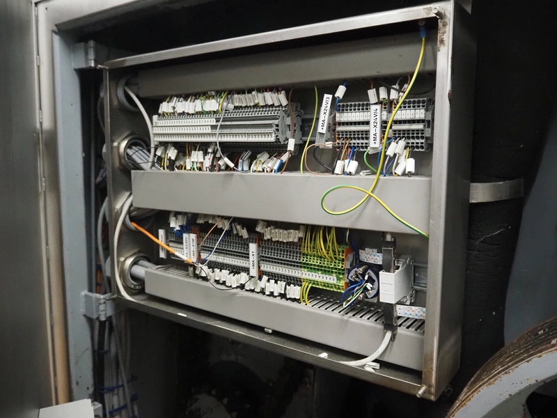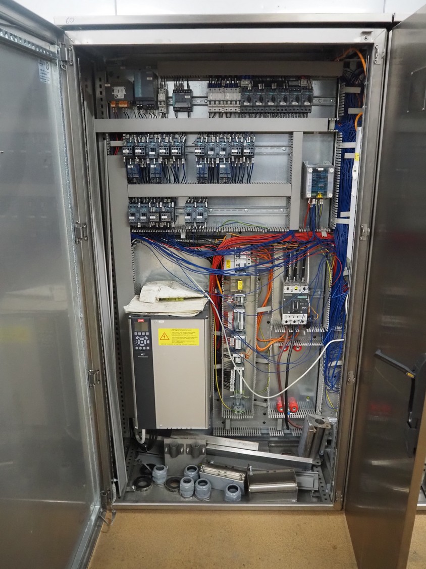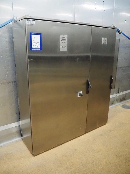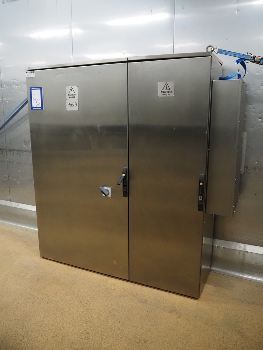 Seydelmann paddle mixer / grinder with CO2 cooling function, type: MRU 1300, machine number: 16 641-1, year of construction: 2016, 400 V, 50 Hz, 116 A, 57 kW, weight: 2500 kg, volume: 1300 liter, plate diameter: 200 mm, dimensions: 2700 mm x 1700 mm x 2750 mm. Including s/s switch cabinet, dimensions: 1820 mm x 500 mm x 1900 mm, s/s tool trolley, dimensions: 1200 mm x 450 mm x 970 mm.