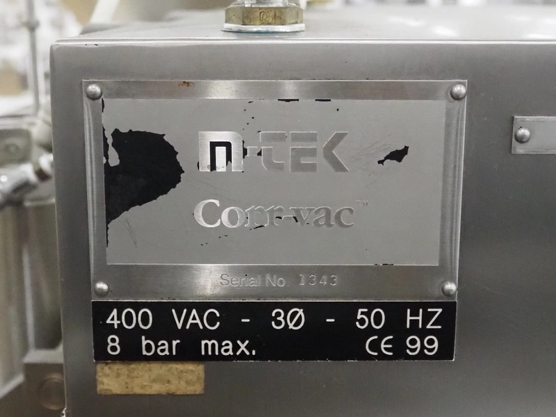 M-TEK modified atmosphere packaging machine, model: Corr-Vac, serial number: 1343, year of construction: 1999, 400 V, 3 Ph, 50 Hz, 2.9 kW, 8 bar, seal length: 1400 mm, total dimensions: 1440 mm x 1000 mm x 1800 mm.