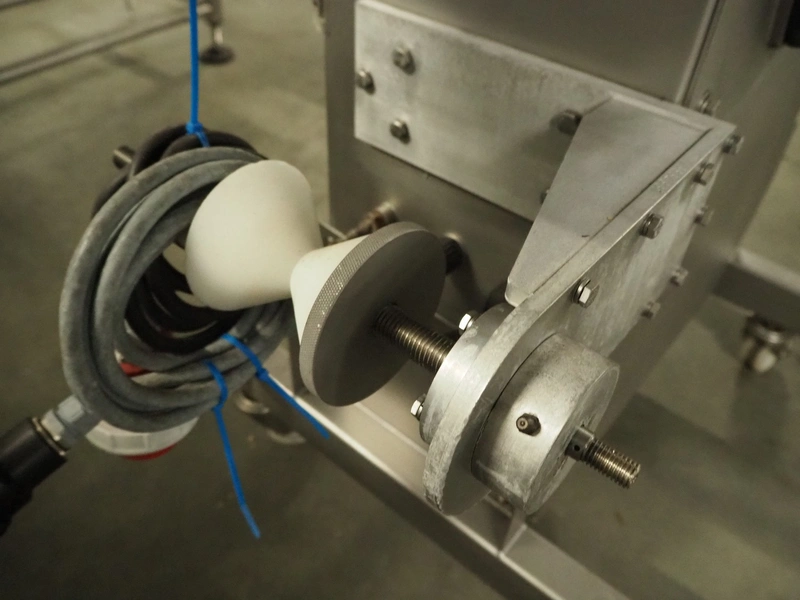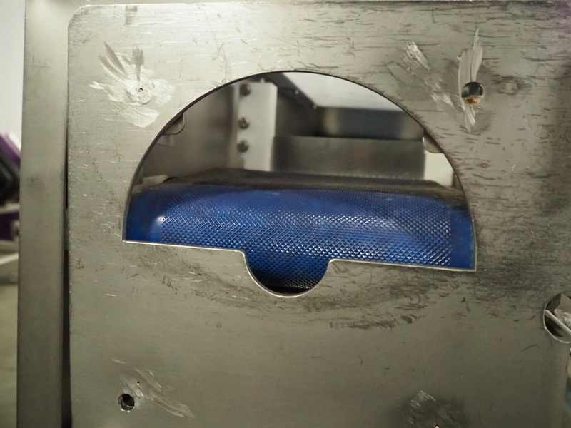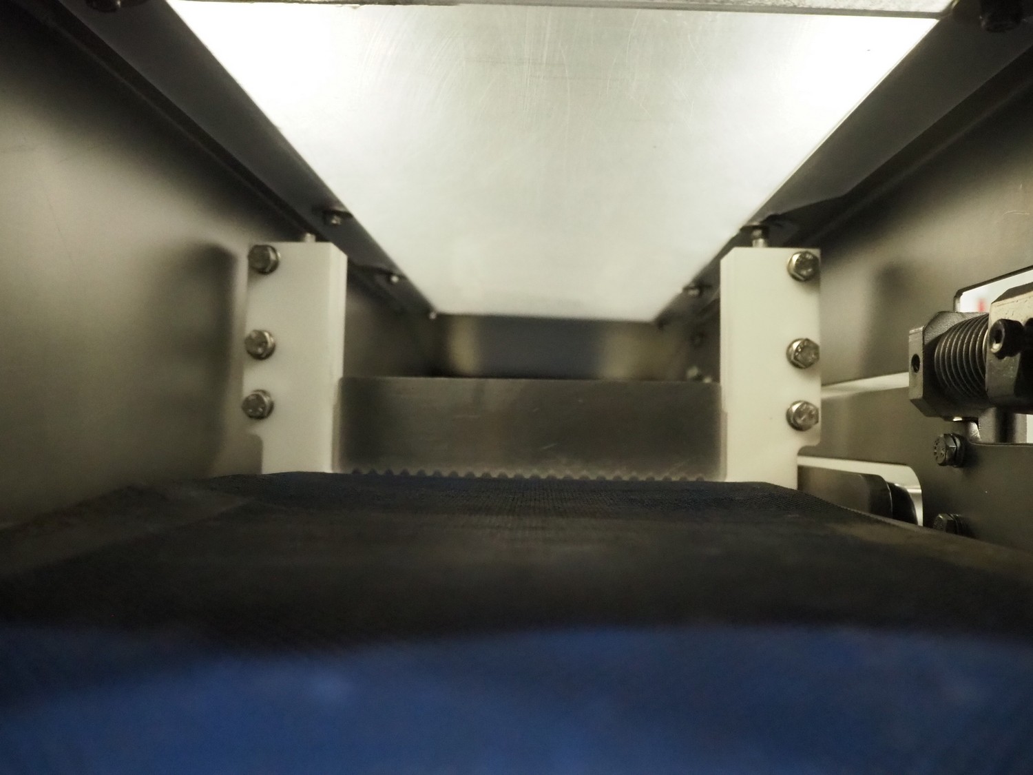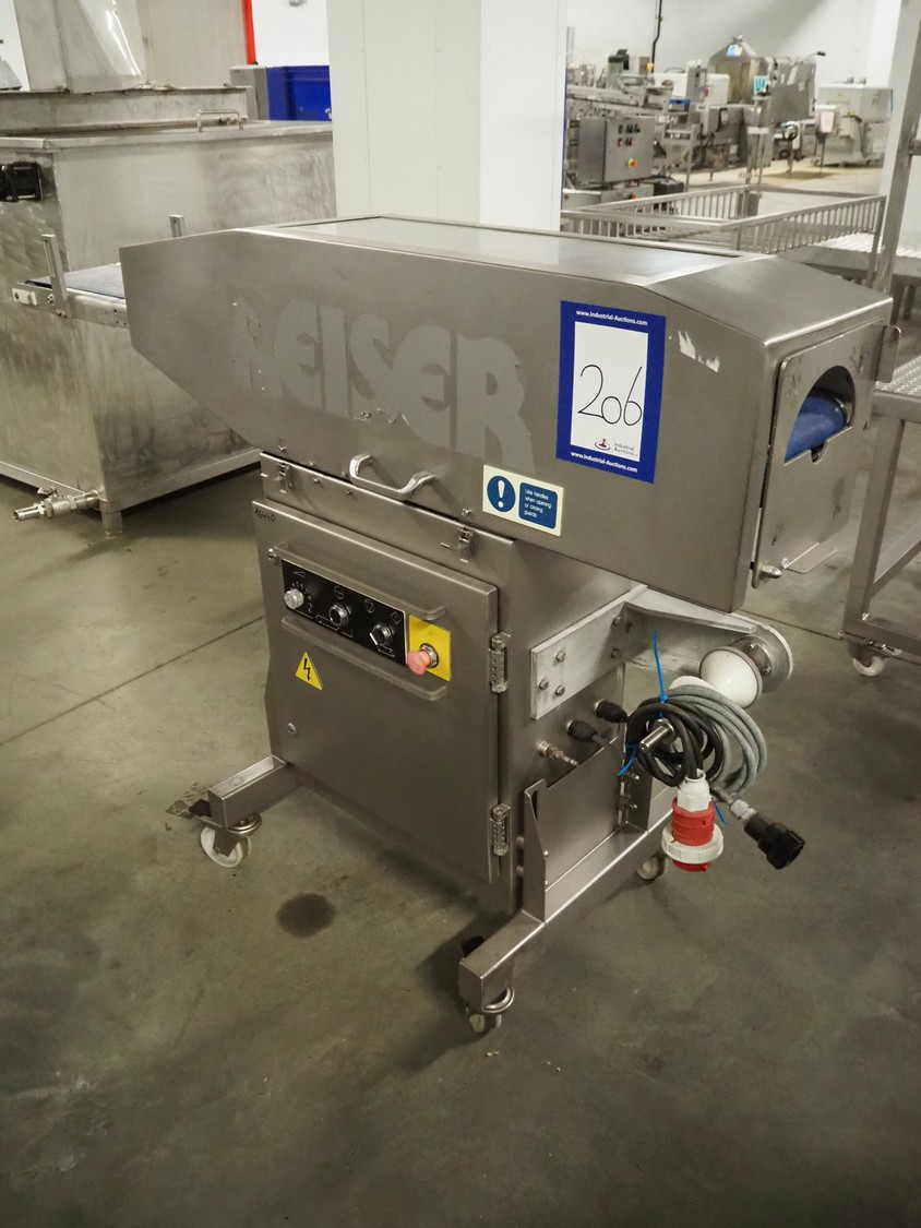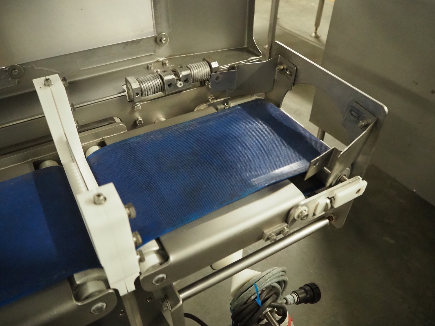 Ross Industries Inc. mobile portioning machine, model: GB200, serial number: 395, year of construction: 2006, 208-240 V, 1 Ph, 50/60 Hz, working width: 205 mm, plastic belt, belt width: 205 mm, total dimensions: 1800 mm x 650 mm x 1250 mm.