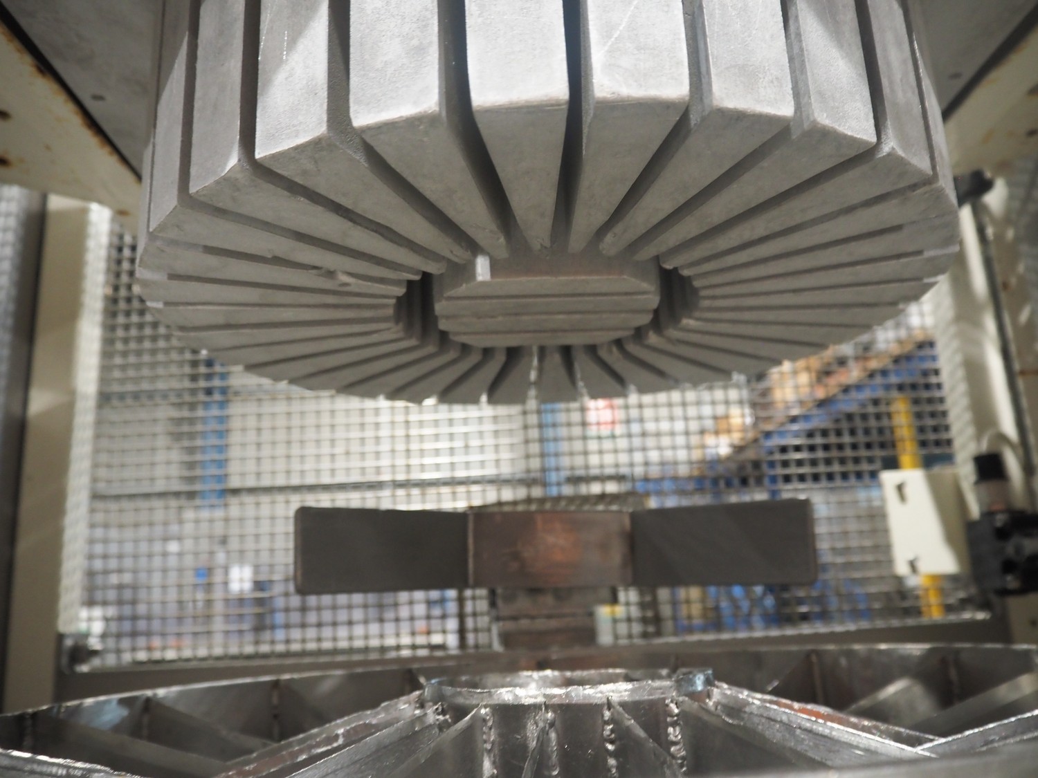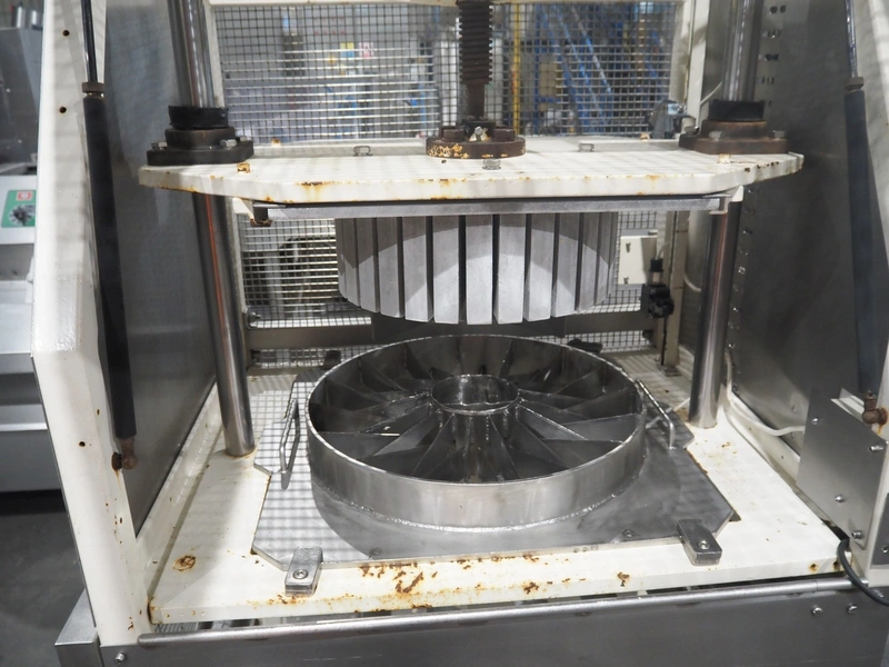Mobile press, diameter press: 450 mm, plastic rollers, roller width: 500 mm, total dimensions: 1550 mm x 1220 mm x 2200 mm.