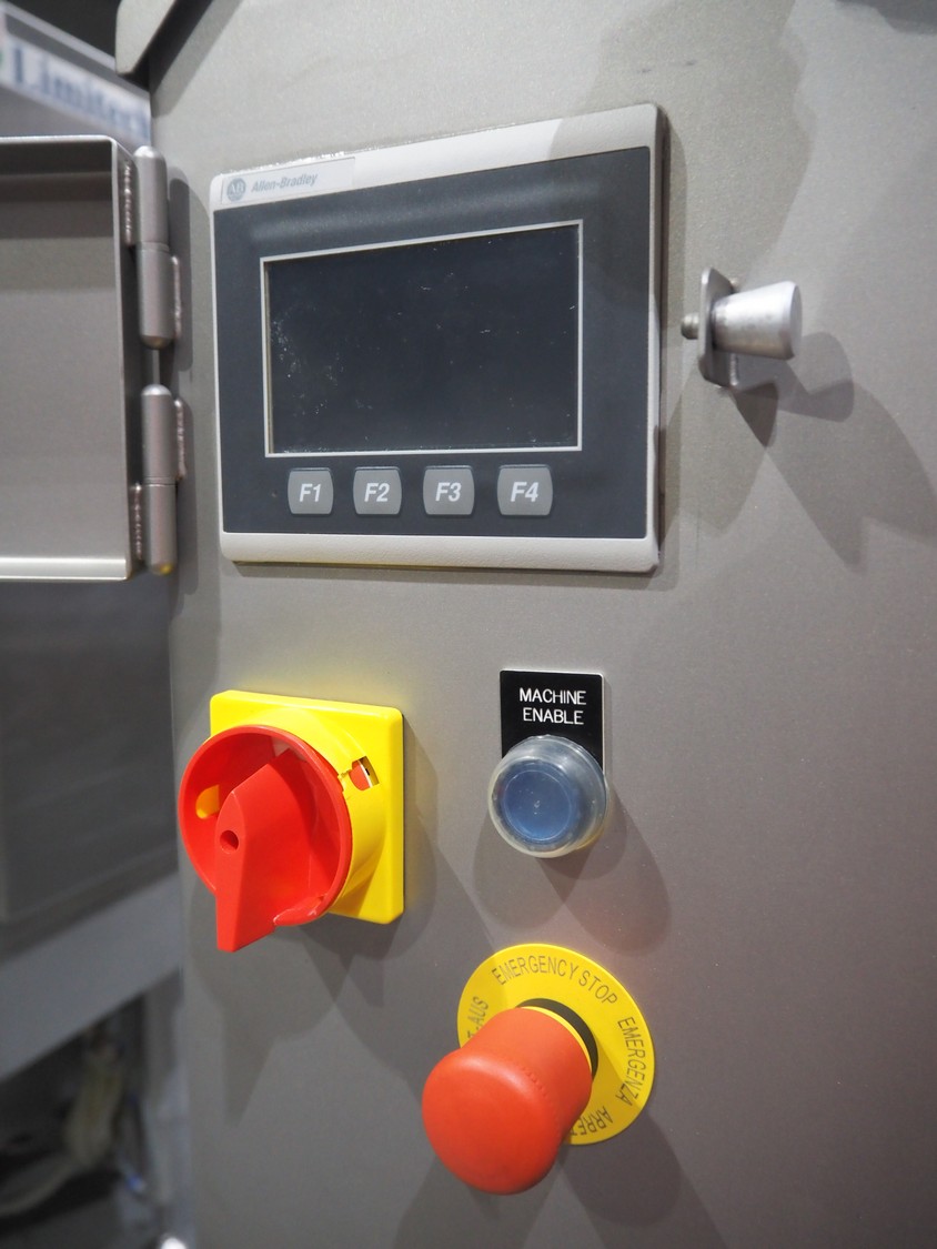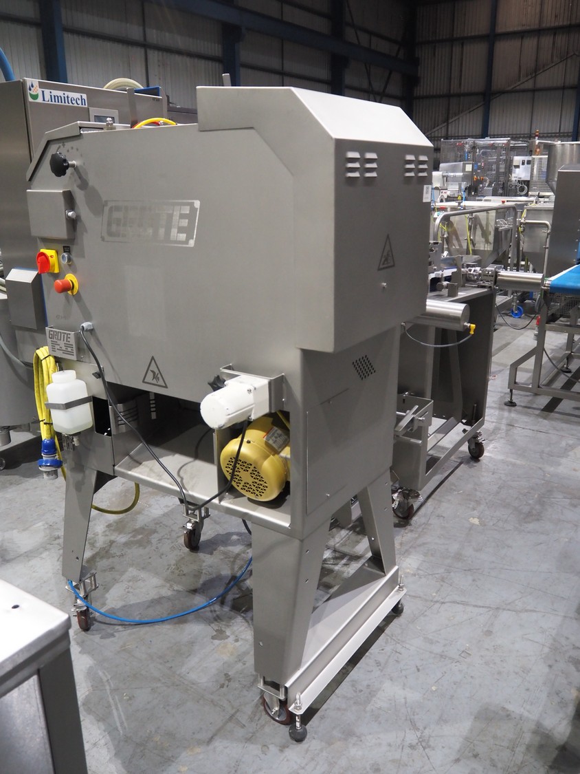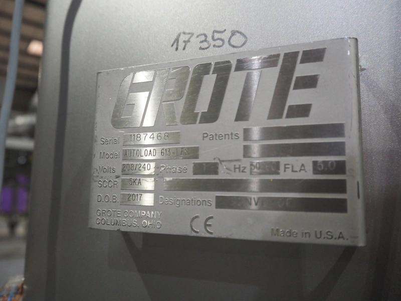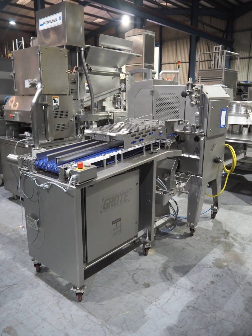 Grote mobile slicer with infeed belt, model: 613-VS2-LES, serial number: 1187467, year of construction: 2017, 208/240 V, 1 Ph, 50/60 Hz, working width: 350 mm, plastic mesh belt, belt width: 300 mm, total dimensions: 2300 mm x 1100mm x 1700 mm.