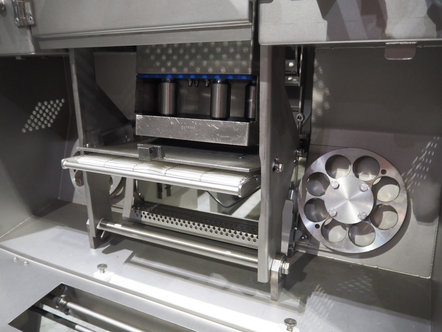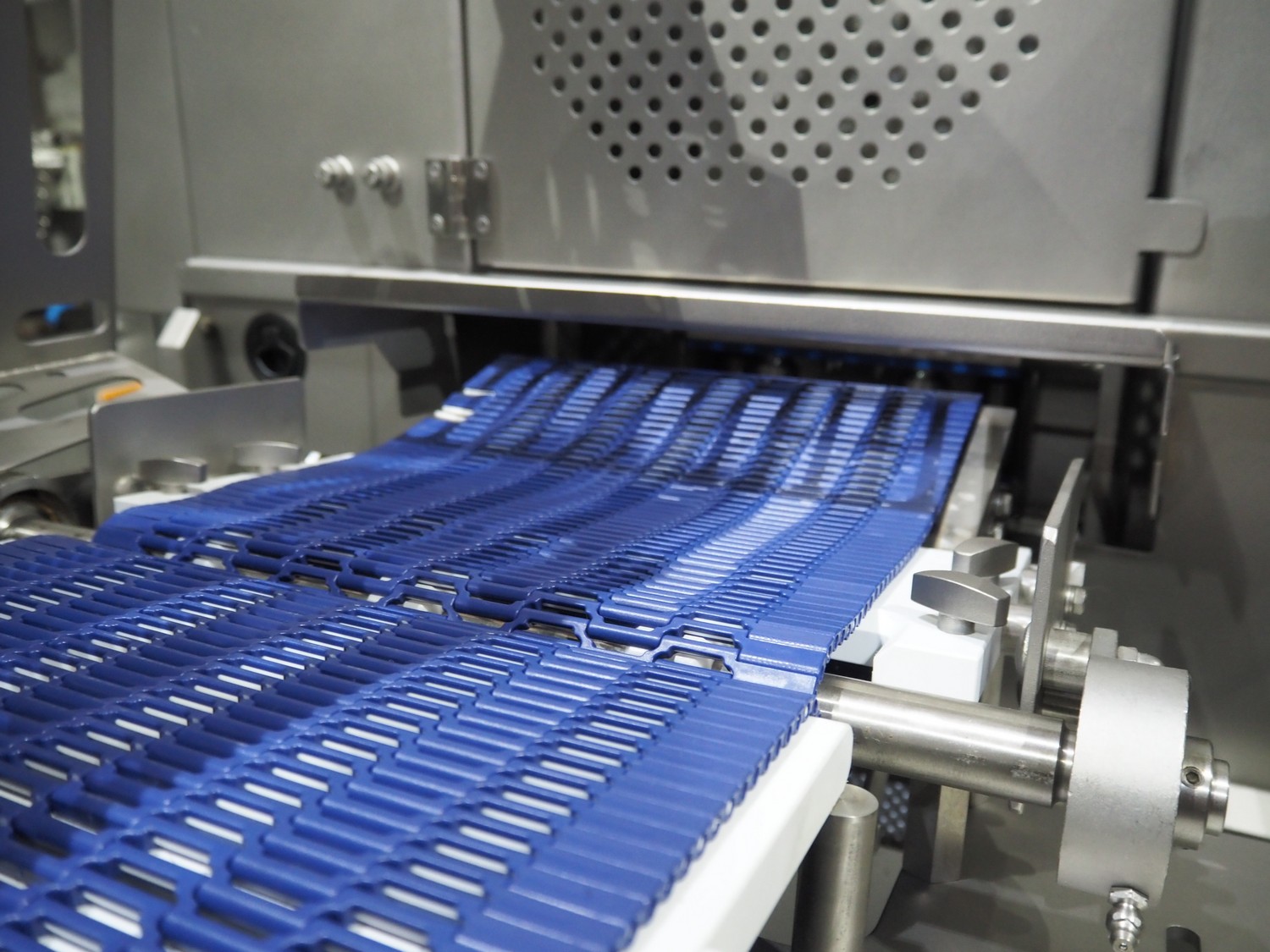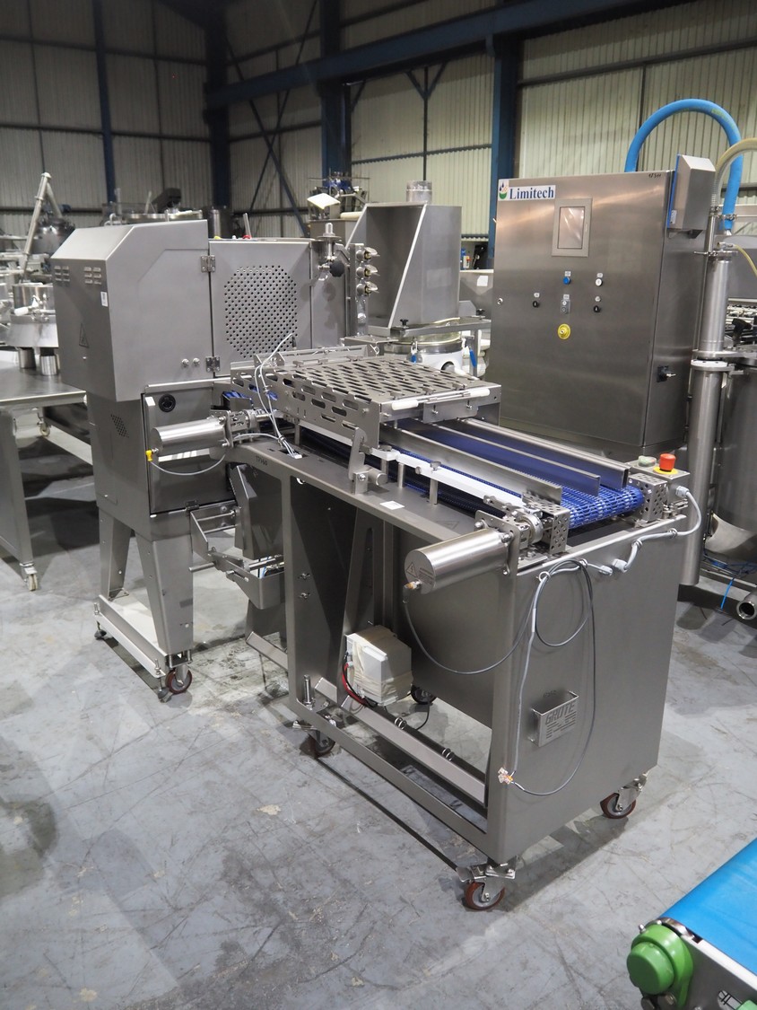Grote mobile slicer with infeed belt, model: 613-VS2-LES, serial number: 1187467, year of construction: 2017, 208/240 V, 1 Ph, 50/60 Hz, working width: 350 mm, plastic mesh belt, belt width: 300 mm, total dimensions: 2300 mm x 1100mm x 1700 mm.