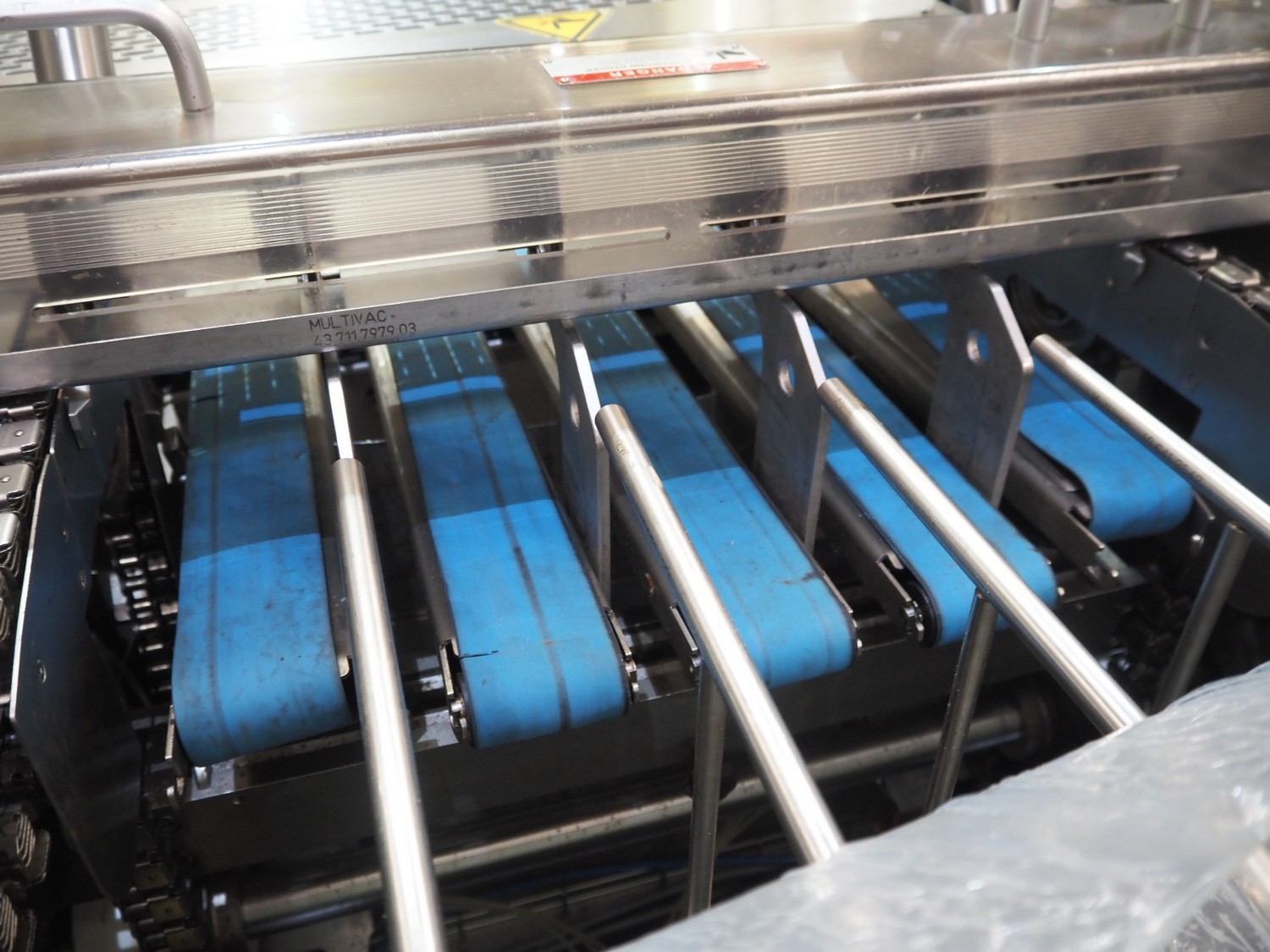 Multivac thermoformer, type: R535, serial number: 146583, year of construction: 2011, 415 V, 3 Ph, 50 Hz, 50 A, 17.5 kW, film width: 570 mm, dimensions dye: (10x) 243 mm x 93 mm, with inliner, plastic belt, belt width: (5x) 80 mm, 680 mm, total dimensions: 8200 mm x 1300 mm x 2300 mm, 1500 mm x 1200 mm x 600 mm.