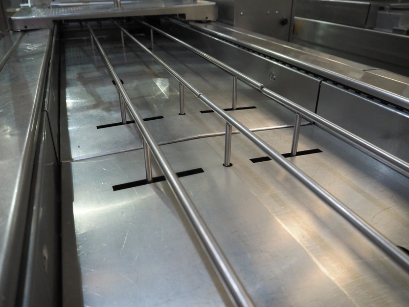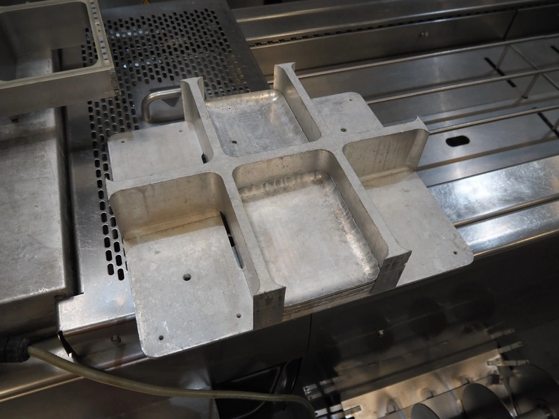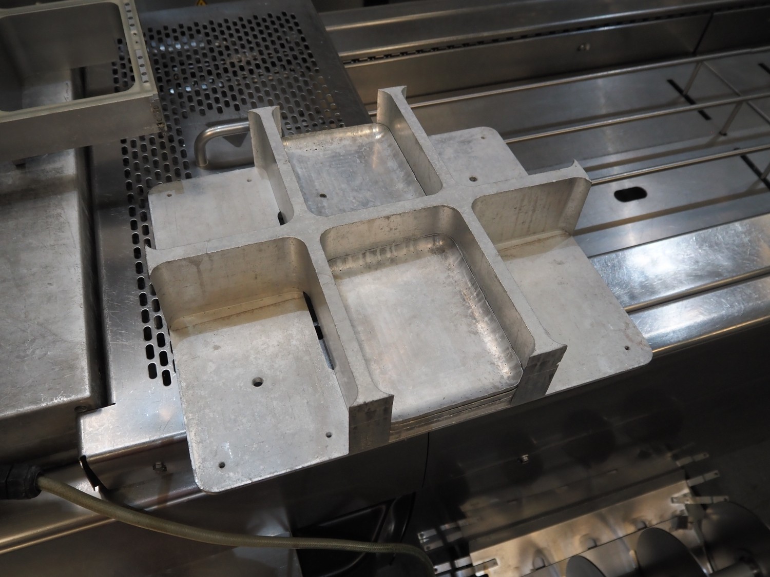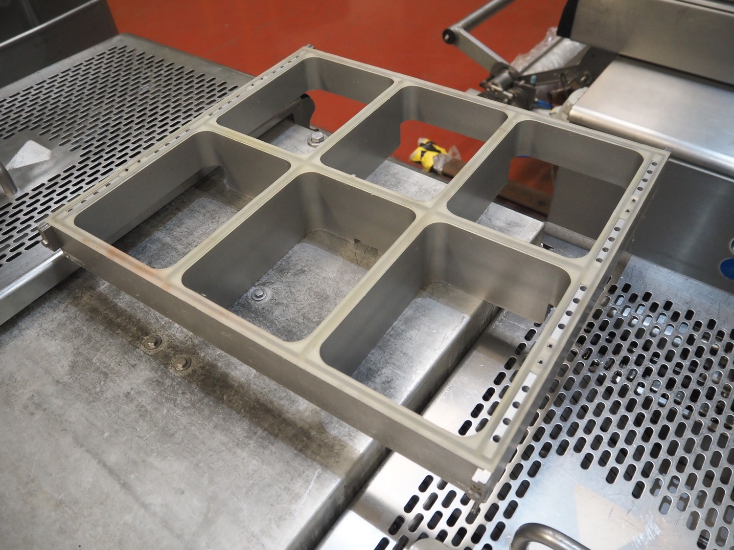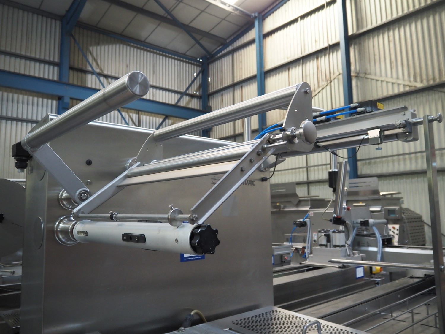 Multivac thermoformer, type: R245, serial number: 165214, year of construction: 2012, 415/240 V, 3 Ph, 50 Hz, 48/63 A, 16 kW, film width: 600 mm, dye: (8x) 210 mm x 115 mm, belt width: 530 mm, index: 510 mm, plastic mesh belt, belt width: 520 mm, total dimensions: 6950 mm x 1250 mm x 2260 mm.