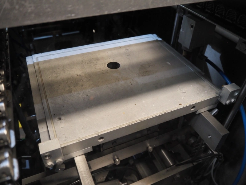 Multivac thermoformer, type: R245, serial number: 143650, year of construction: 2011, 415 V, 3 Ph, 50 Hz, 33/50 A, 13.5 kW, film width: 400 mm, belt width: 390 mm, index: 350 mm, plastic mesh belt, belt width: 380 mm, total dimensions: 7880 mm x 1220 mm x 2110 mm. Missing dye.