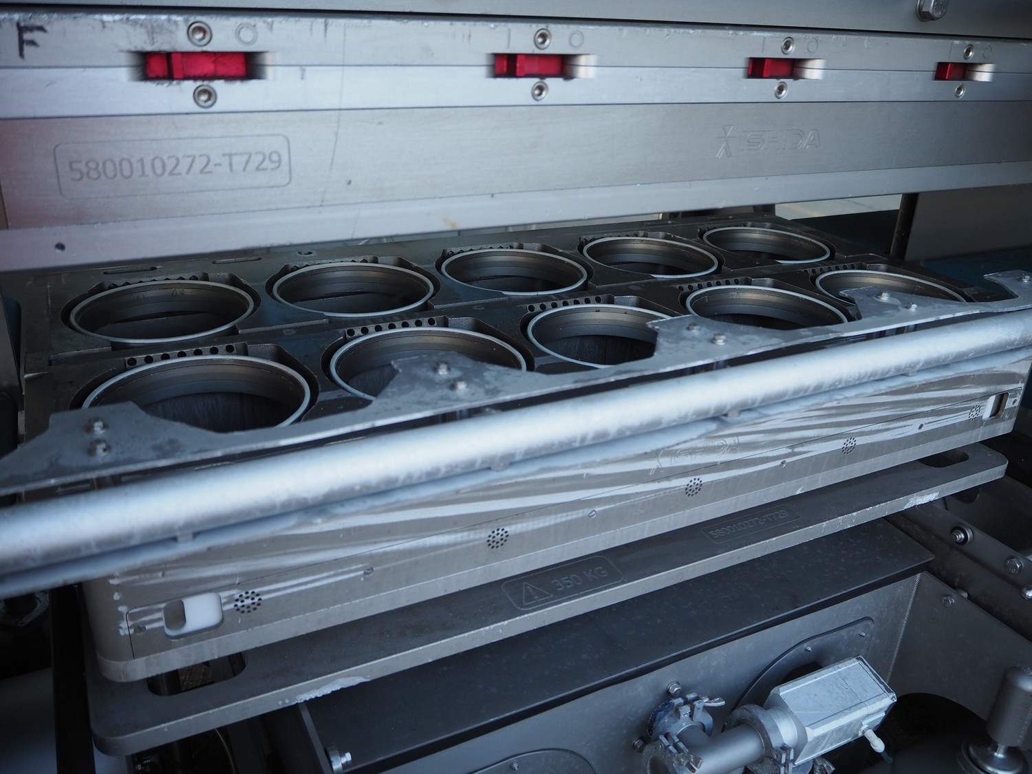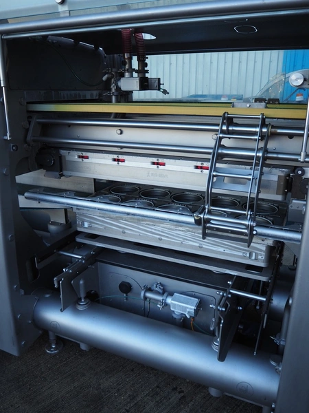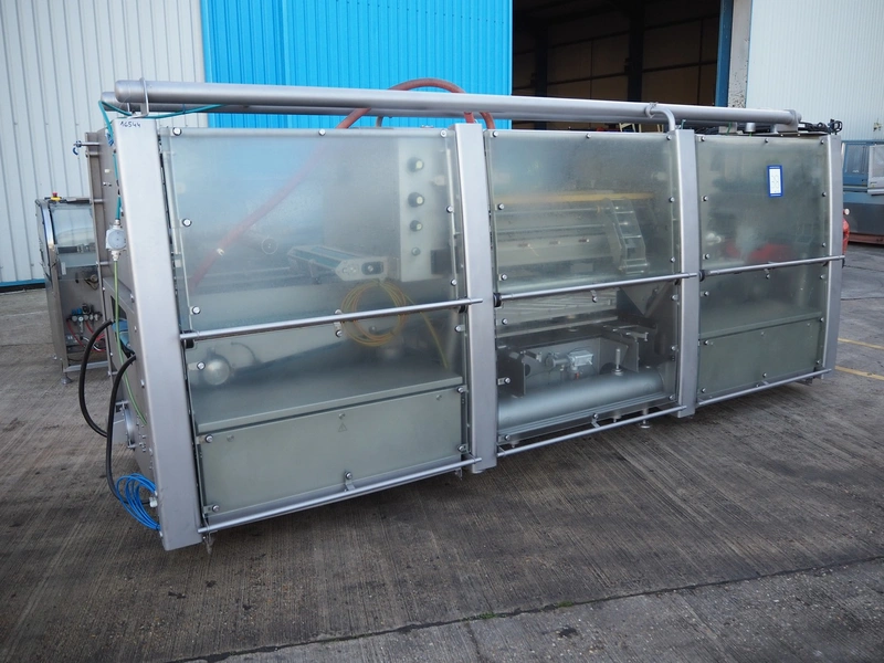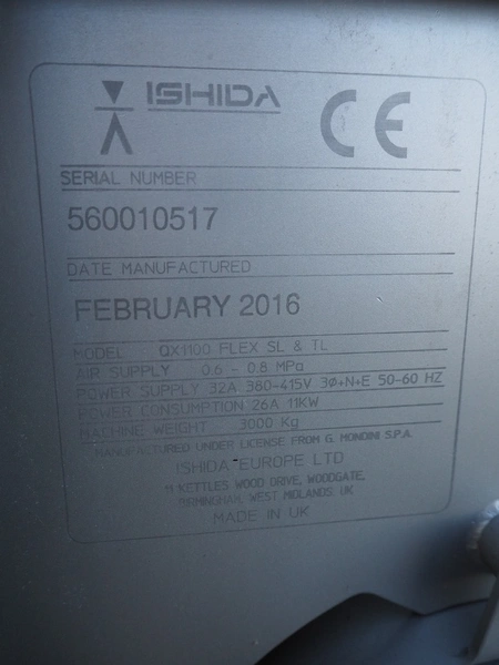 Ishida Europe LTD double lane traysealer, model: QX1100 FLEX SL & TL, serial number: 560010517, year of construction: FEBRUARY 2016, 380/415 V, 3 Ph, 50/60 Hz, 32 A, machine weight: 3000 kg, dyes: (8x) Ø 185 mm, plastic belt, belt width: 200 mm, clearance: 550 mm x 130 mm, total dimensions: 4850 mm x 1550 mm x 1960 mm.