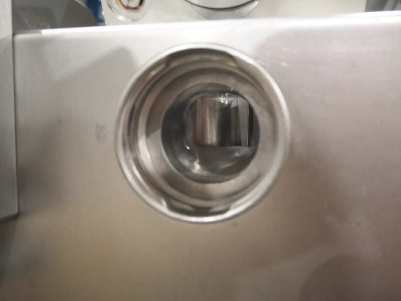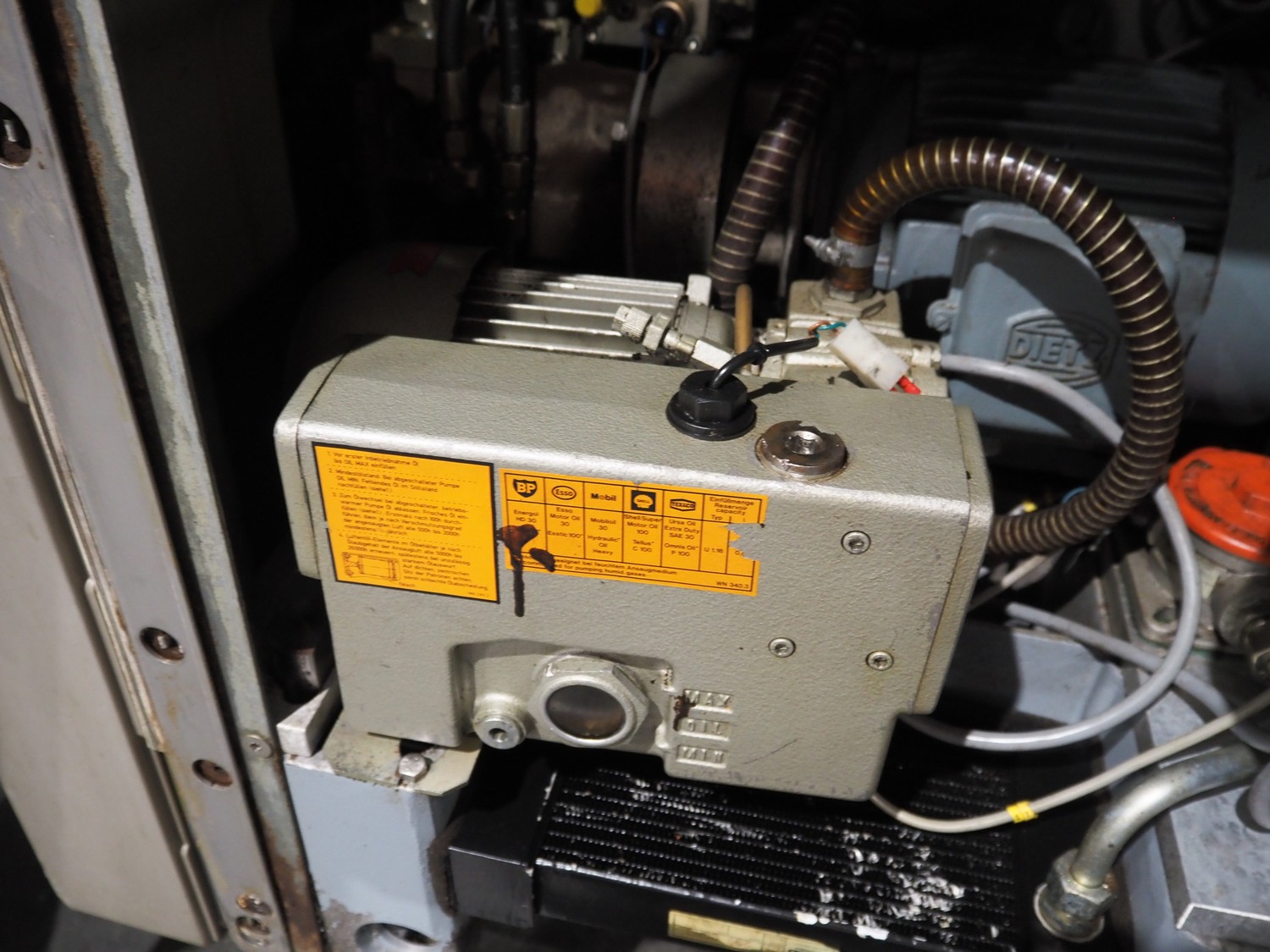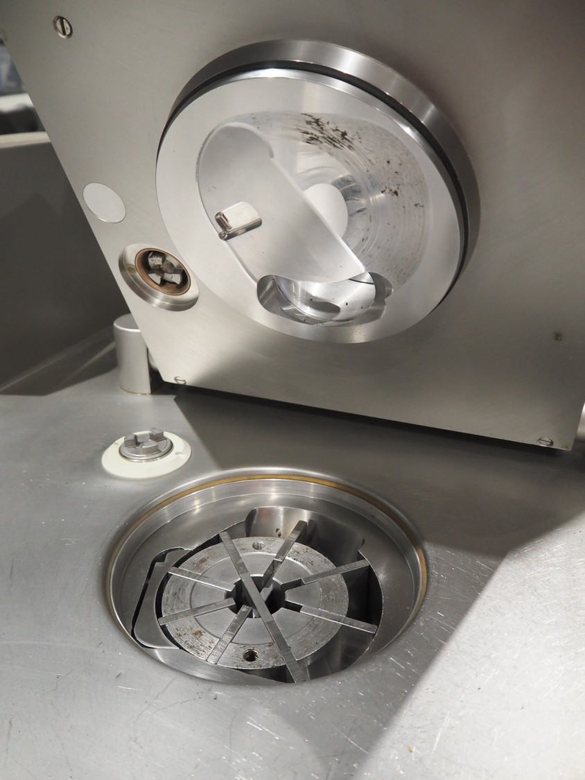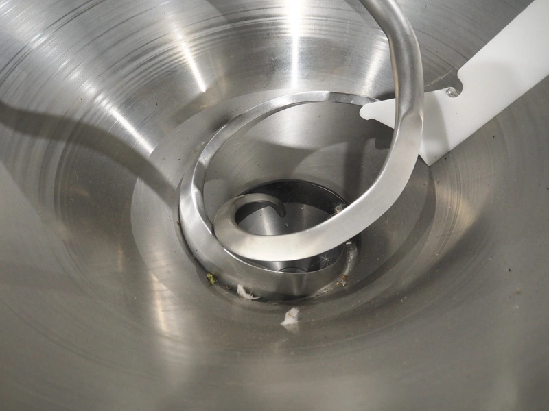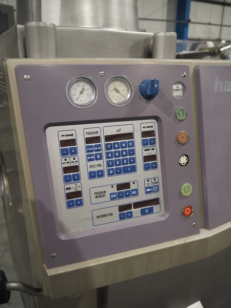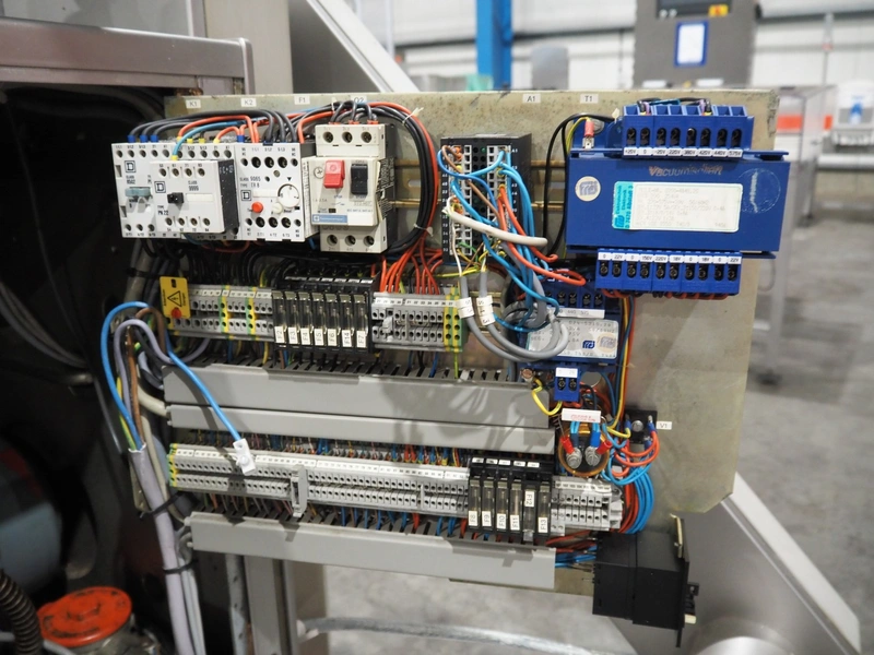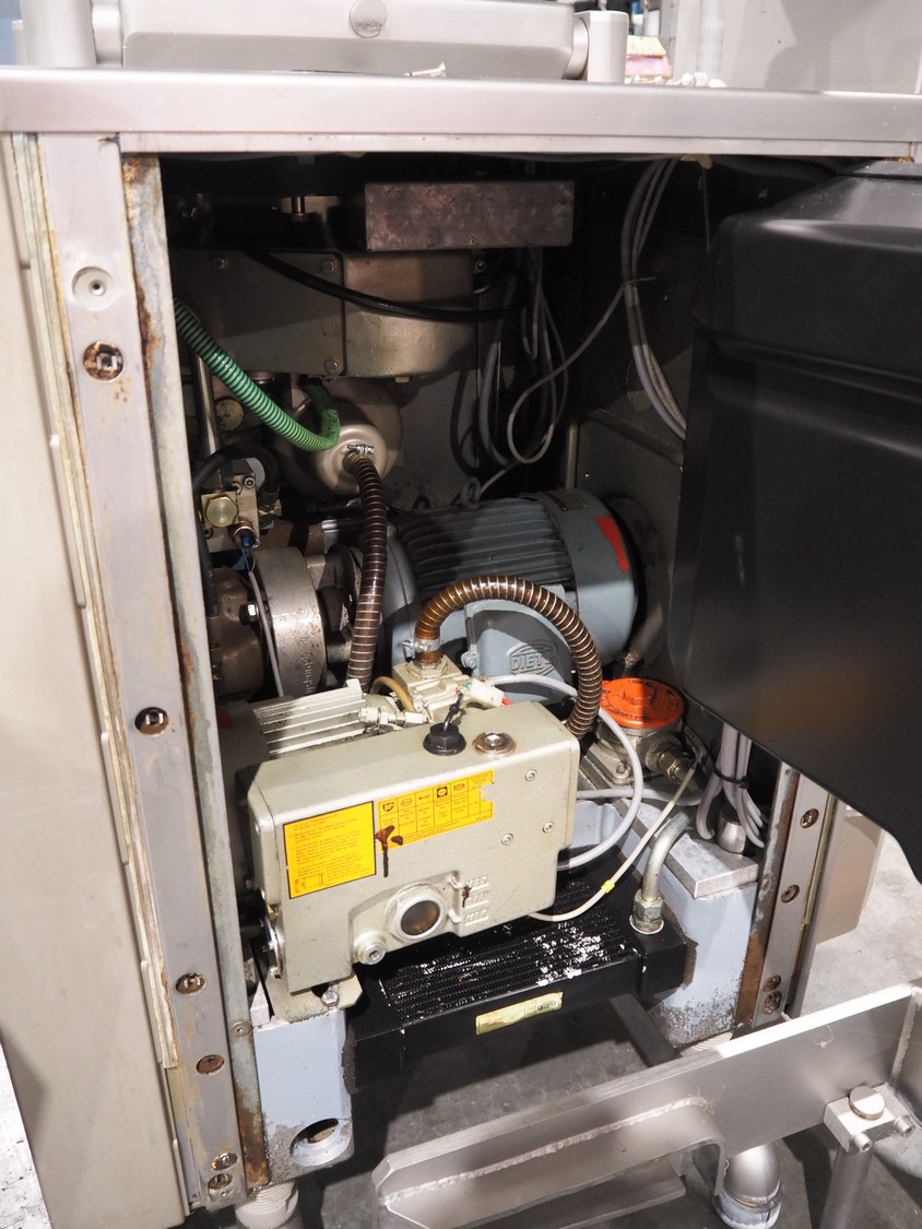 Handtmann vacuum filling machine with lifter for 200 liter meat bins, type: VF100, number: 850, 420 V, 50 Hz, 14.4 A, 5.5 kW, dimensions: 1880 mm x 1200 mm x 2280 mm.