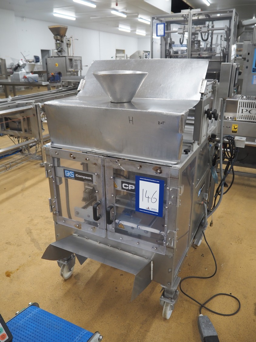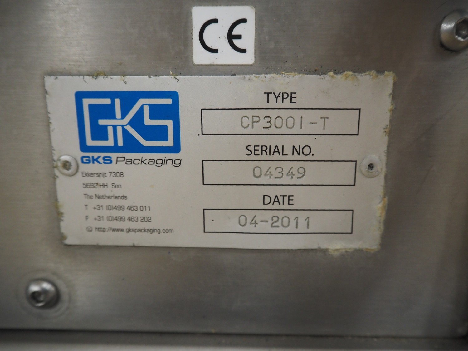 GKS Packaging mobile vertical bag form-, fill-, and seal machine, type: CP300I-T, serial number: 04349, year of construction: 04-2011, diameter pipe: 80 mm, vertical seal length: 250 mm, horizontal seal length: 320 mm, film width: 340 mm, total dimensions: 1400 mm x 1200 mm x 1410 mm.