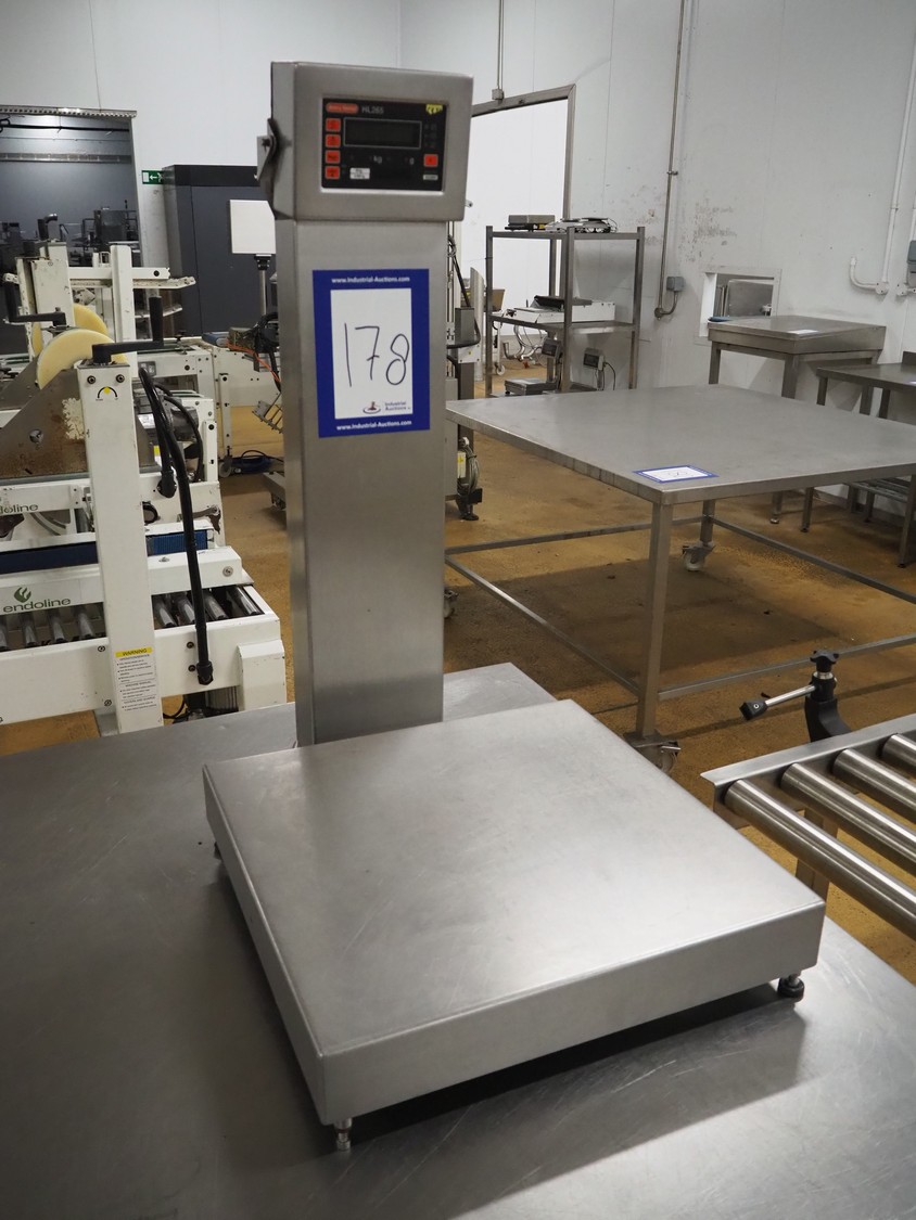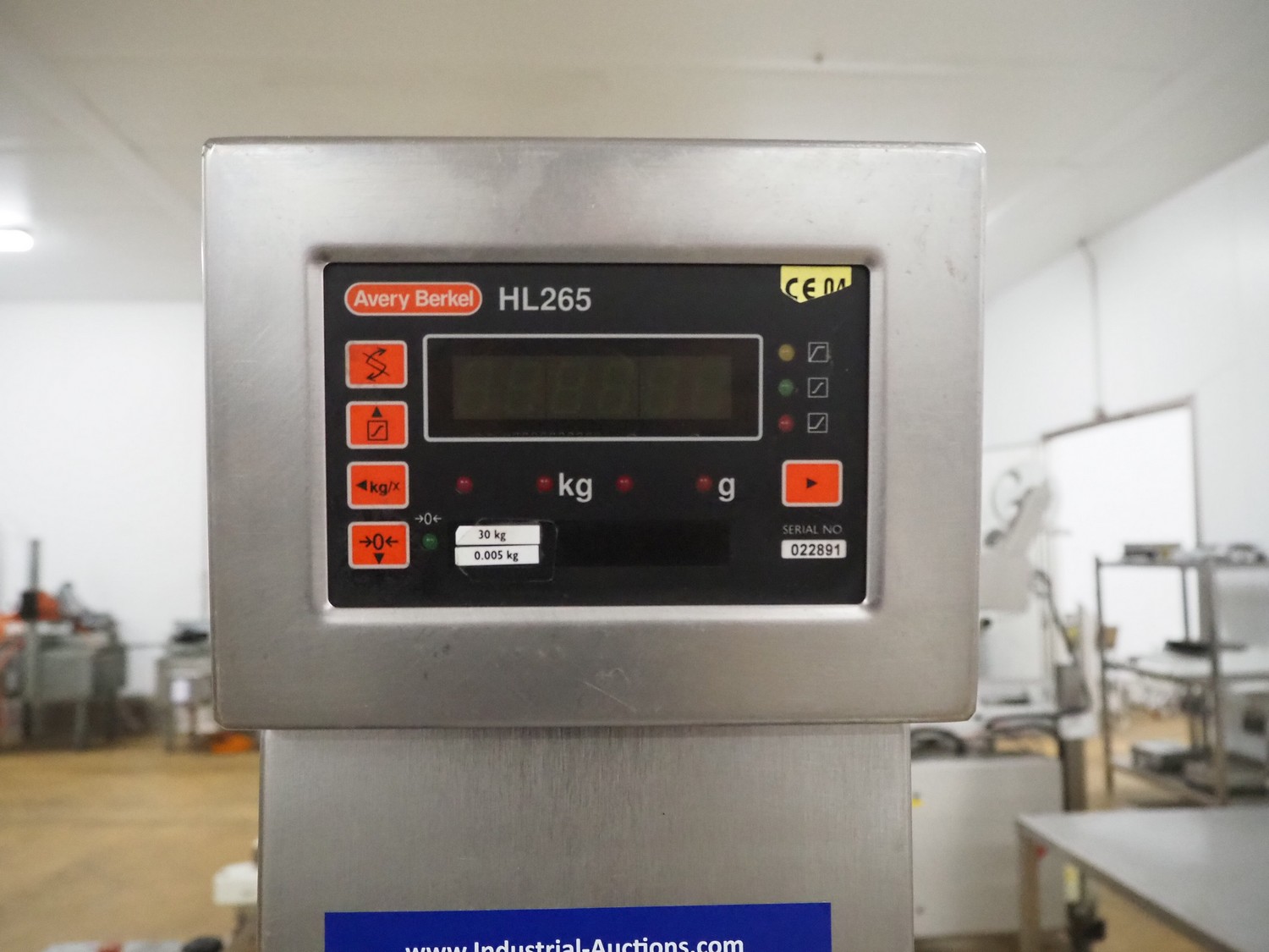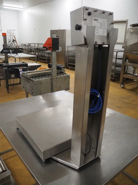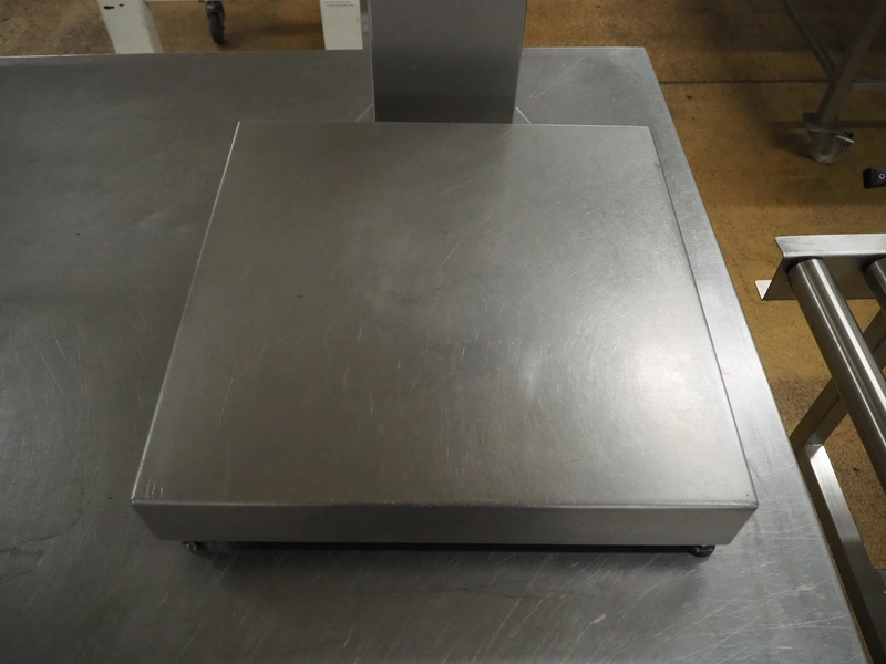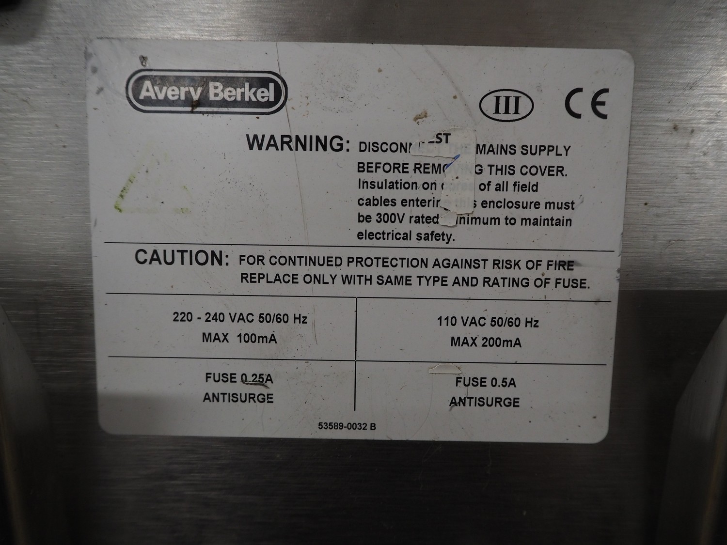 Avery Berkel weighing scale, 220/240 V, 50/60 Hz, scale dimensions: 500 mm x 500 mm, total dimensions: 680 mm x 500 mm x 900 mm.