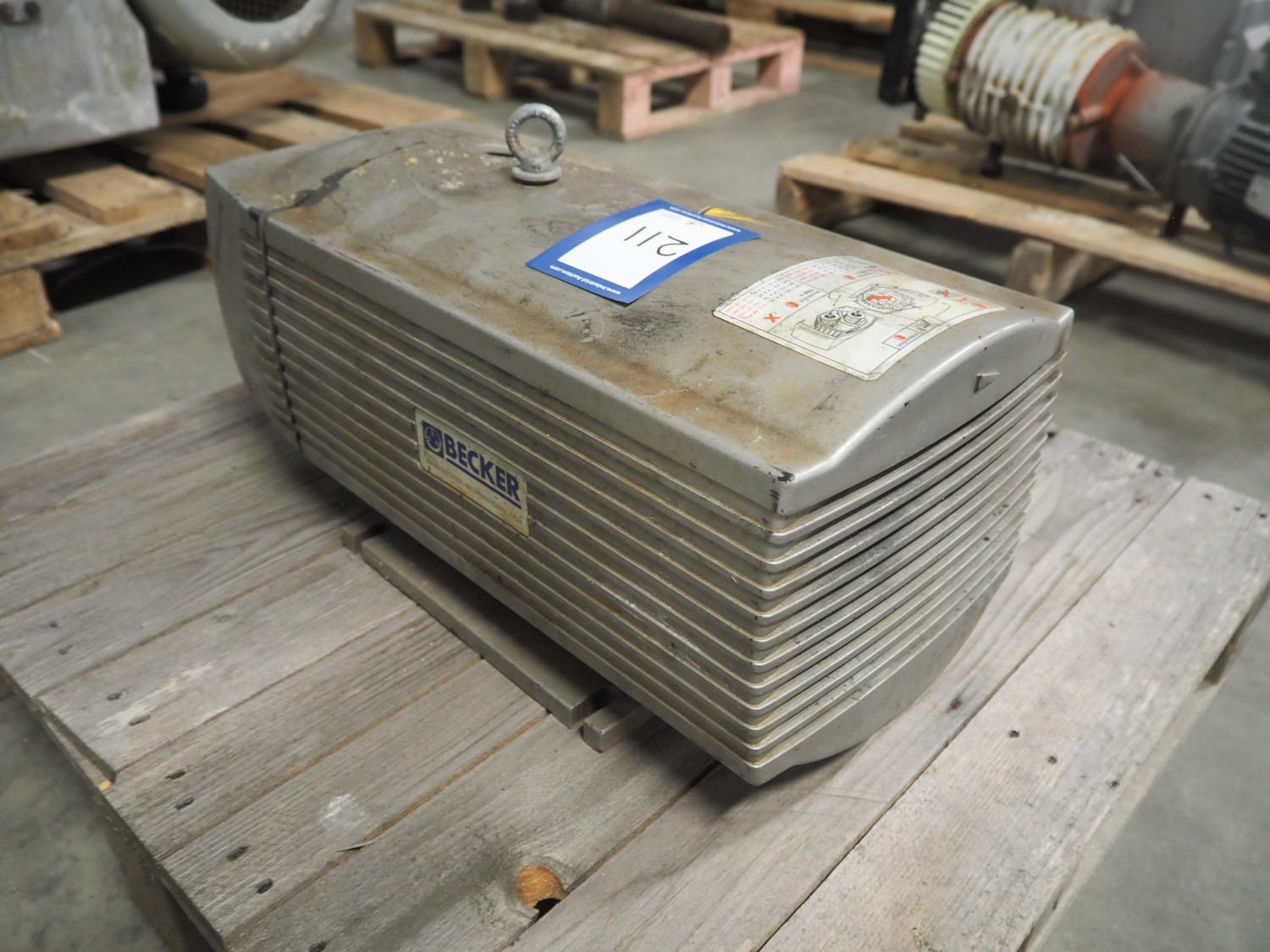 Becker vacuum pump, type: VT4.40, number: C3037391, year of construction: 2016, 50/60 Hz, capacity: 40/48 m³/h, dimensions: 560 mm x 260 mm x 300 mm.