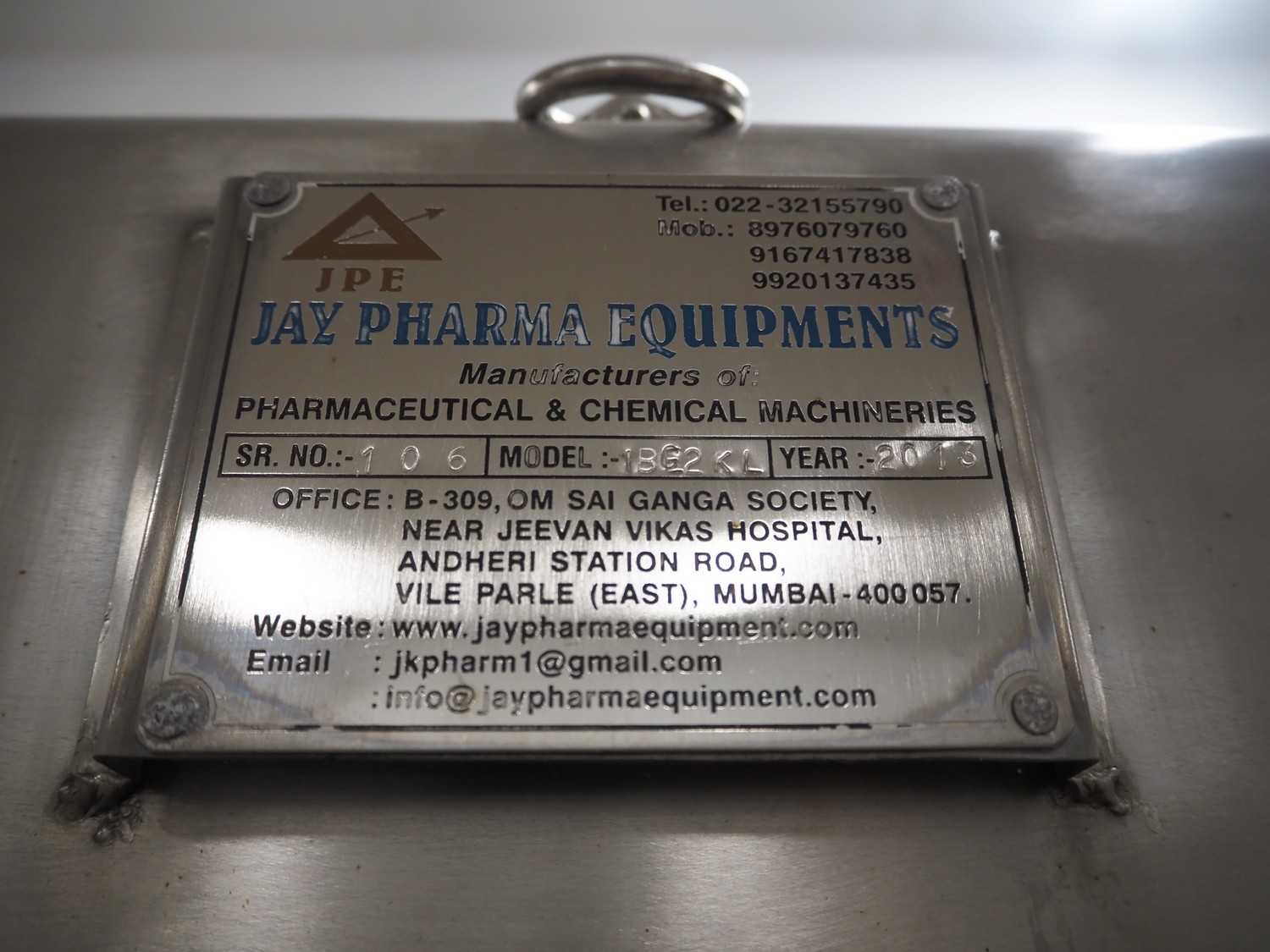 Jay Pharma Equipments mobile s/s tank, model: IBC2KL, serial number: 106, year of construction: 2013, dimensions: 1520 mm x 1380 mm x 2100 mm.