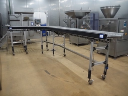 Mobile 90° curve conveyor, s/s rollers, roller width: 450 mm, total dimensions: 4300 mm x 2250 mm x 1370 mm.0 bidsLot is closed -