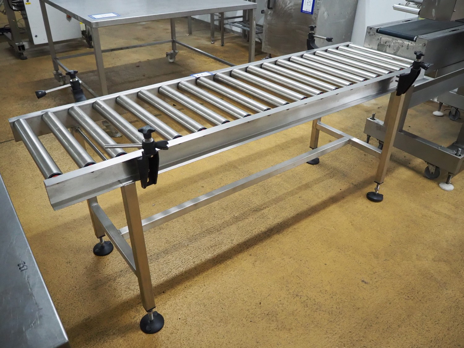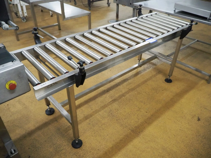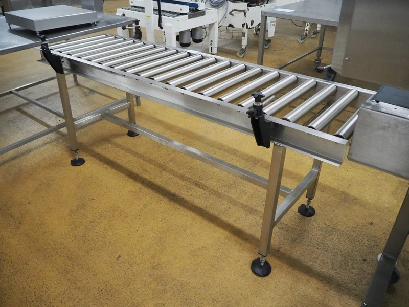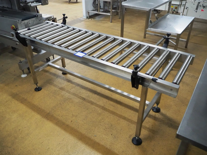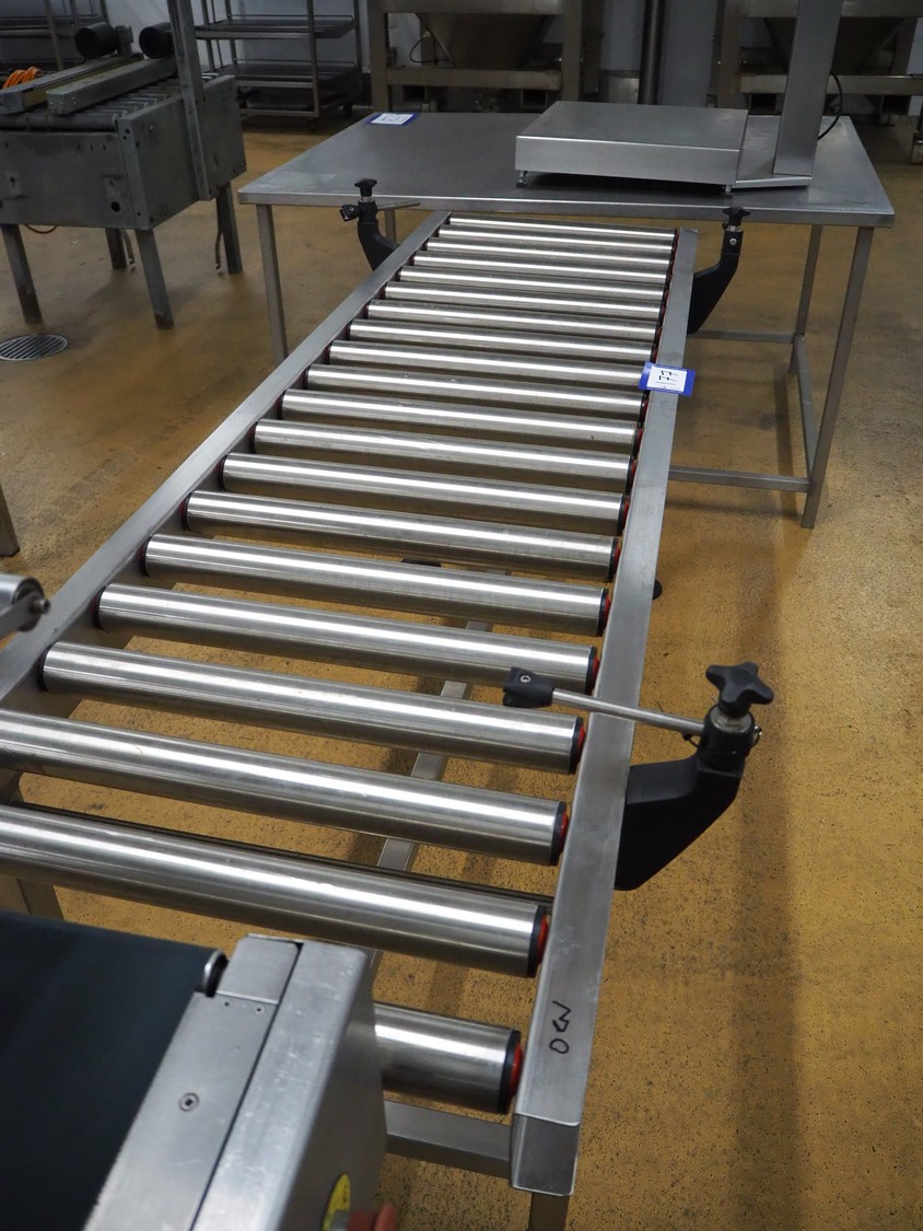 Roller conveyor, s/s rollers, roller width: 500 mm, total dimensions: 2000 mm x 750 mm x 900 mm.