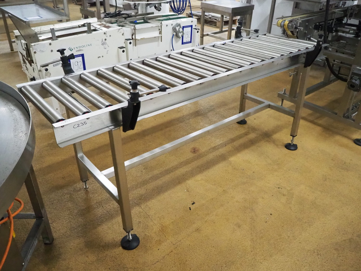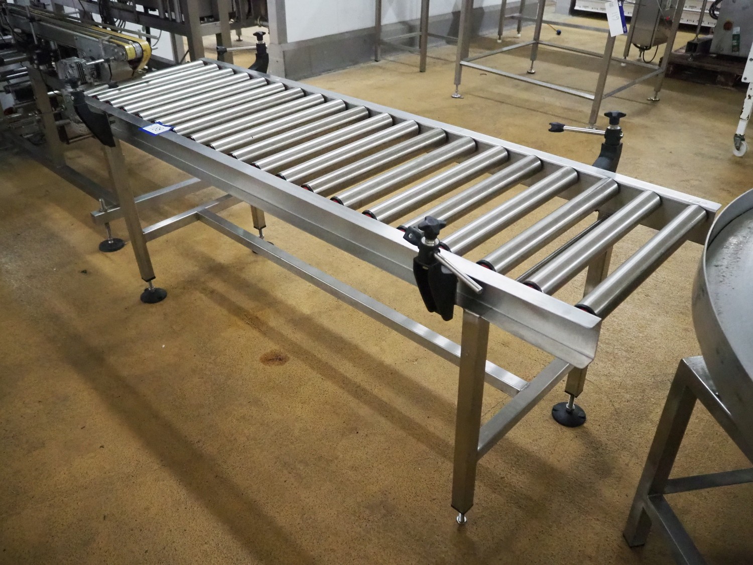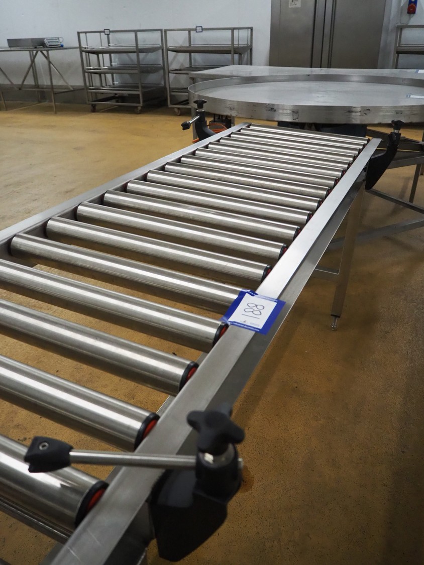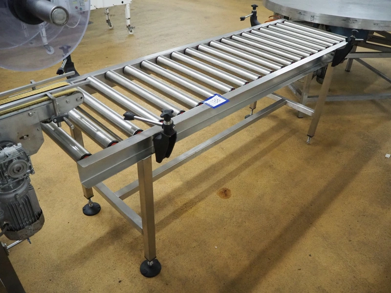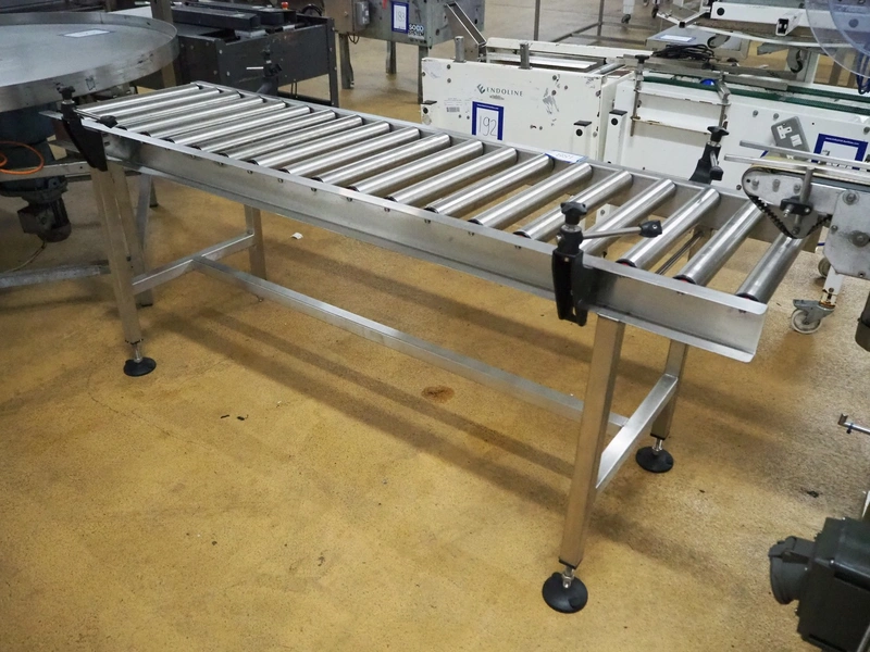 Roller conveyor, s/s rollers, roller width: 500 mm, total dimensions: 2000 mm x 750 mm x 900 mm.