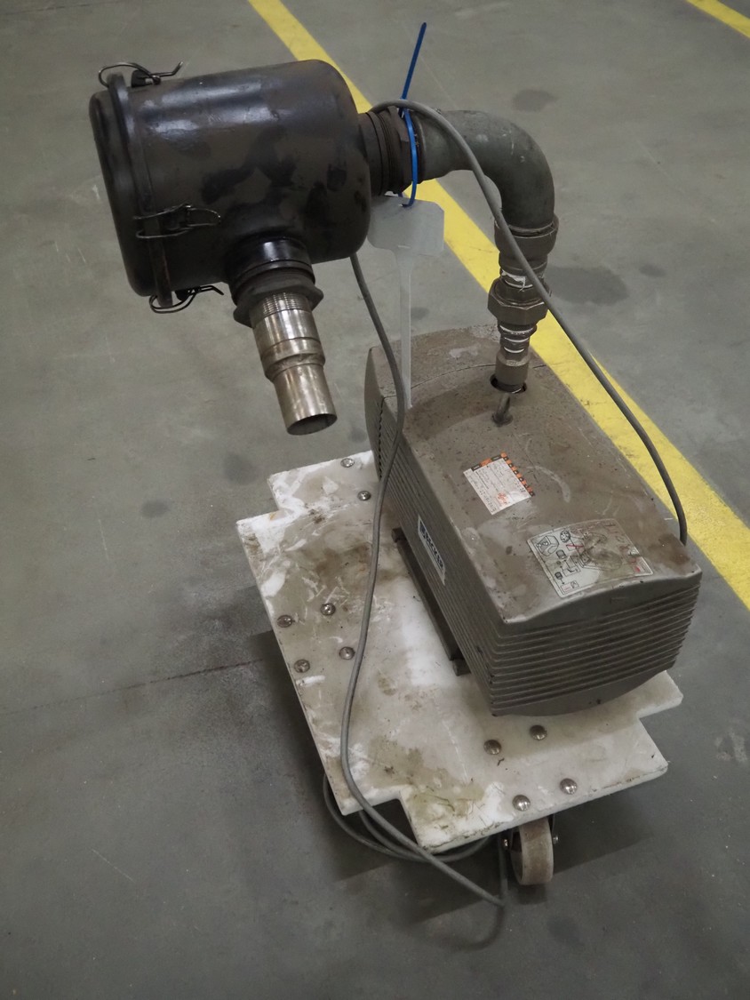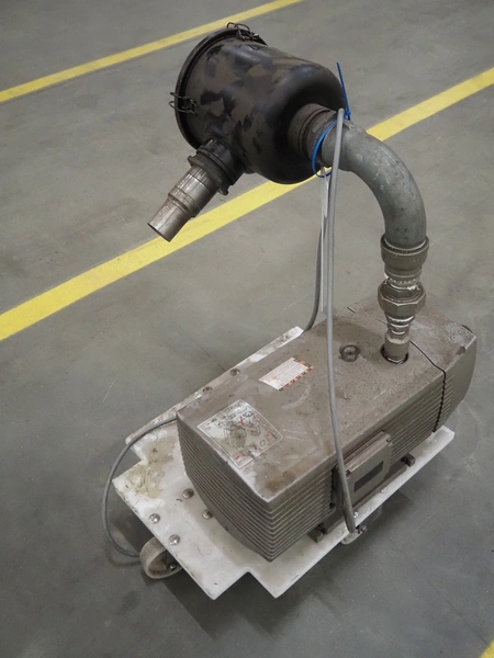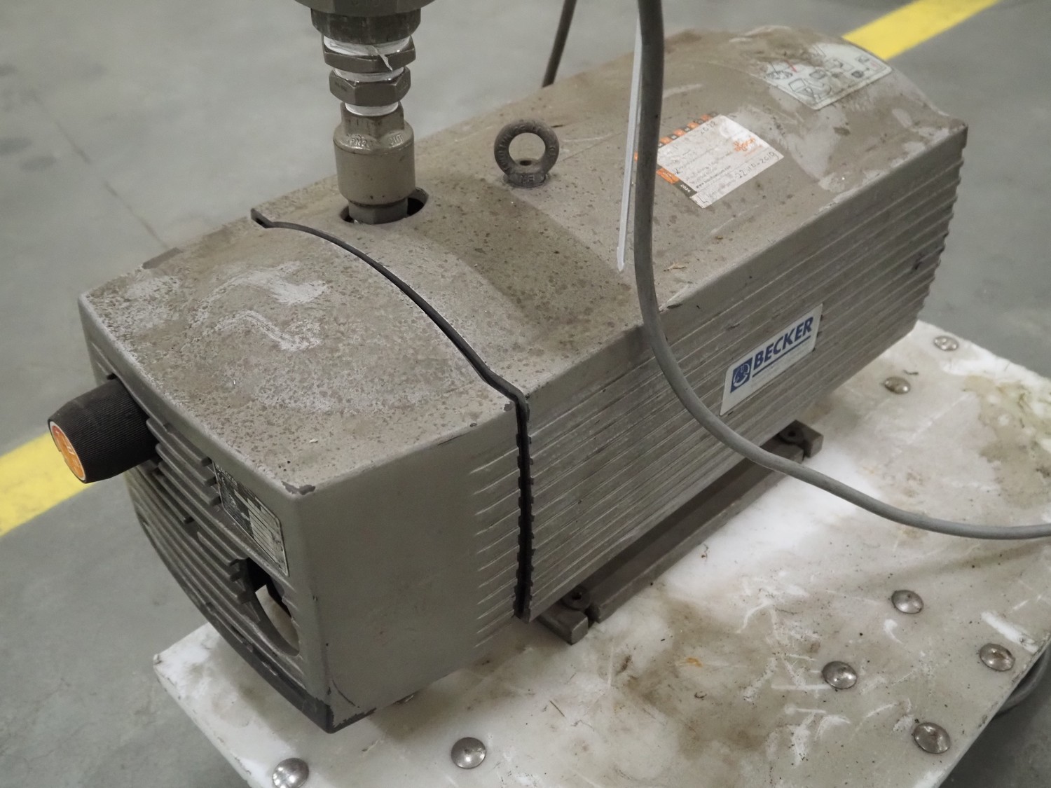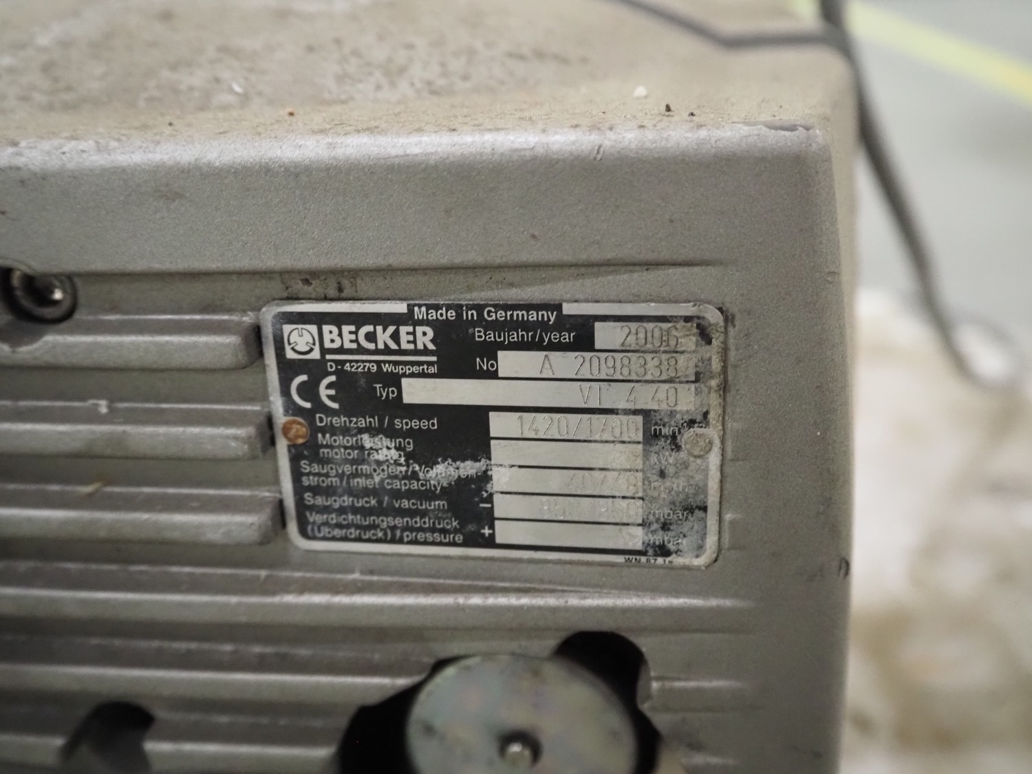 Becker vacuum pump on plastic rollie, type: VT 4.40, number: A 2098338, year of construction: 2006, capacity: 40 m³ per hour, dimensions: 650 mm x 450 mm x 930 mm.