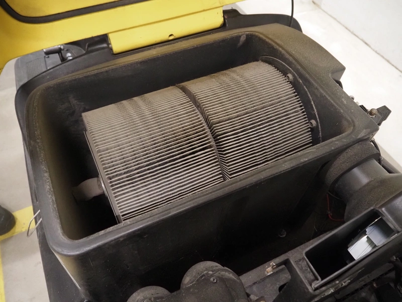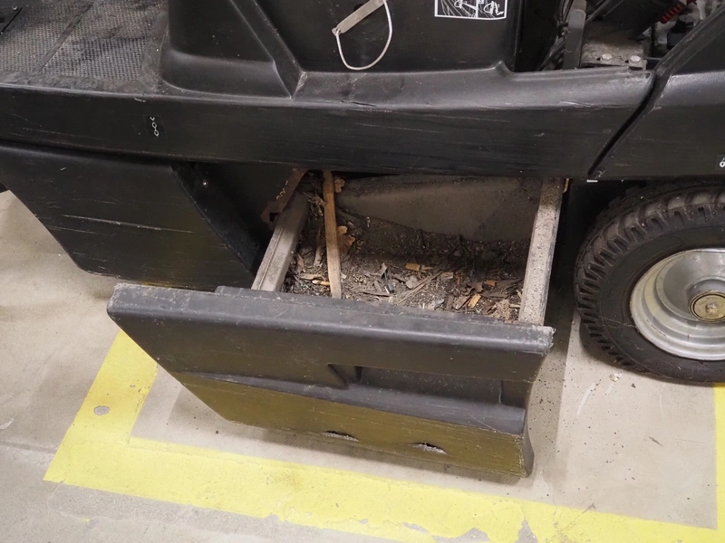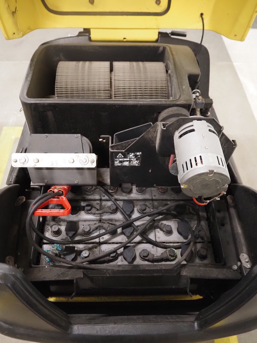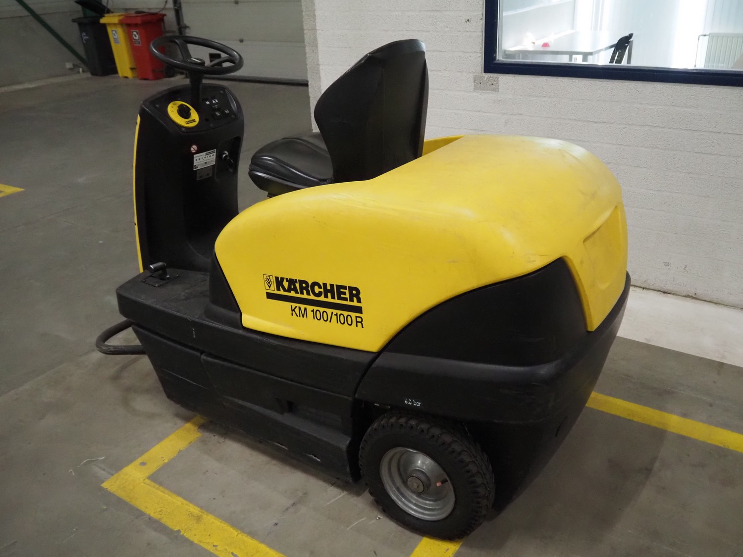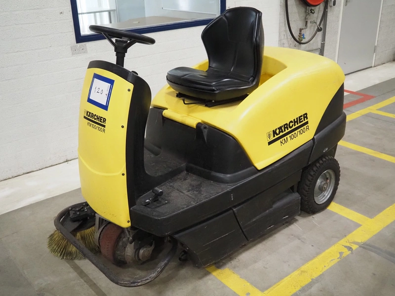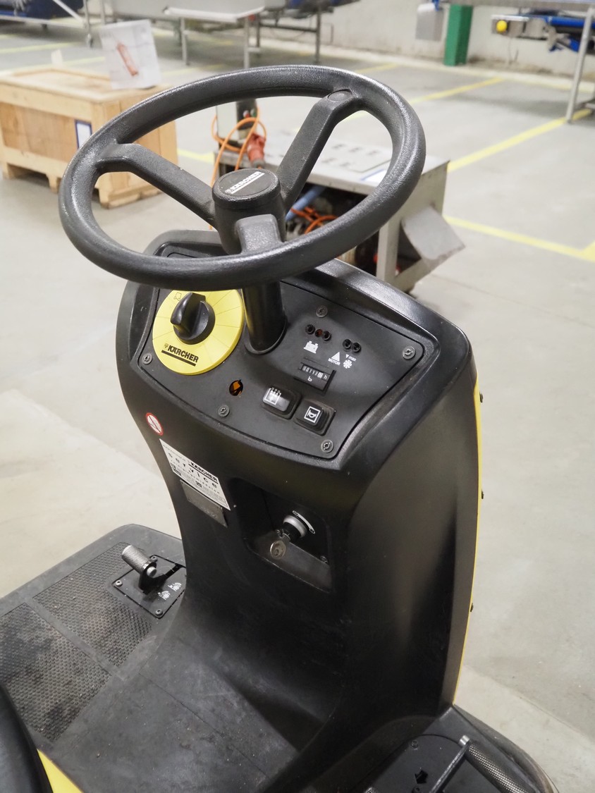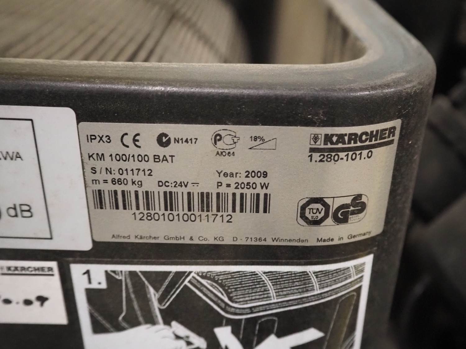 Kärcher vacuum sweeper, model: KM 100/100 BAT, serial number: 011712, year of construction: 2009, DC: 24 V, P= 2050 W, weight: 660 kg, dimensions: 1900 mm x 900 mm x 1280 mm. Battery need to be replaced.