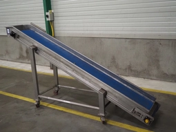 Mobile V-elevating belt, s/s frame, plastic belt, belt width: 475 mm, elevating height: 1600 mm, total dimensions: 2600 mm x 900 mm…20 bidsLot is closed -