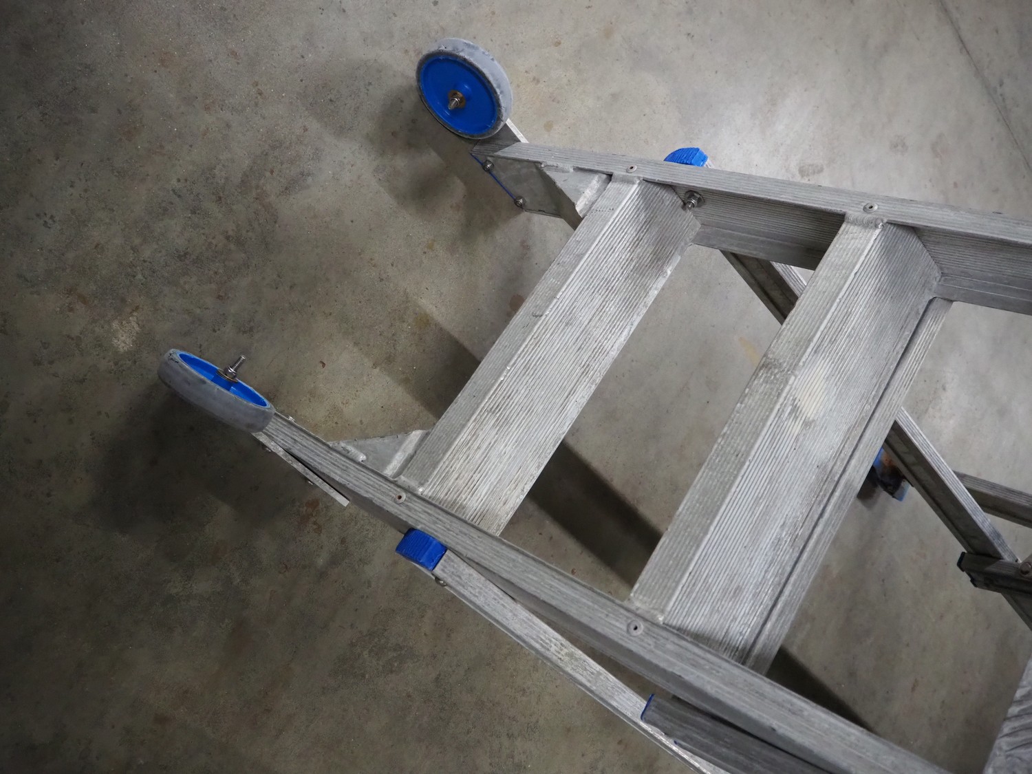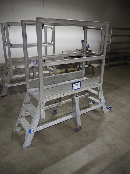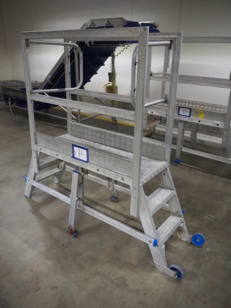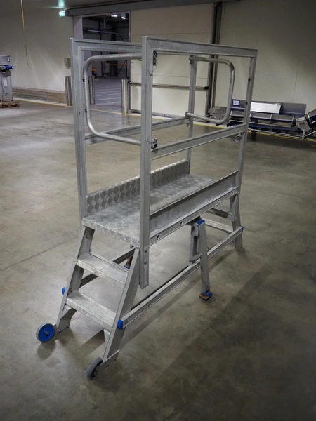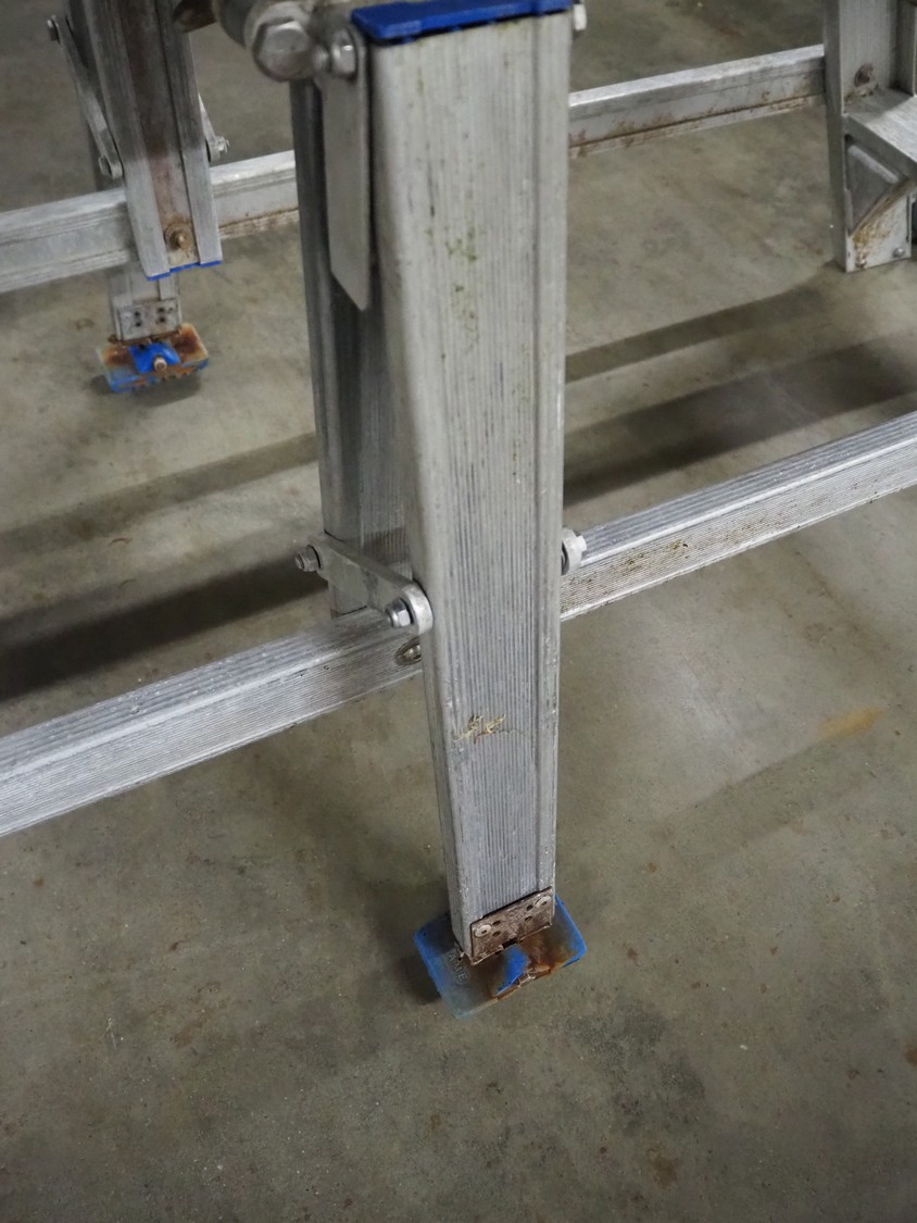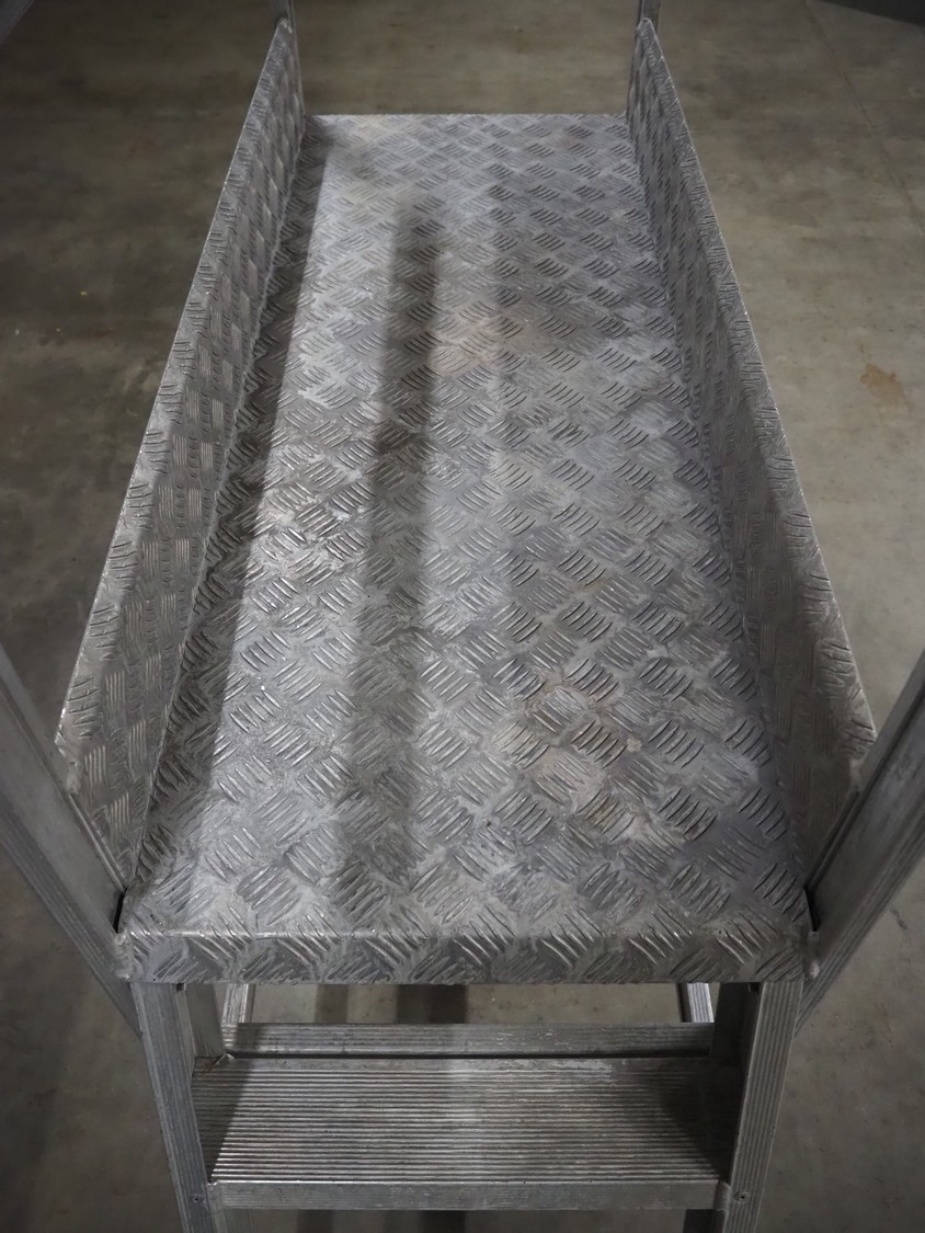 Aluminium working platform, 1-side wheels, working height: 750 mm, dimensions: 2000 mm x 600 mm x 1800 mm.