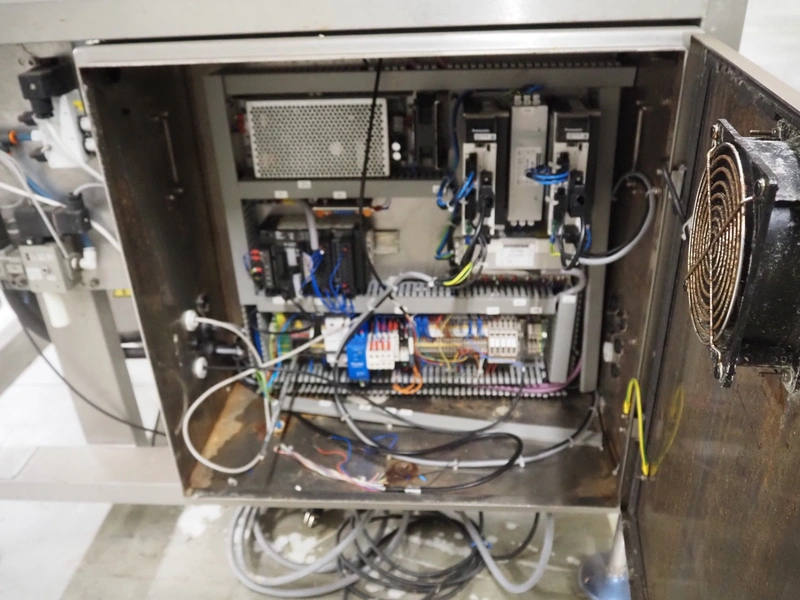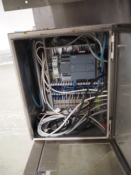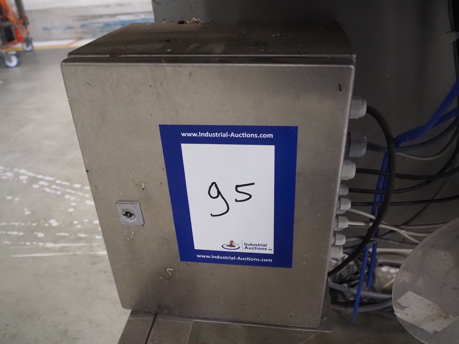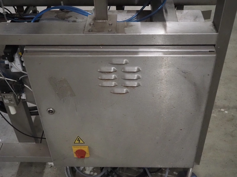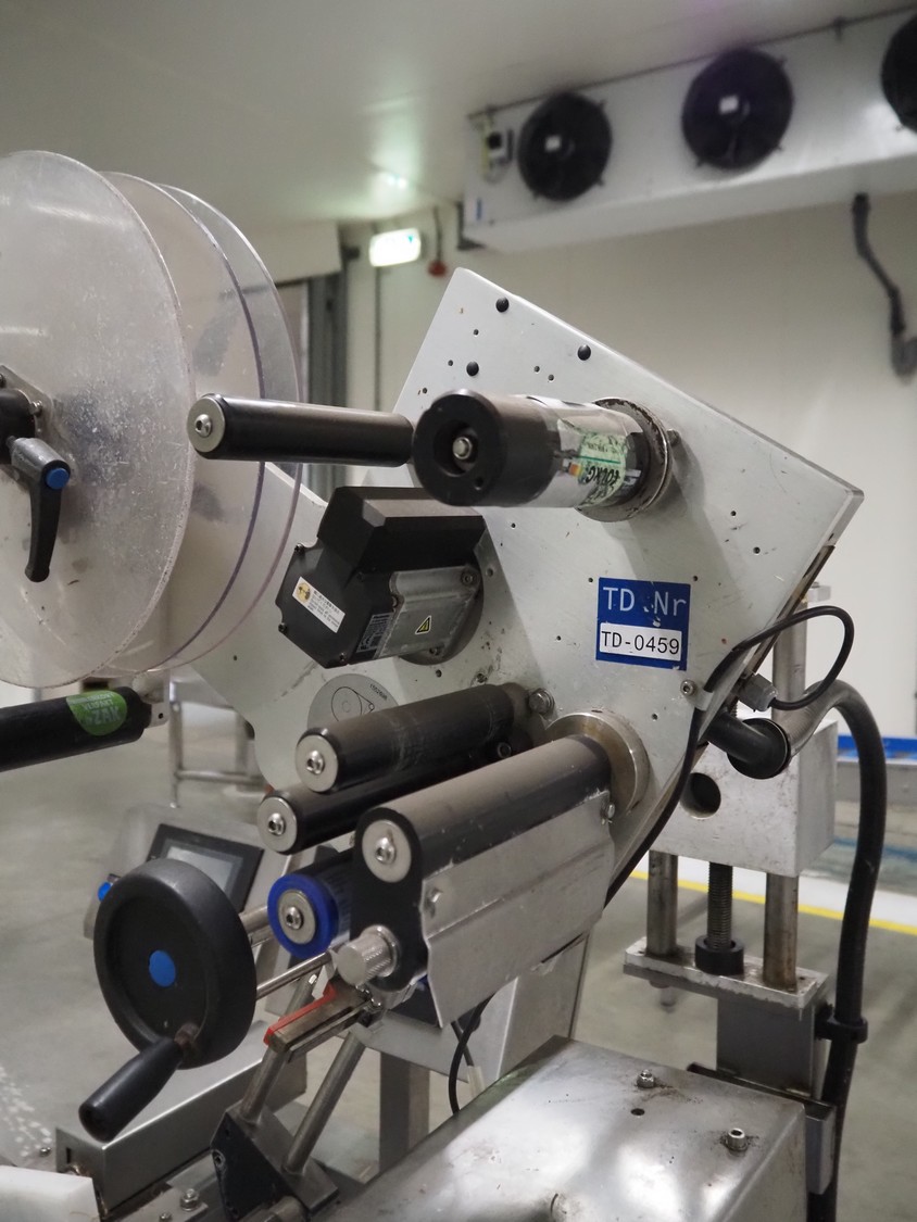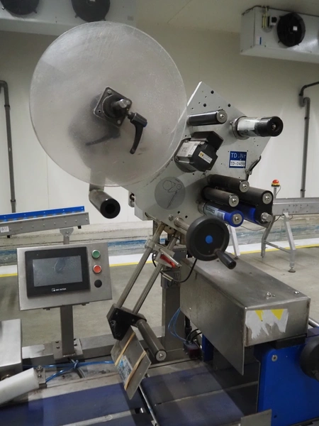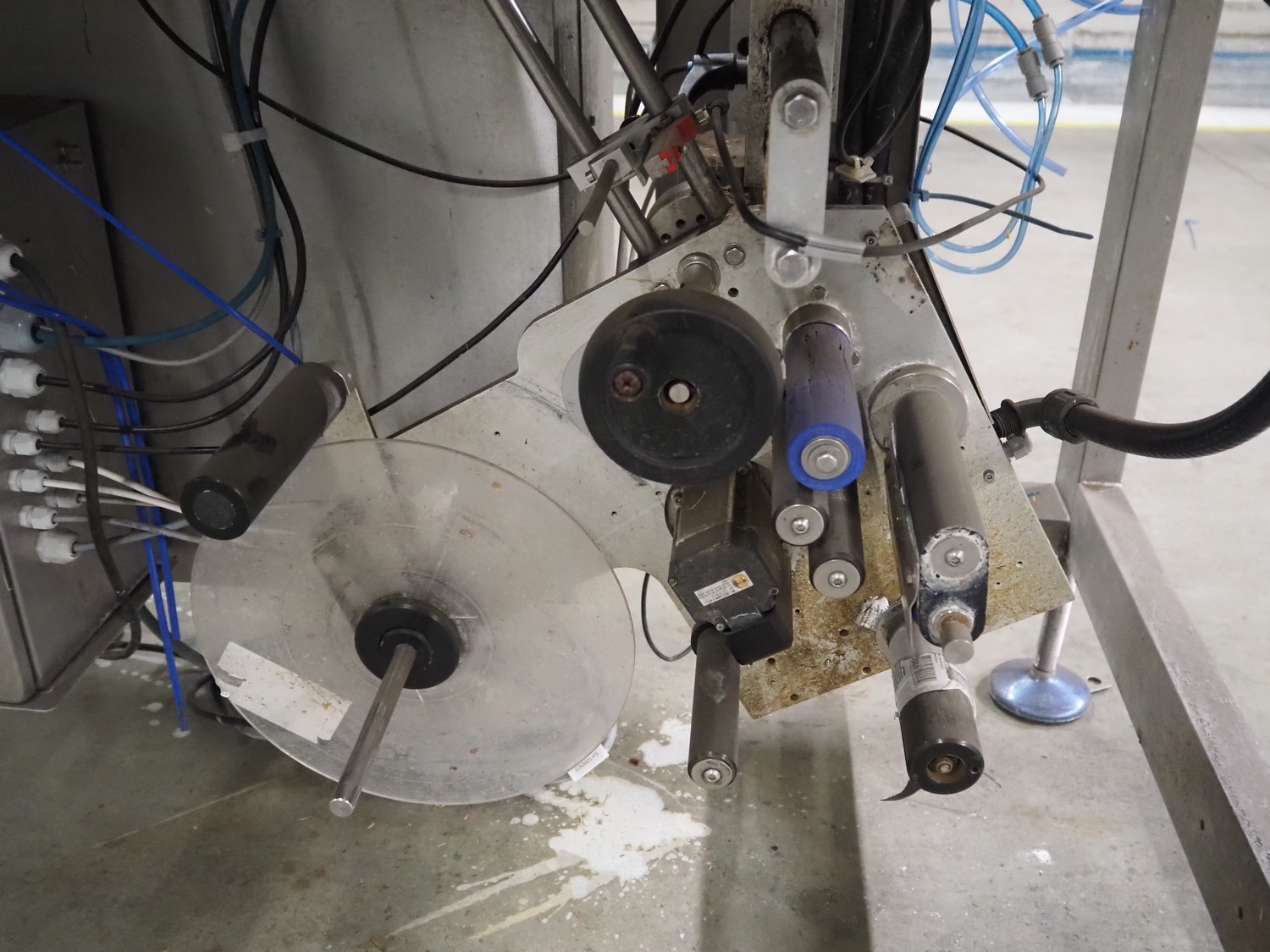 Marel top and bottom labeller with rejector, model: Concept 500, serial number: LA0699, year of construction: 2016, 230 V, 50/60 Hz, 4 A, plastic belts, belt width: (4x) 110 mm, total dimensions: 1300 mm x 800 mm x 1810 mm.