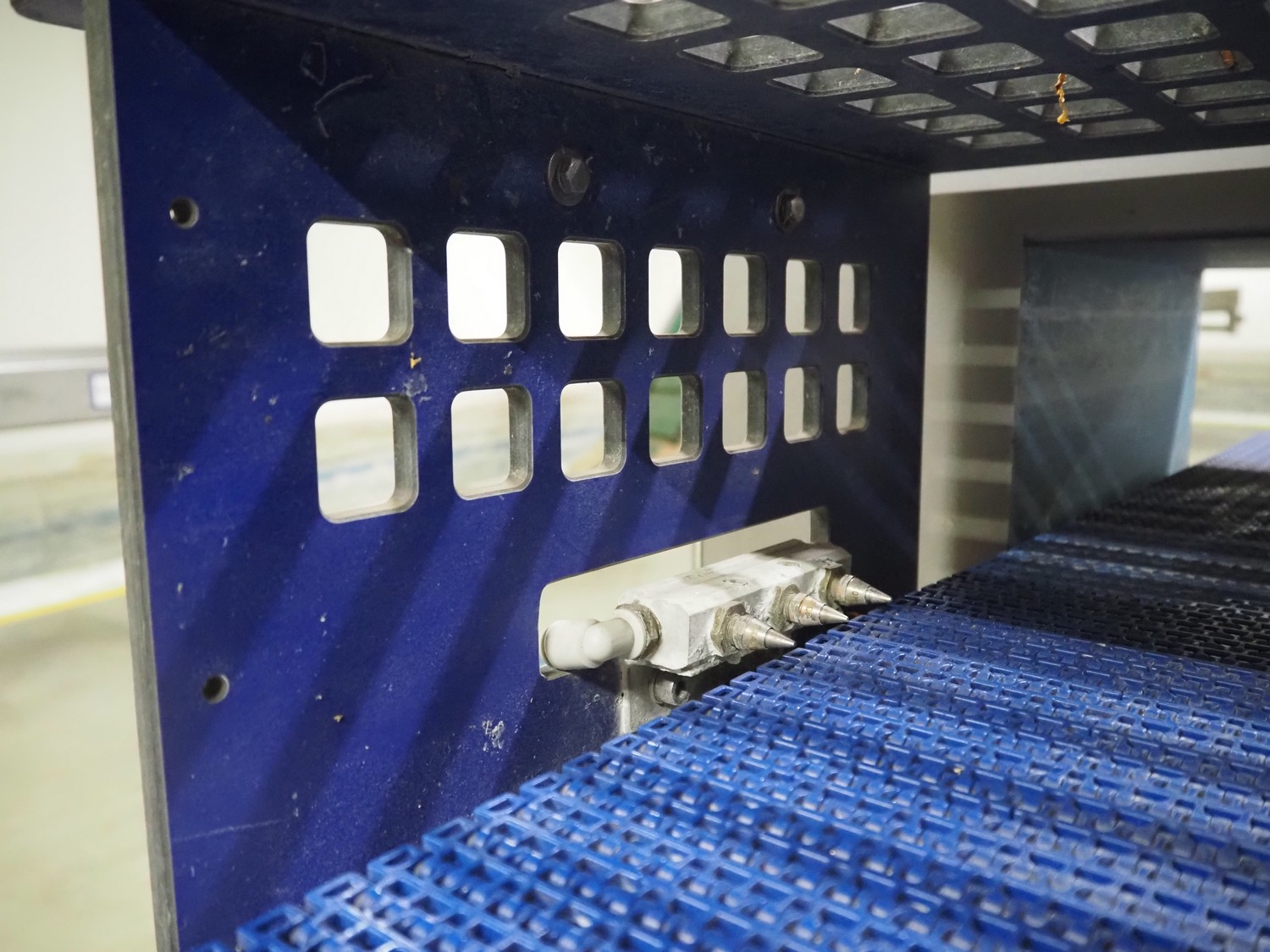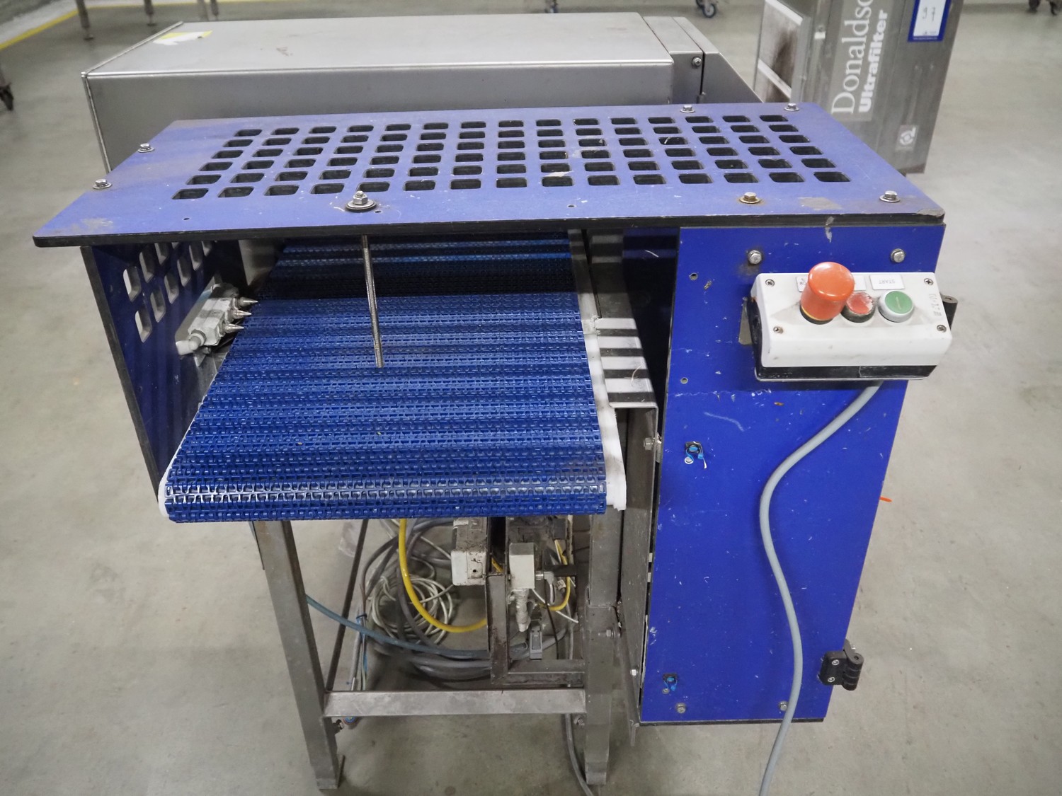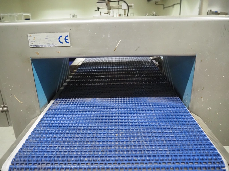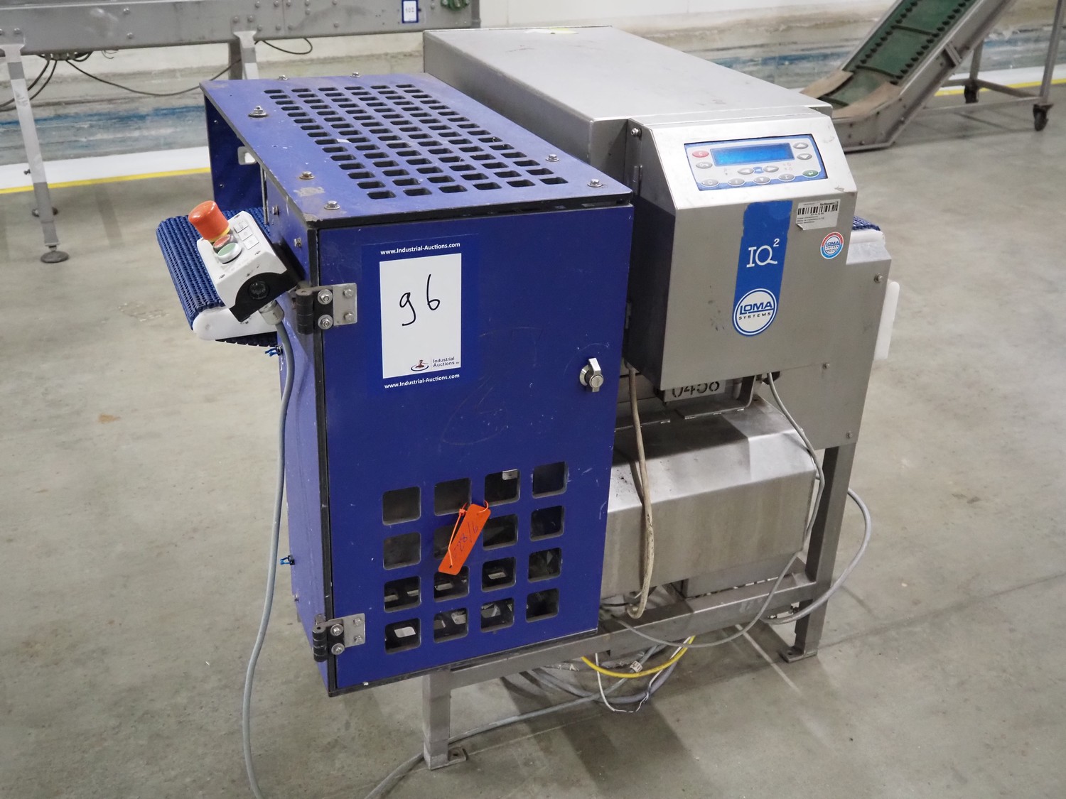 Loma Systems metal detector with rejector, type: IQ², serial number: MDO4EU-35399, year of construction: 2004, plastic mesh belt, belt width: 405 mm, clearance: 450 mm x 150 mm, total dimensions: 1200 mm x 1000 mm x 1150 mm.
