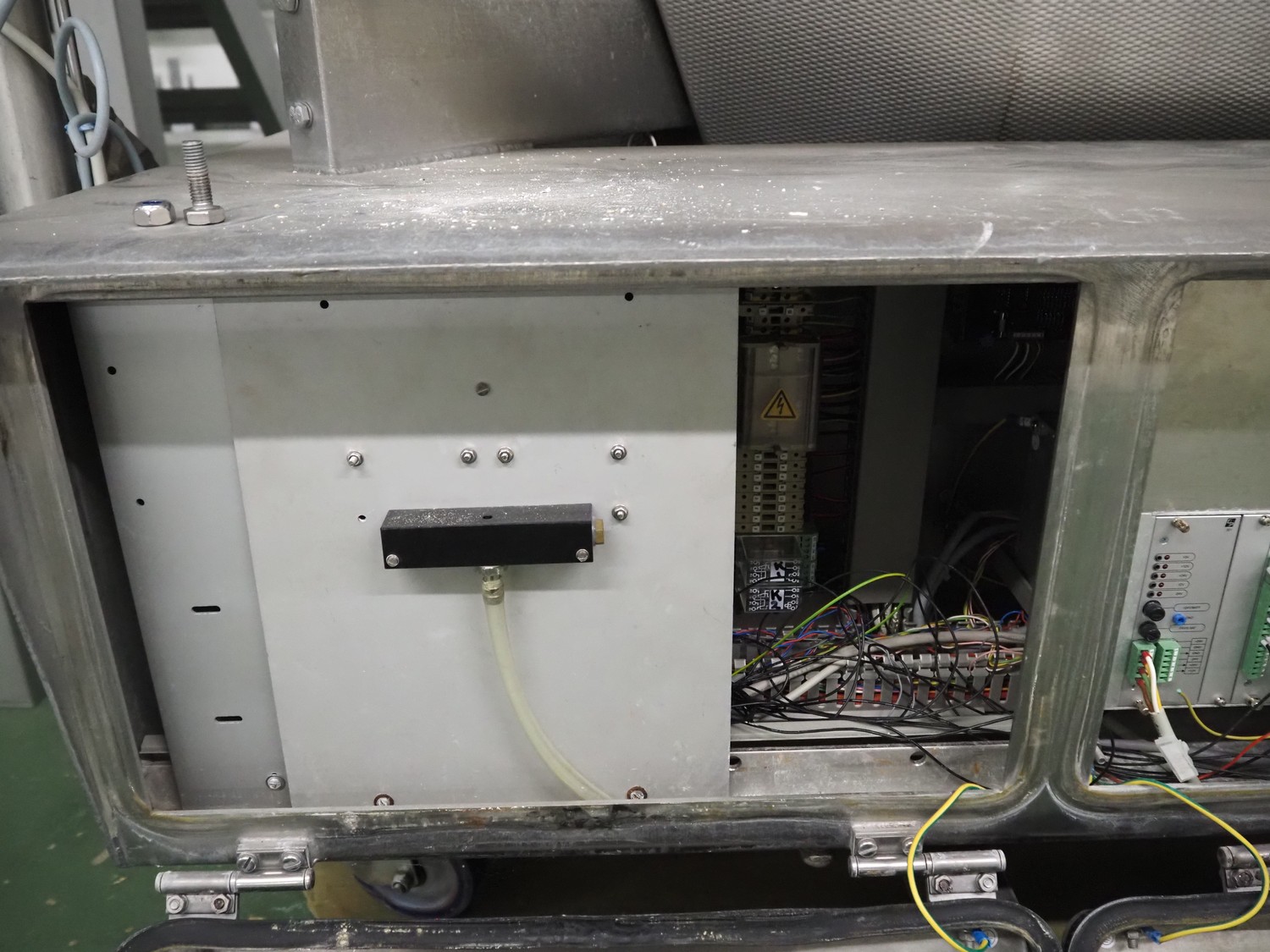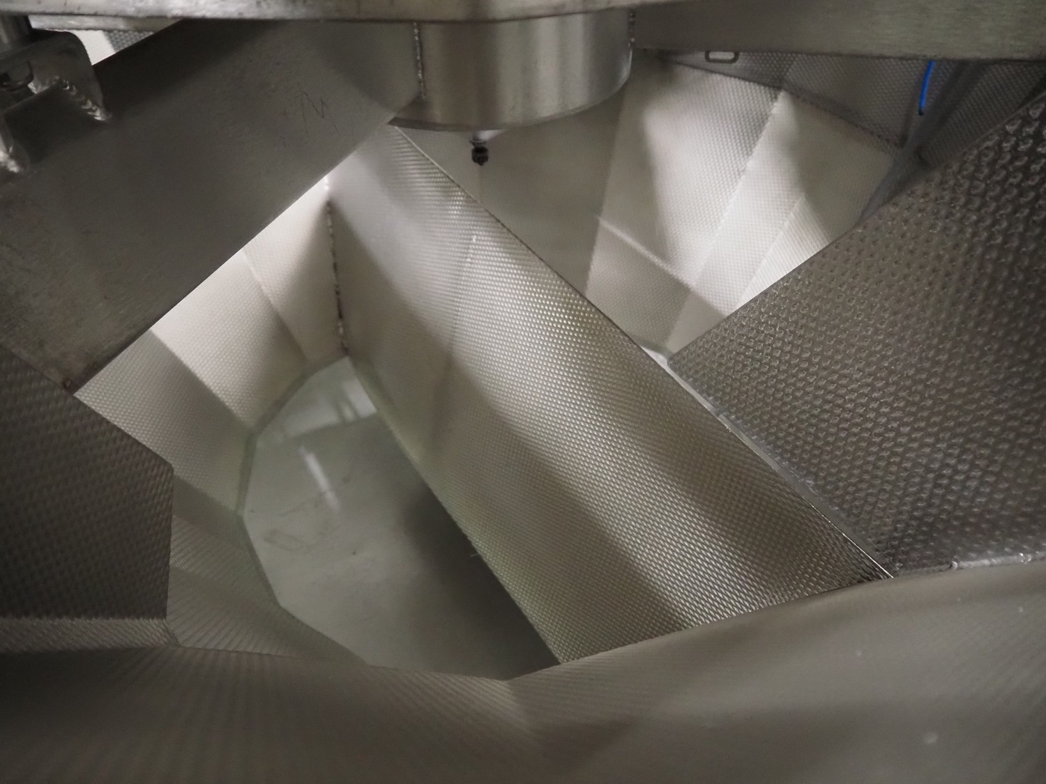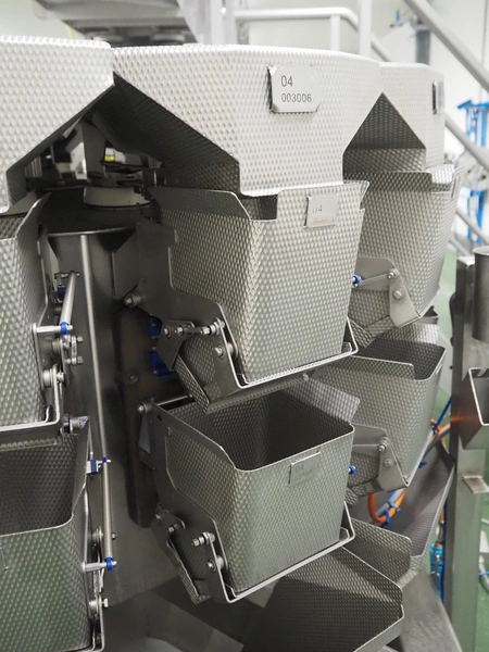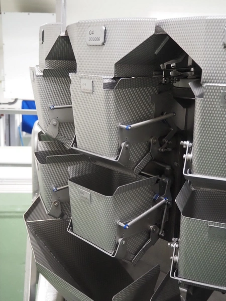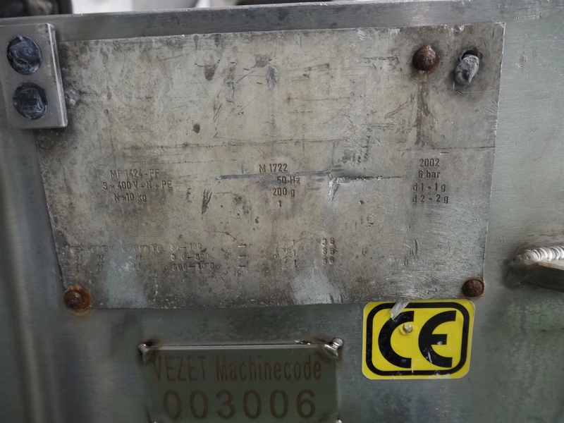 Multipond mobile 14-heads multihead weigher, type: MP 1424-FF, serial number: M1722, year of construction: 2002, 400 V, 3 Ph, 50 Hz, maximum weight: 10 kg, minimum weight: 200 g, d=1/2 g, dimensions: 1950 mm x 1650 mm x 1650 mm. Control panel already disconnected.