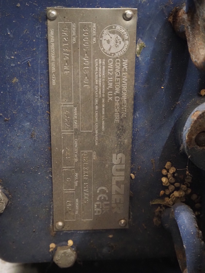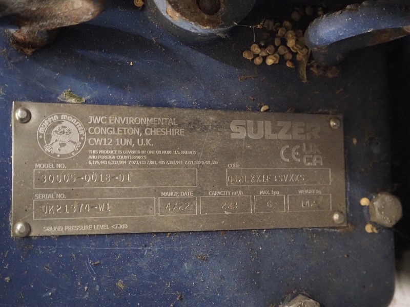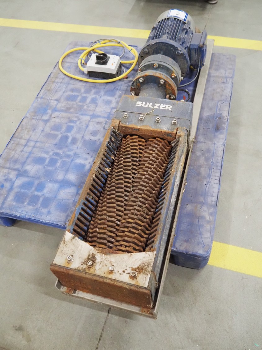 Sulzer shredder, model: 30005-0018-DI, serial number: UK21374-WL, year of construction: 2022, capacity: 223 m³ per hour, working width: 460 mm, total dimensions: 1500 mm x 340 mm x 240 mm.