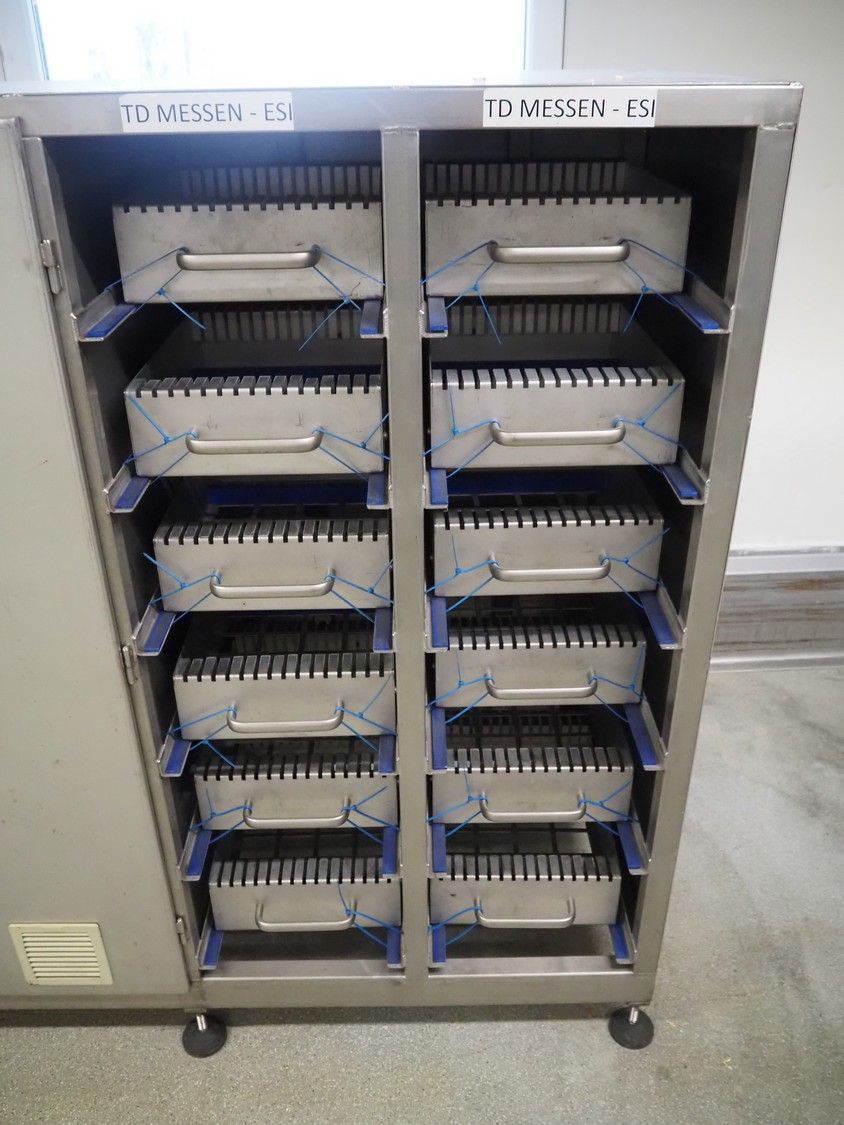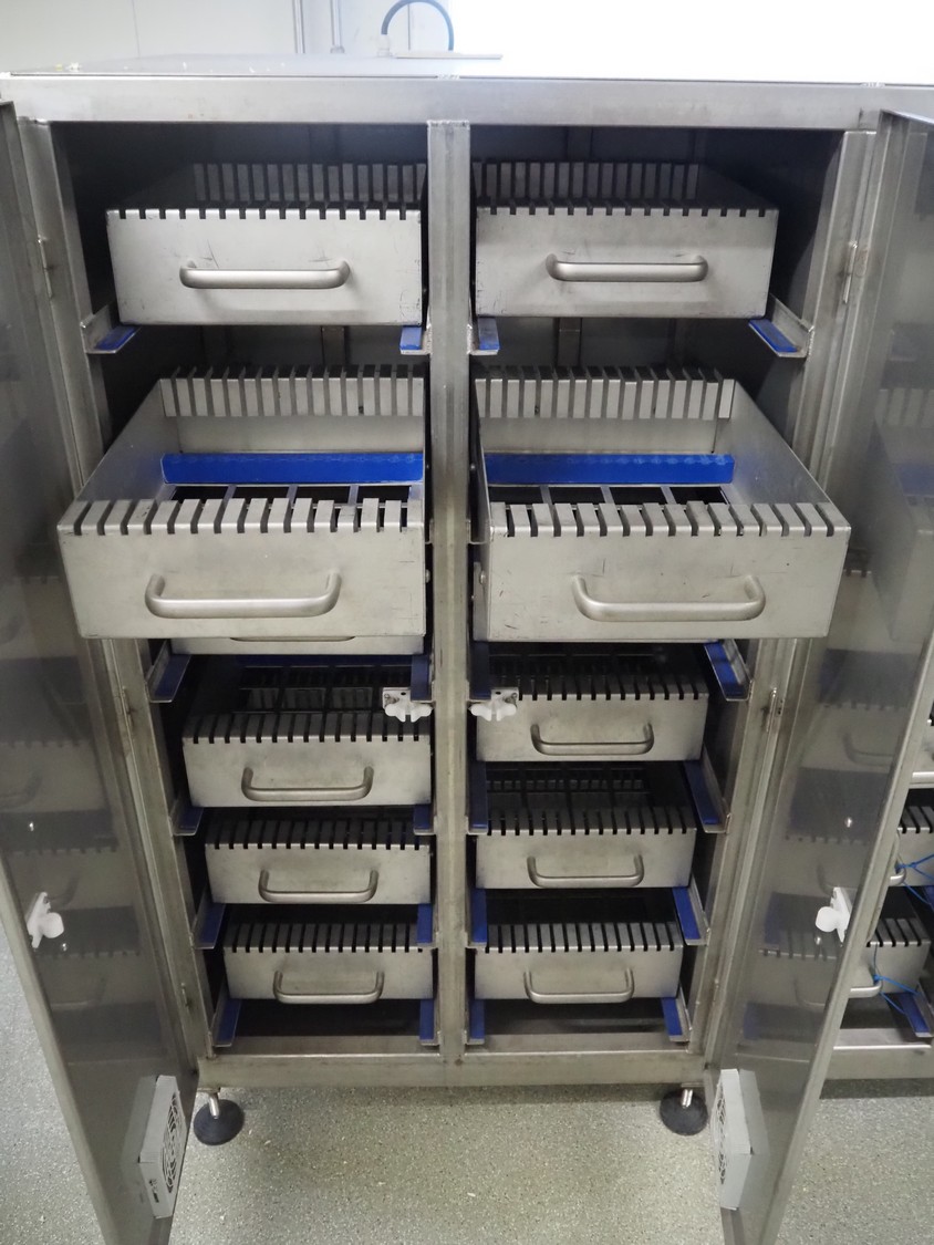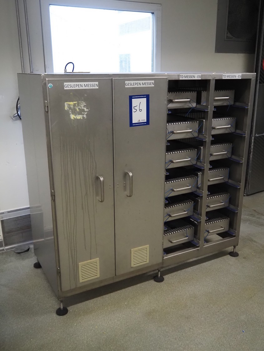 S/s cabinet with 4x 6 compartments for knifes, dimensions: 1600 mm x 700 mm x 1550 mm.