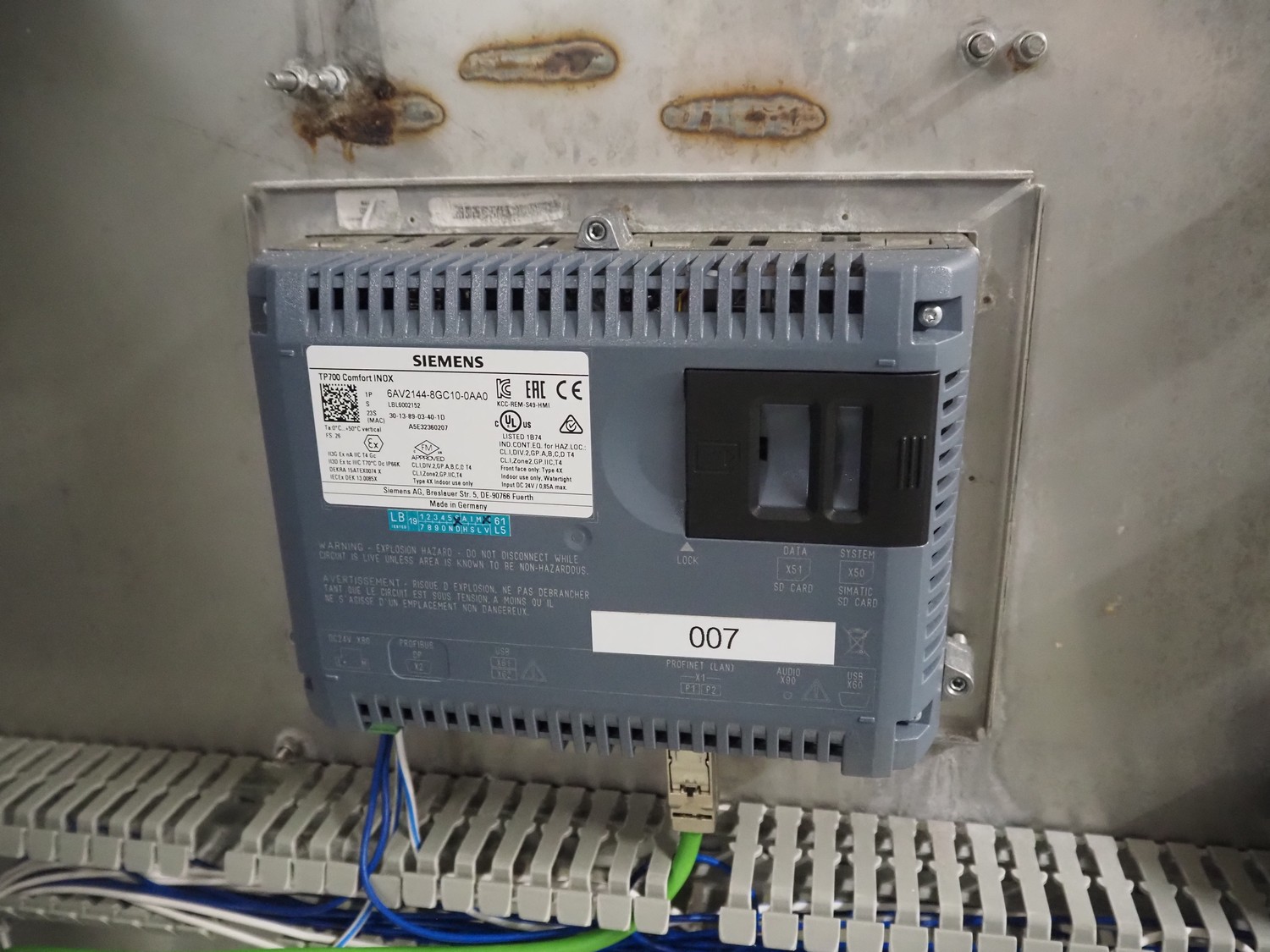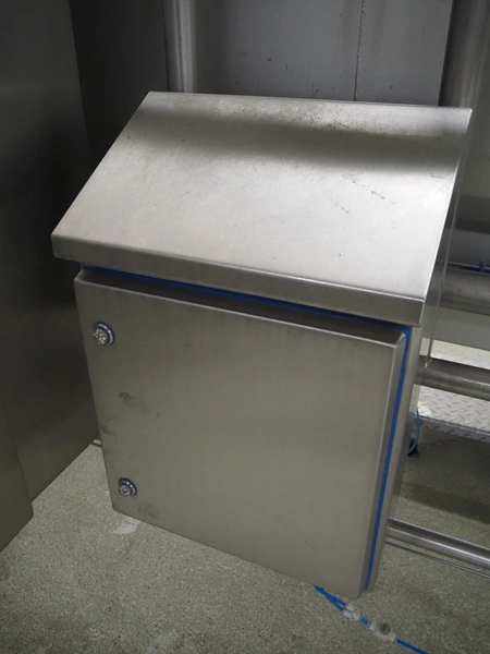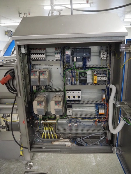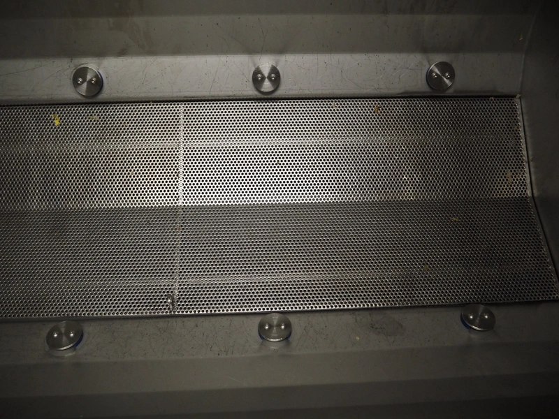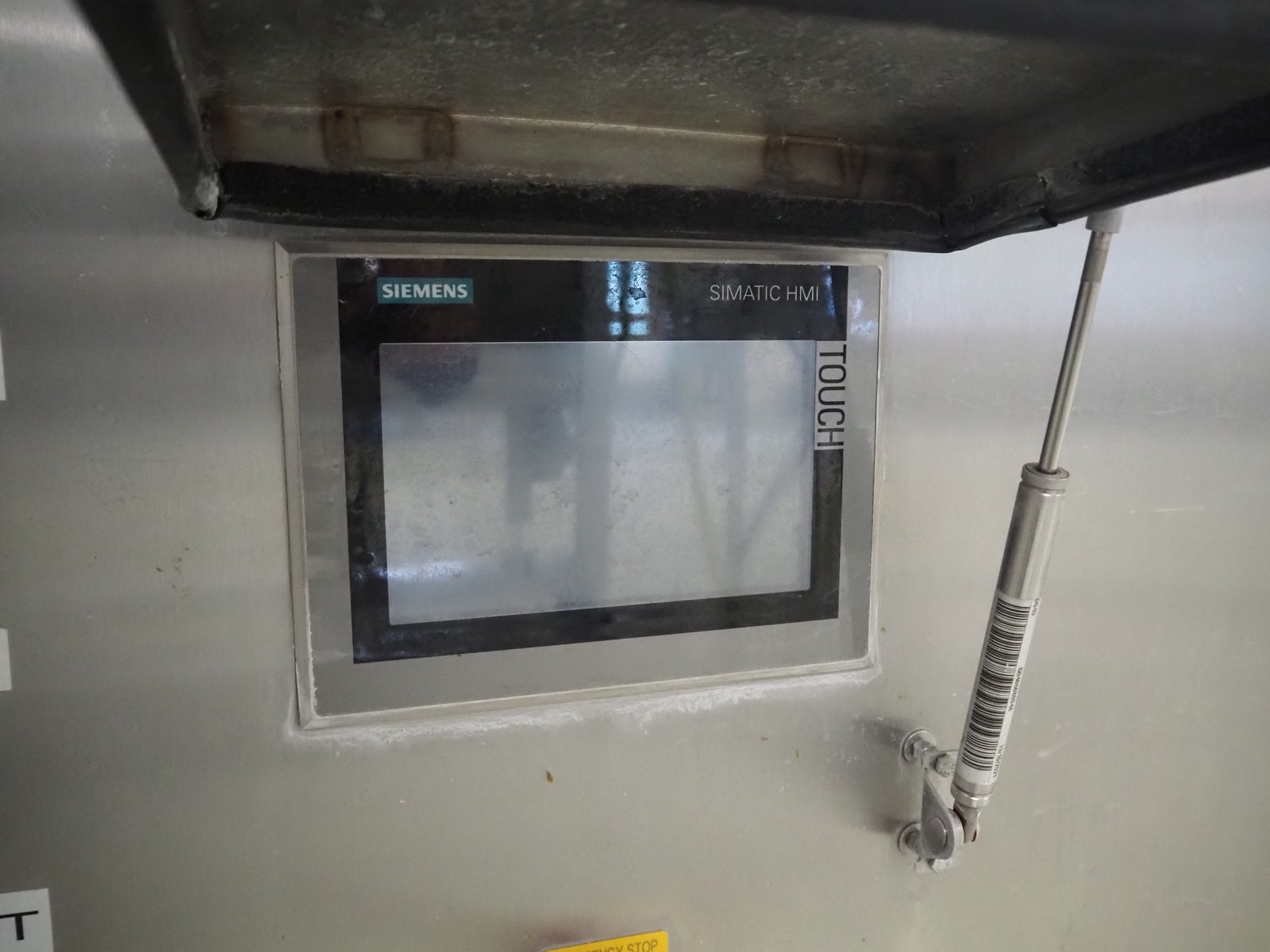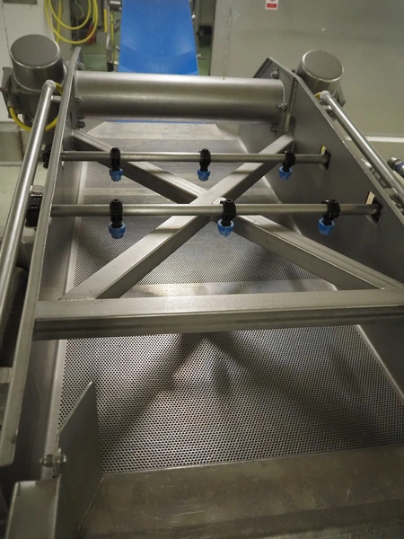 Eillert vegetable washer with outfeed vibrating gutter, model: WASH-20, year of construction: 2015, gutter width: 600 mm, sieve width: 900 mm, sieve: 0.5 mm, 2 Packo Inox centrifugal pumps, total dimensions: 4900 mm x 1500 mm x 1850 mm.