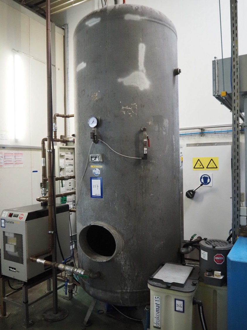 Lohenner GmbH & Co. pressure vessel, production number: 63849/1, year of construction: 1995, maximum working pressure: 11 bar, volume: 3000 liter, diameter: 1200 mm, height: 3400 mm.