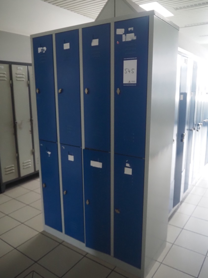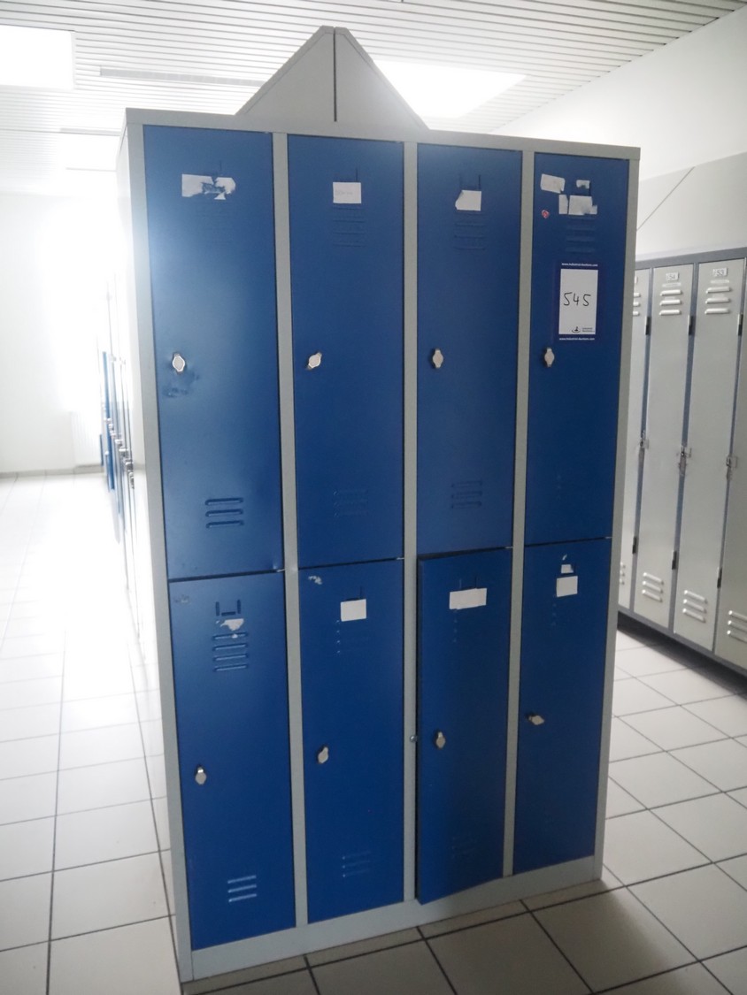 Steel locker, inside dimensions: (8x) 470 mm x 280 mm x 920 mm, total dimensions: 1180 mm x 500 mm x 1950 mm.