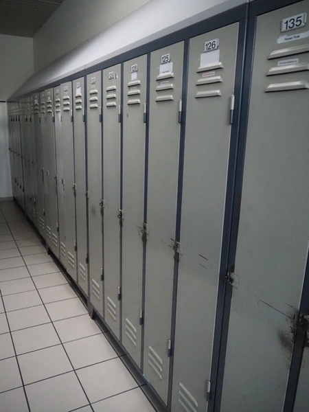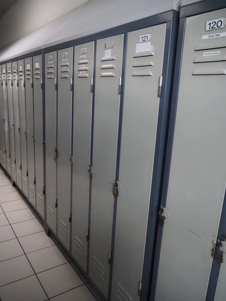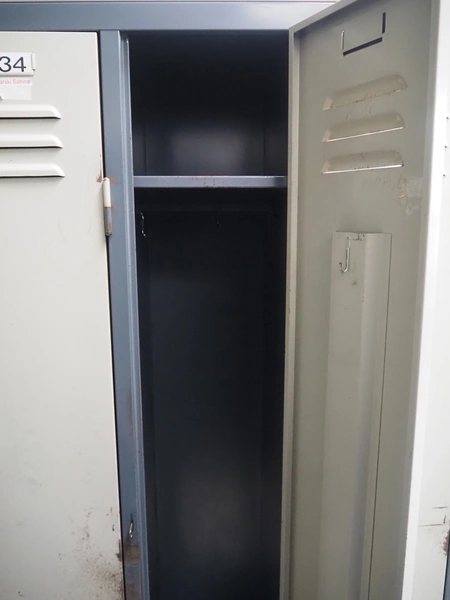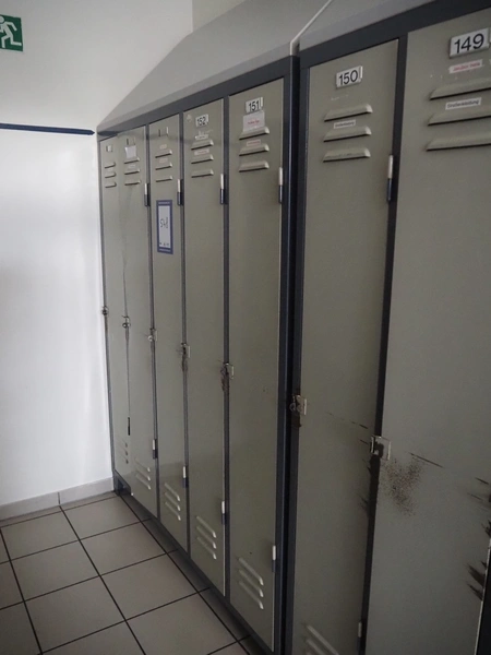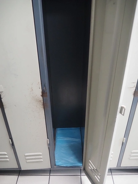 6 steel lockers, inside dimensions: (30x) 330 mm x 470 mm x 1670 mm, total dimensions: (6x) 1530 mm x 500 mm x 2350 mm.