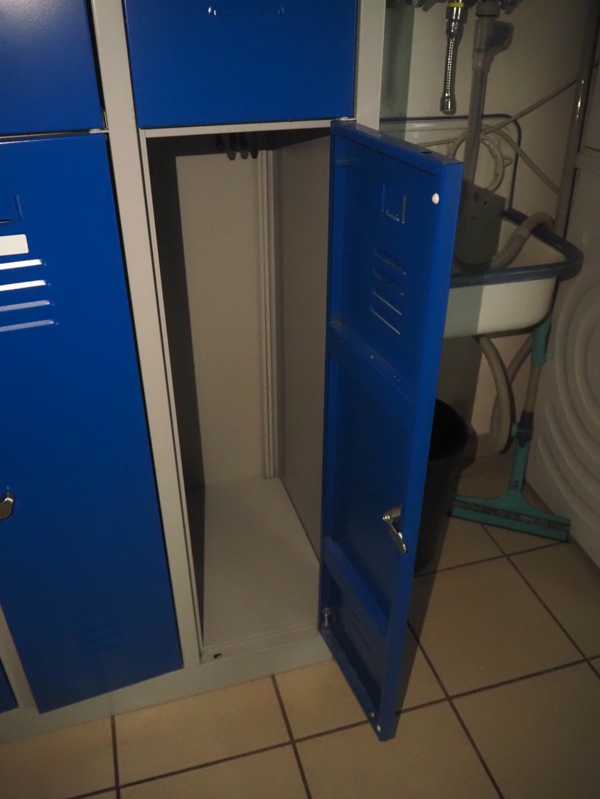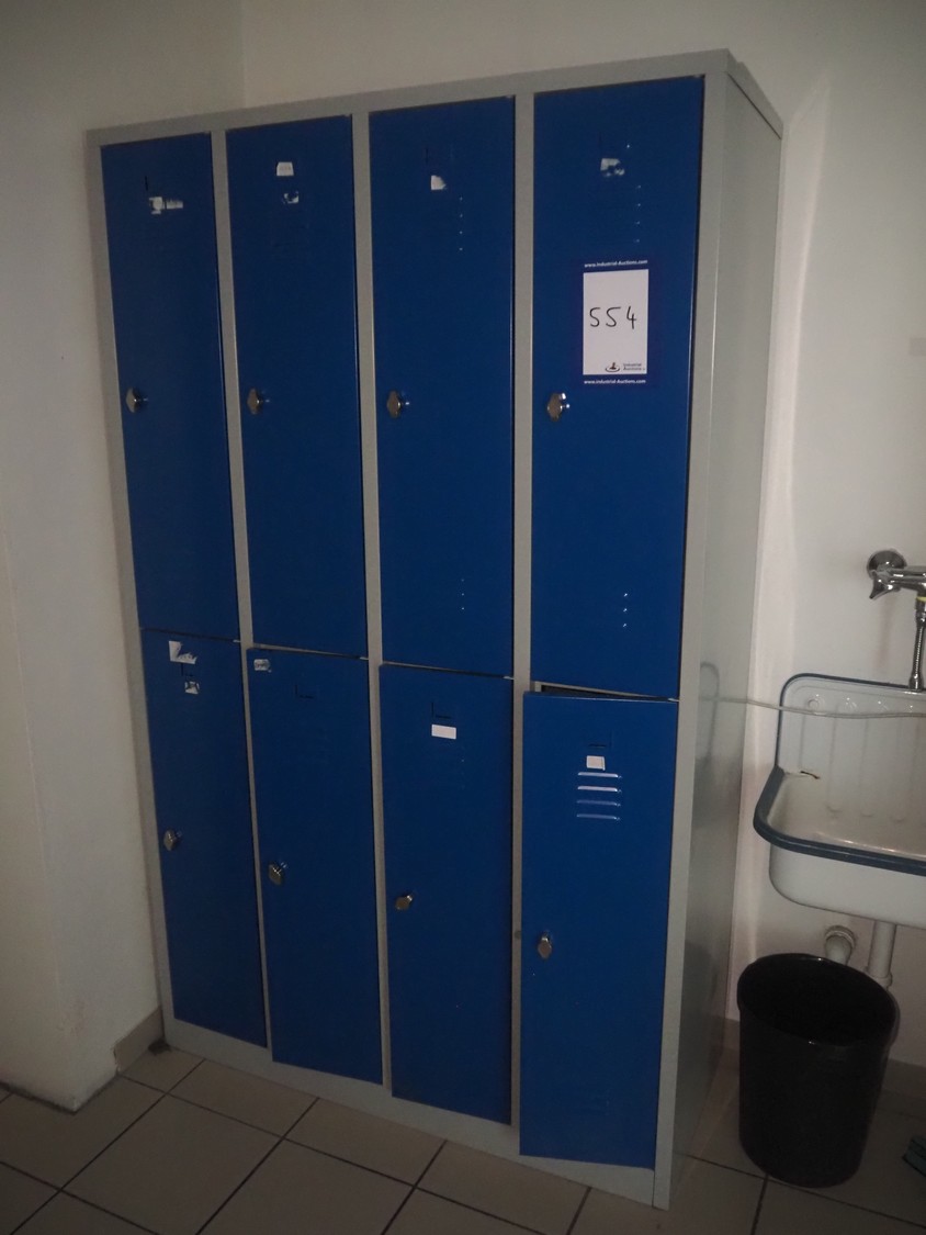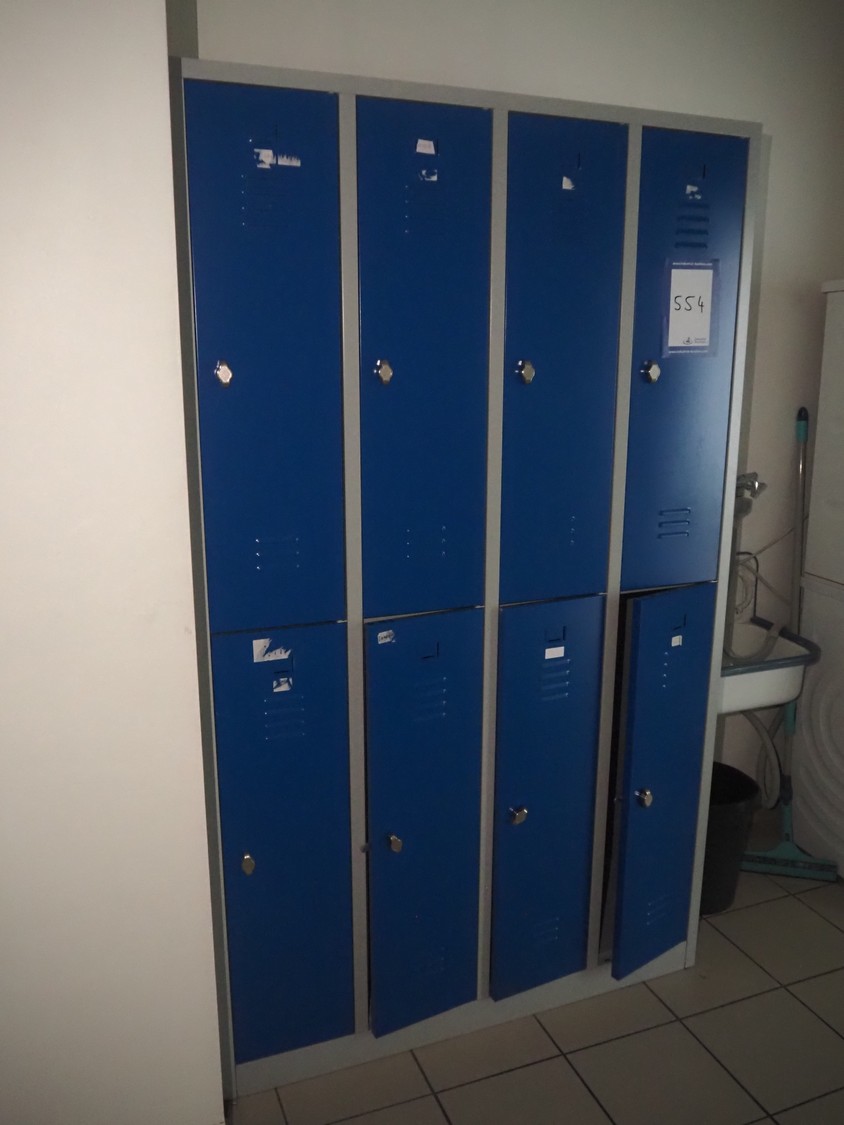 Steel locker, inside dimensions: (8x) 470 mm x 280 mm x 920 mm, total dimensions: 1180 mm x 500 mm x 2300 mm.