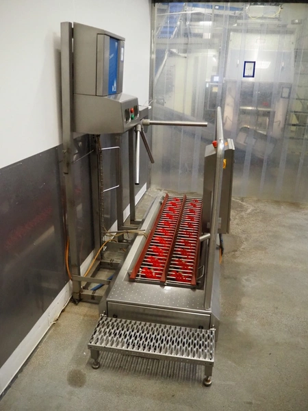 Itec GmbH hygiene station consisting of: sole cleaner, hand disinfection unit and tourniquet, type: 23700, number: 0113, year of construction: 11/99, 230 V, 50 Hz, 0.1 kW, brush length: (2x) 1600 mm, total dimensions: 2500 mm x 1200 mm x 1900 mm.