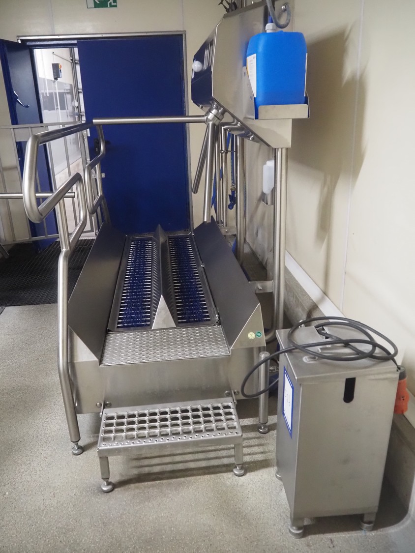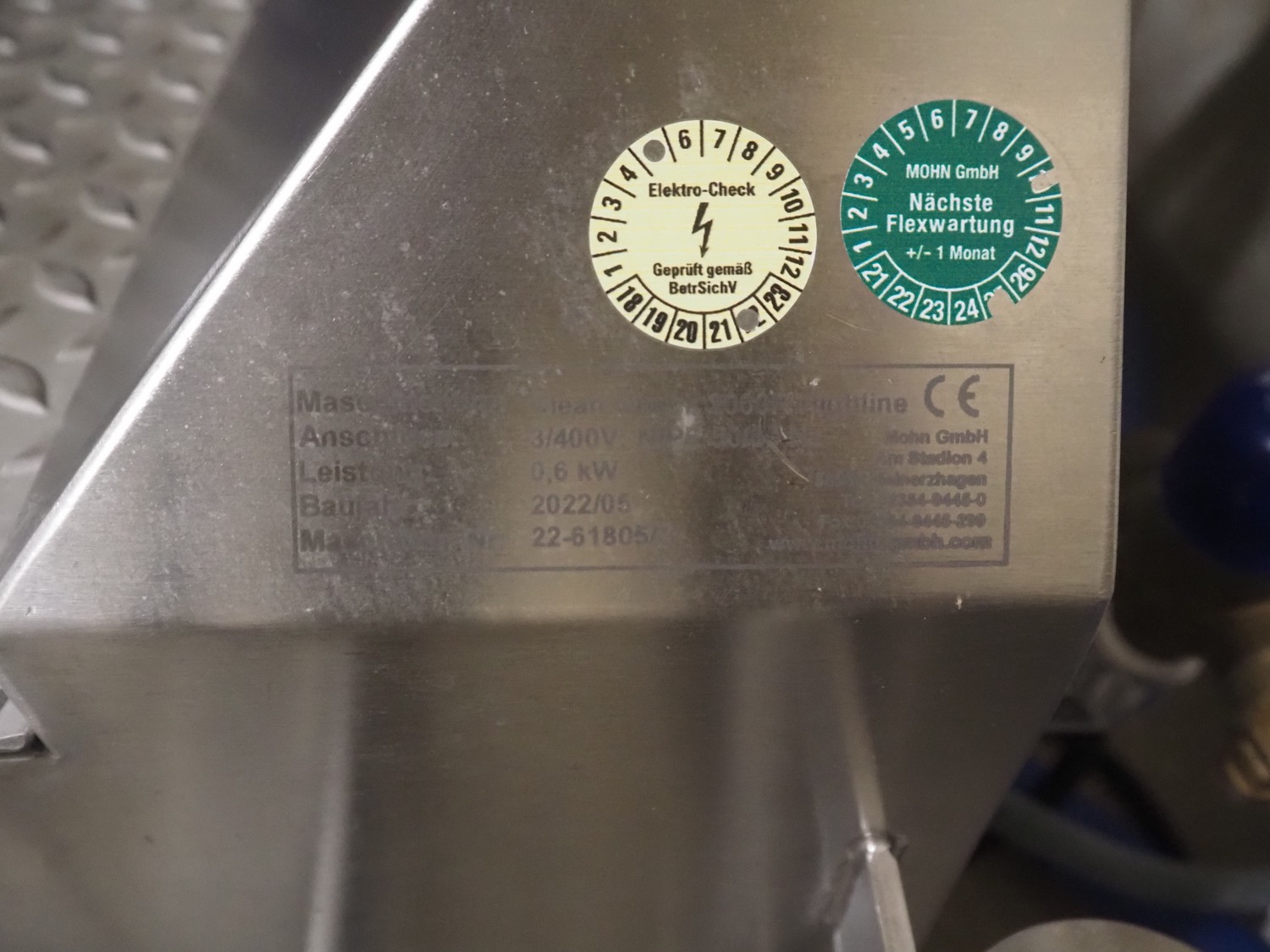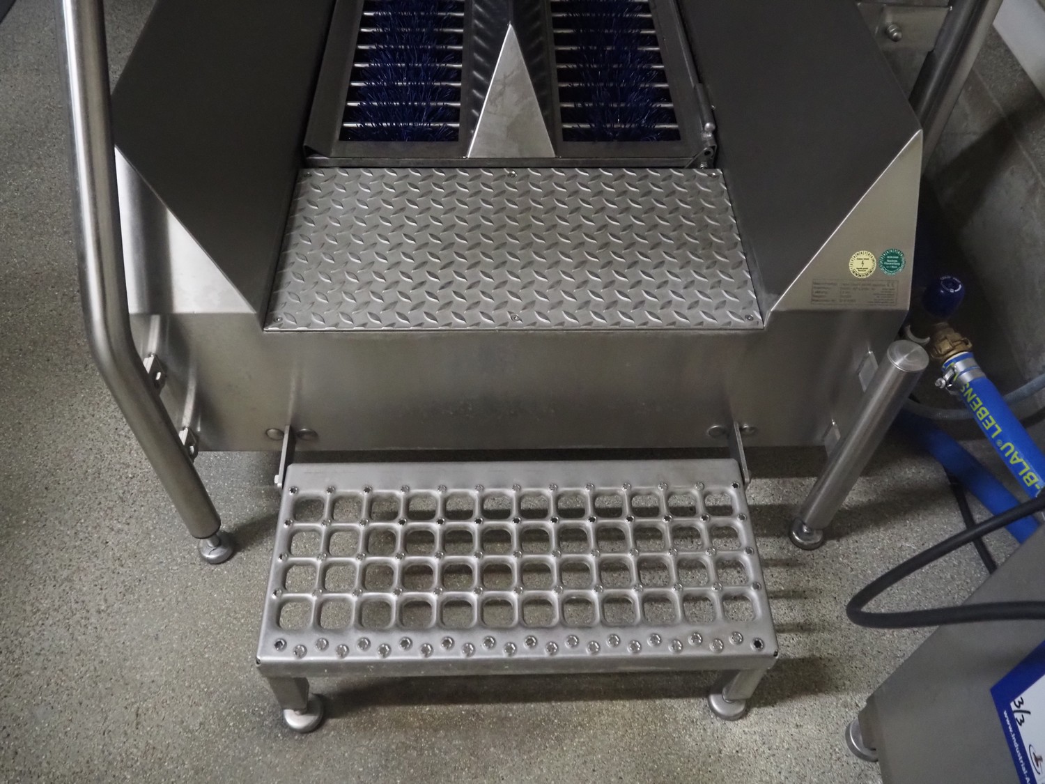 Mohn GmbH hygiene station with tourniquet, sole cleaner and hand disinfection unit, machine number: 22-61805/2, year of construction: 2022/05, 400 V, 3 Ph, 0.6 kW, brush length: (2x) 1580 mm, total dimensions: 2600 mm x 1040 mm x 1830 mm.