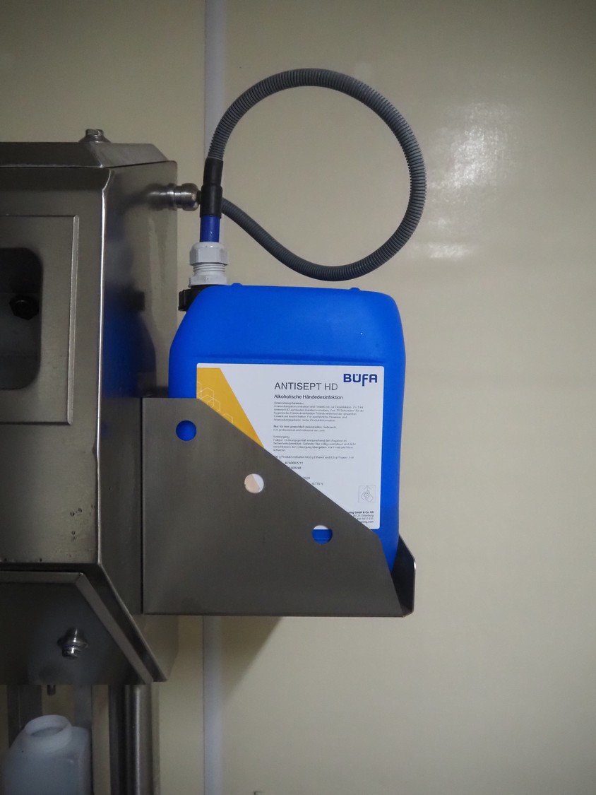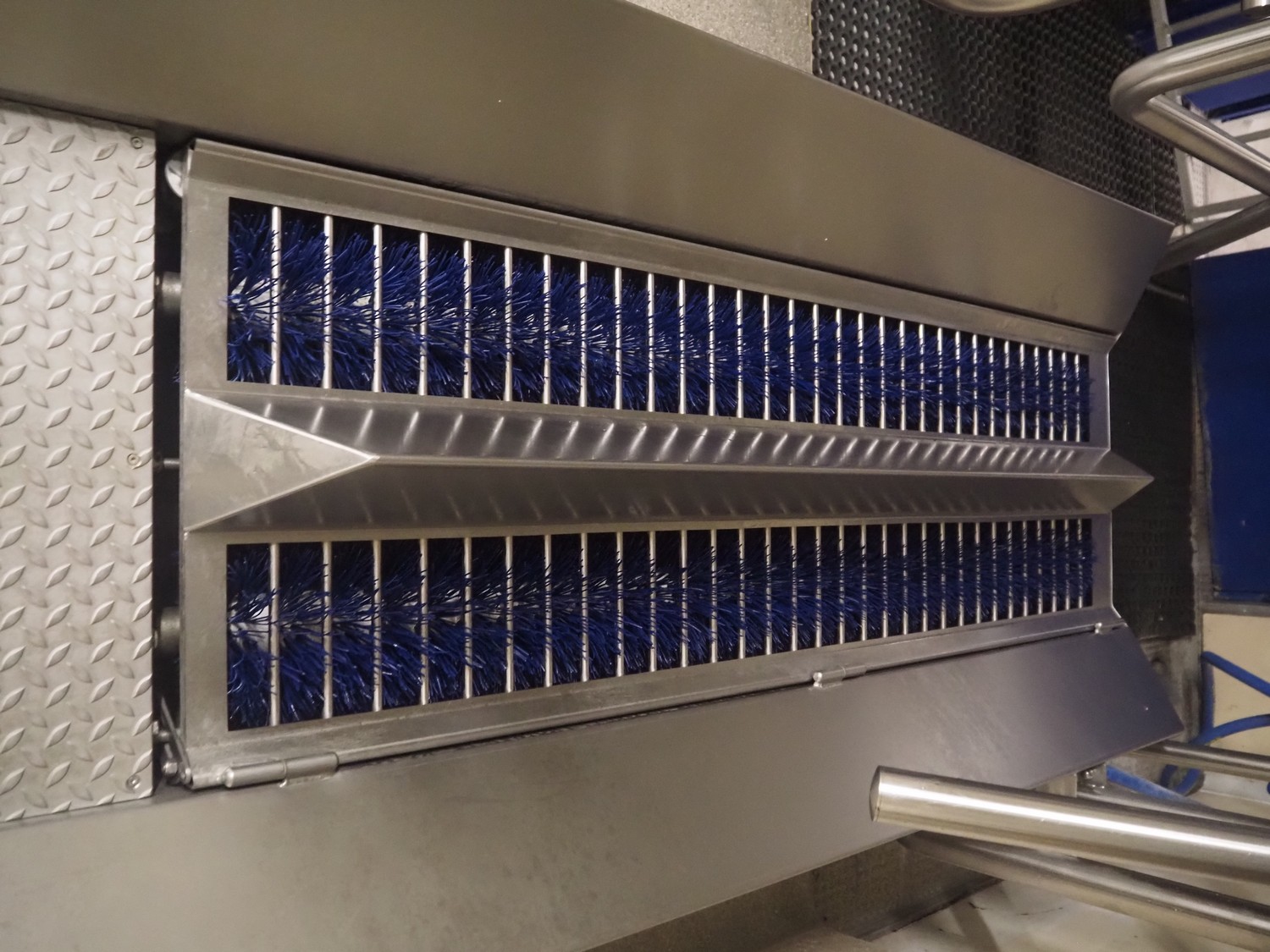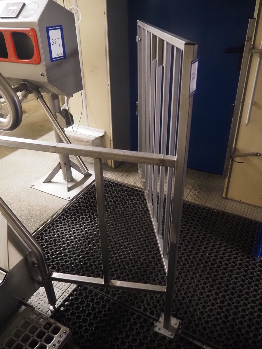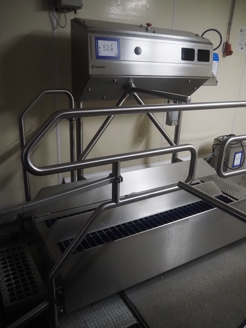 Mohn GmbH hygiene station with tourniquet, sole cleaner and hand disinfection unit, machine number: 22-61805/2, year of construction: 2022/05, 400 V, 3 Ph, 0.6 kW, brush length: (2x) 1580 mm, total dimensions: 2600 mm x 1040 mm x 1830 mm.