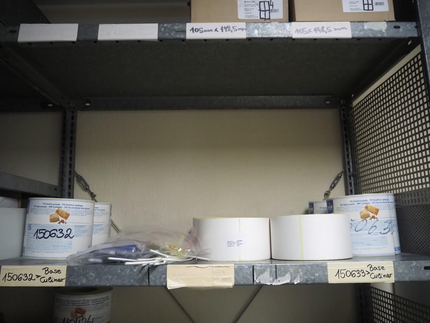 Barrex Lagertechnik GmbH galvanized rack, 6 floors, dimensions: 2070 mm x 550 mm x 2500 mm. Including printed and unprinted labels.