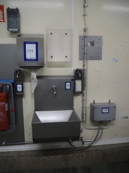 S/s sink with 1 faucet, knee control, dimensions sink: 410 mm x 360 mm x 500 mm, 2 s/s soap dispensers and s/s paper dispenser, dim…€ 75,000 bids26/11/2025 15:10 -