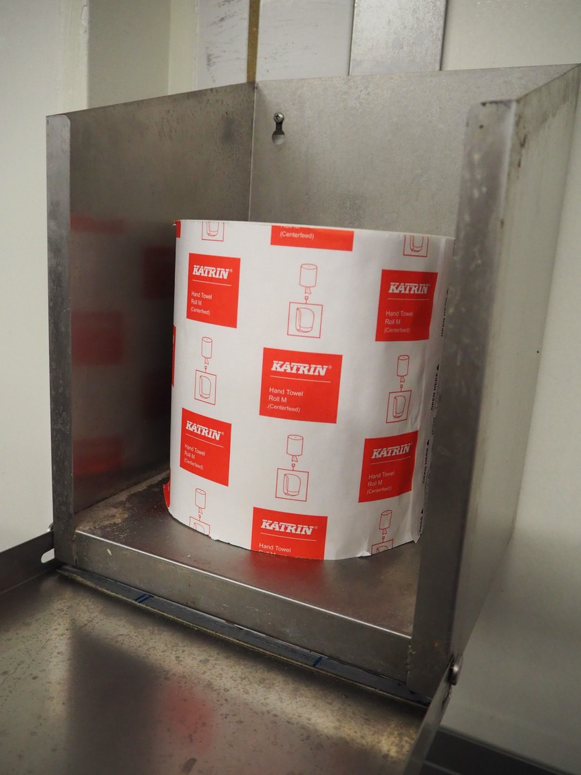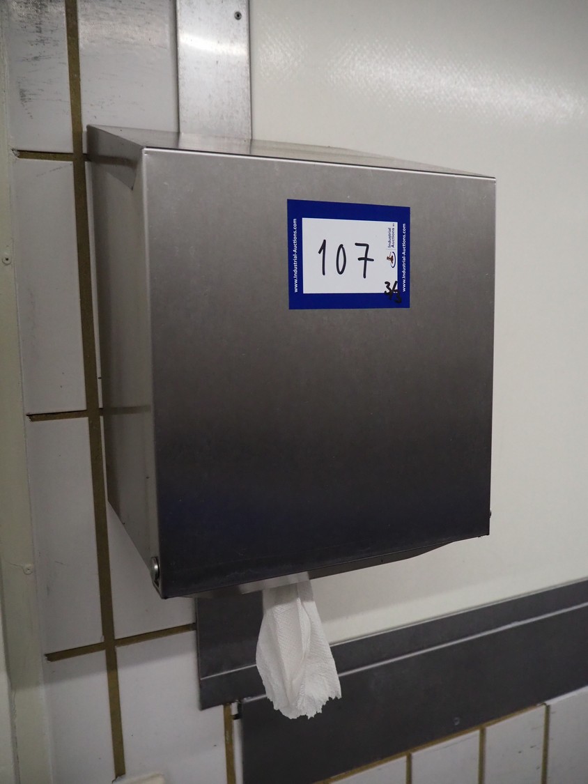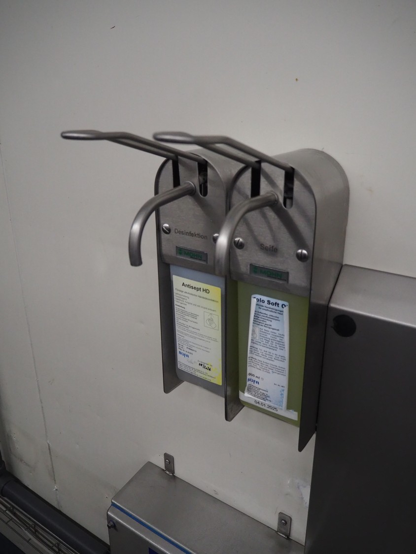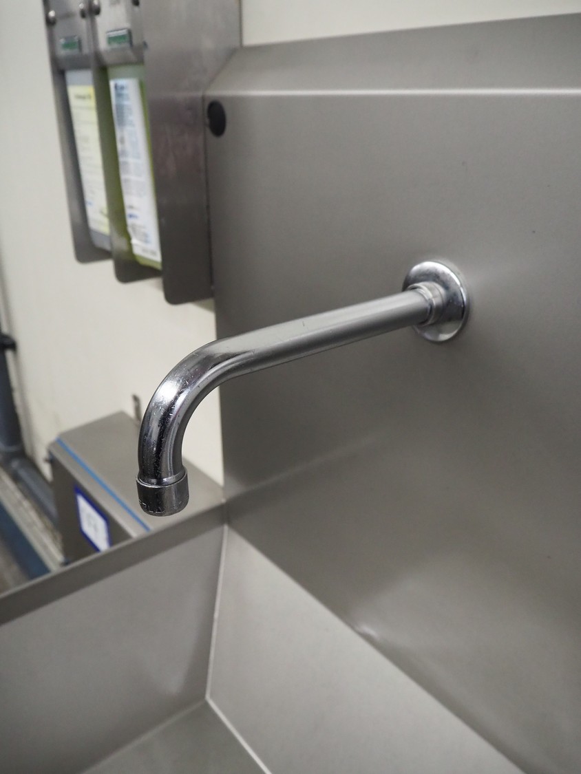 S/s sink, knee control, dimensions: 500 mm x 450 mm x 700 mm, s/s paper dispenser, dimensions: 280 mm x 250 mm x 580 mm, 2 Mohn s/s soap dispensers.