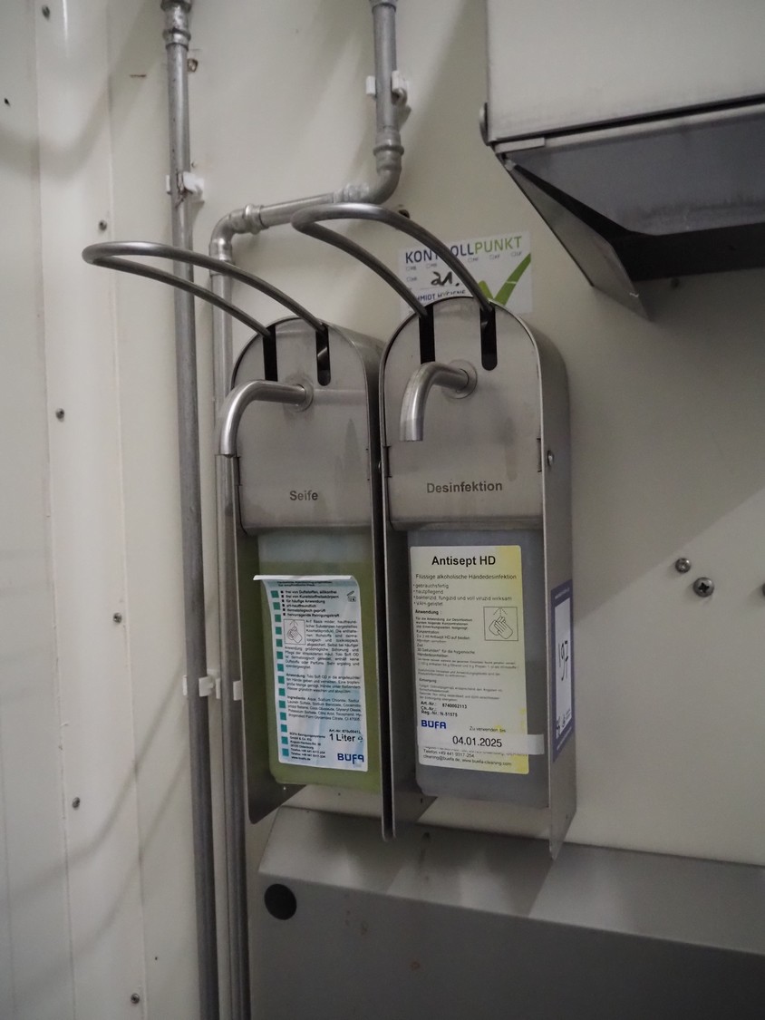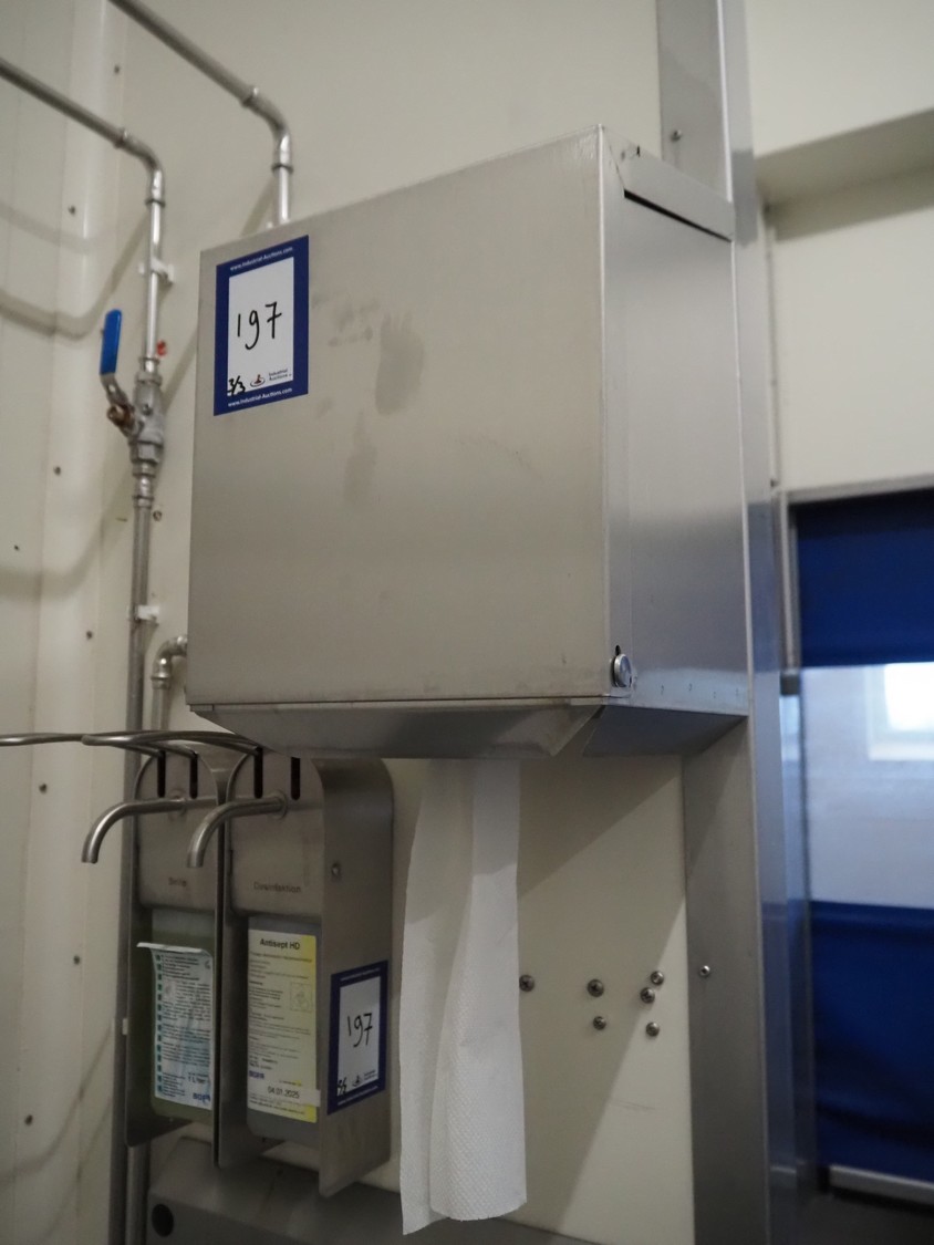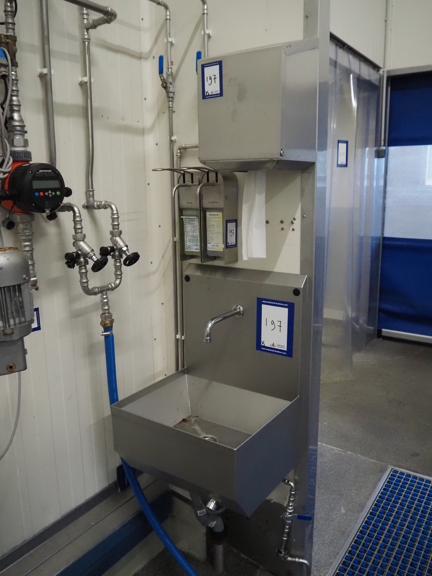 S/s sink, knee control, dimensions: 500 mm x 450 mm x 700 mm, s/s paper dispenser, dimensions: 280 mm x 250 mm x 380 mm, 2 s/s soap dispensers.