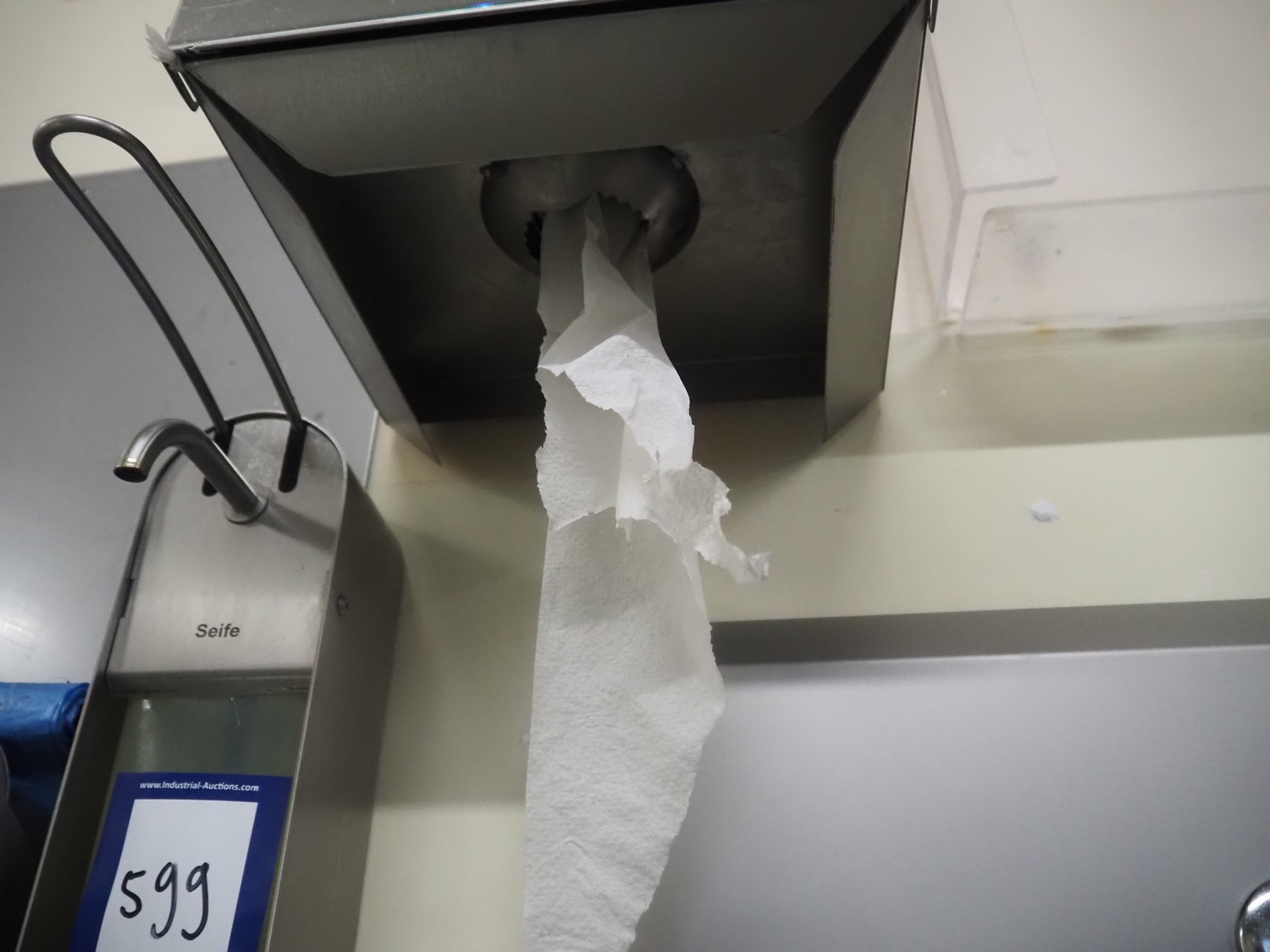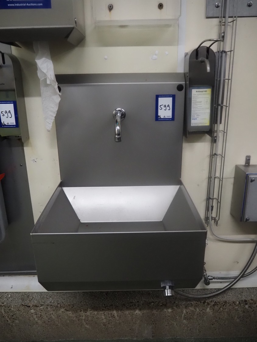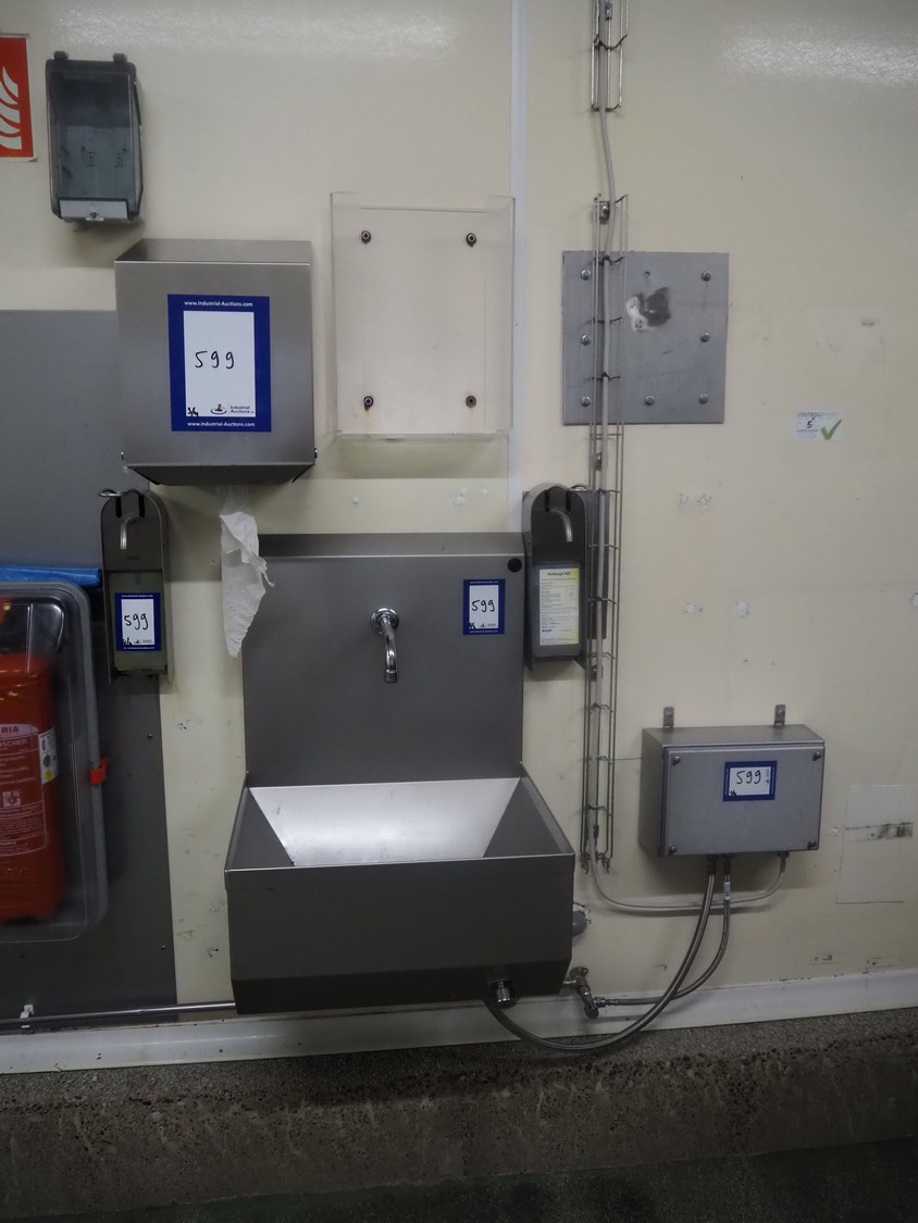 S/s sink, knee control, dimensions: 500 mm x 450 mm x 700 mm, s/s paper dispenser, dimensions: 280 mm x 250 mm x 580 mm, 2 s/s soap dispensers.