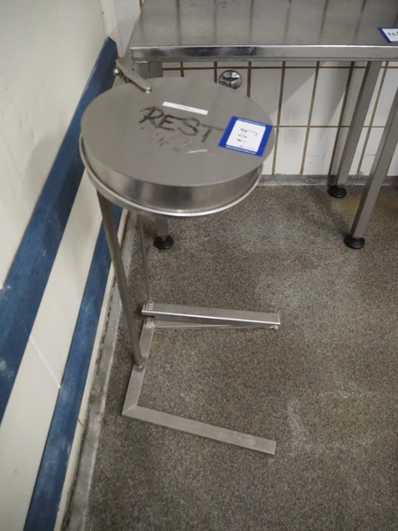 S/s waste bag holder, foot control, dimensions: 500 mm x 400 mm x 900 mm.