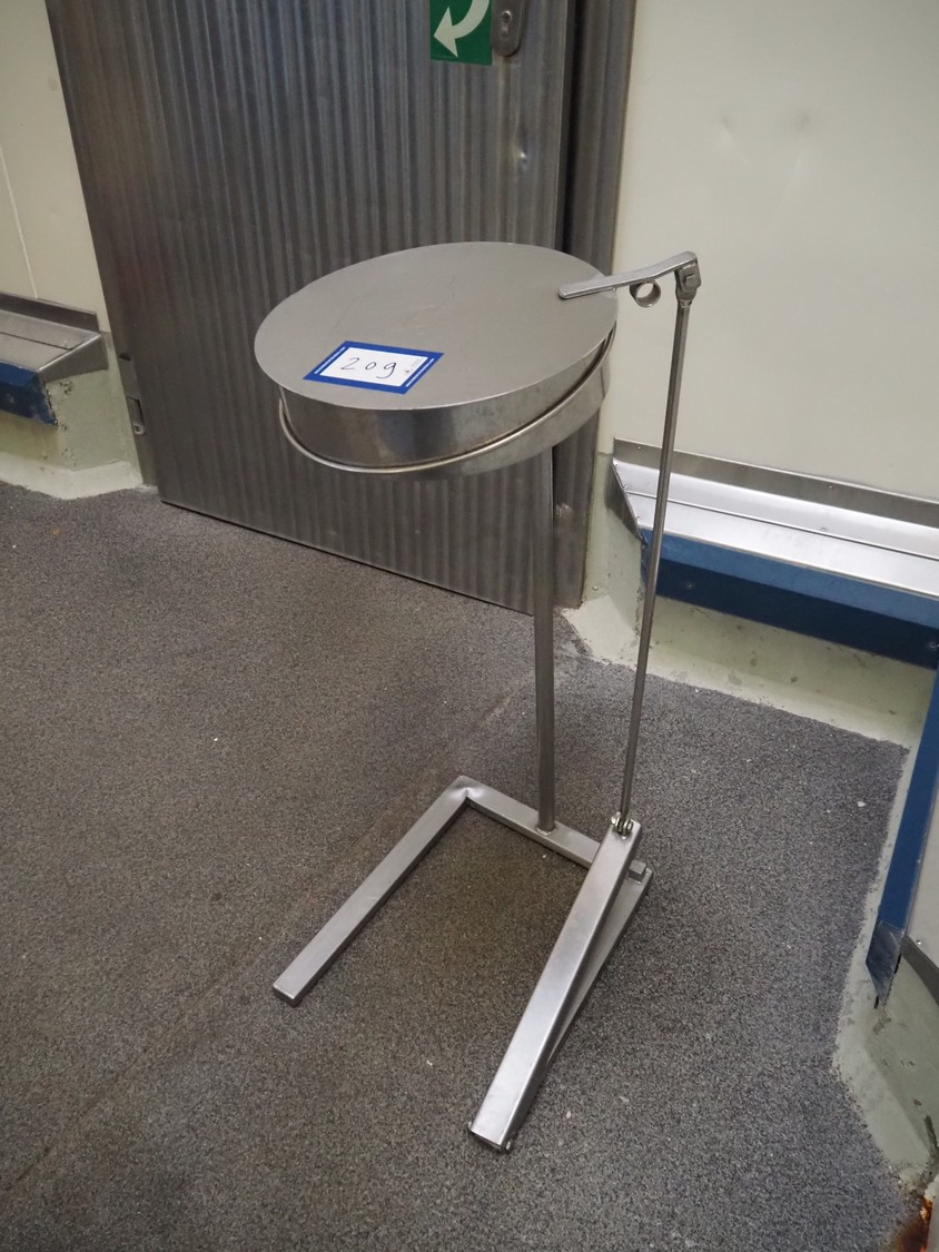 S/s waste bag holder, foot control, dimensions: 500 mm x 400 mm x 900 mm.