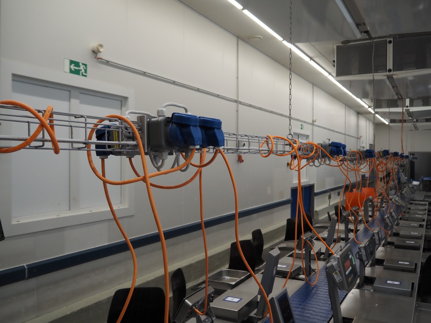 S/s gutter with 45 electric sockets, length: 17000 mm.