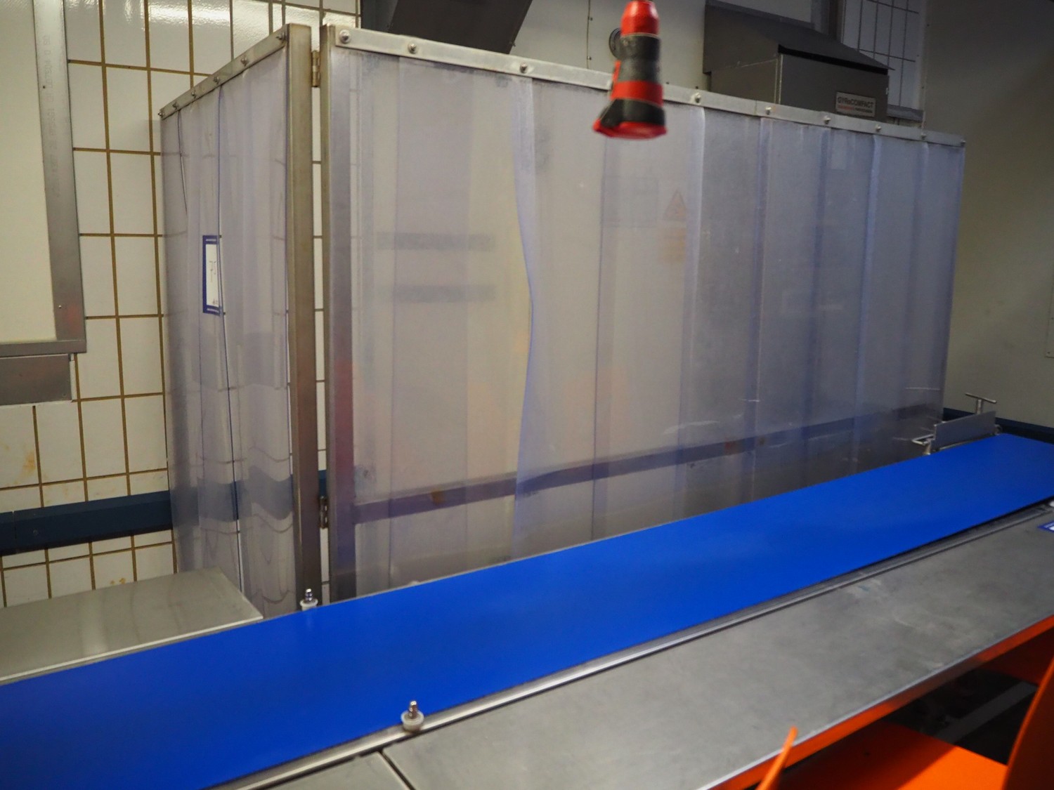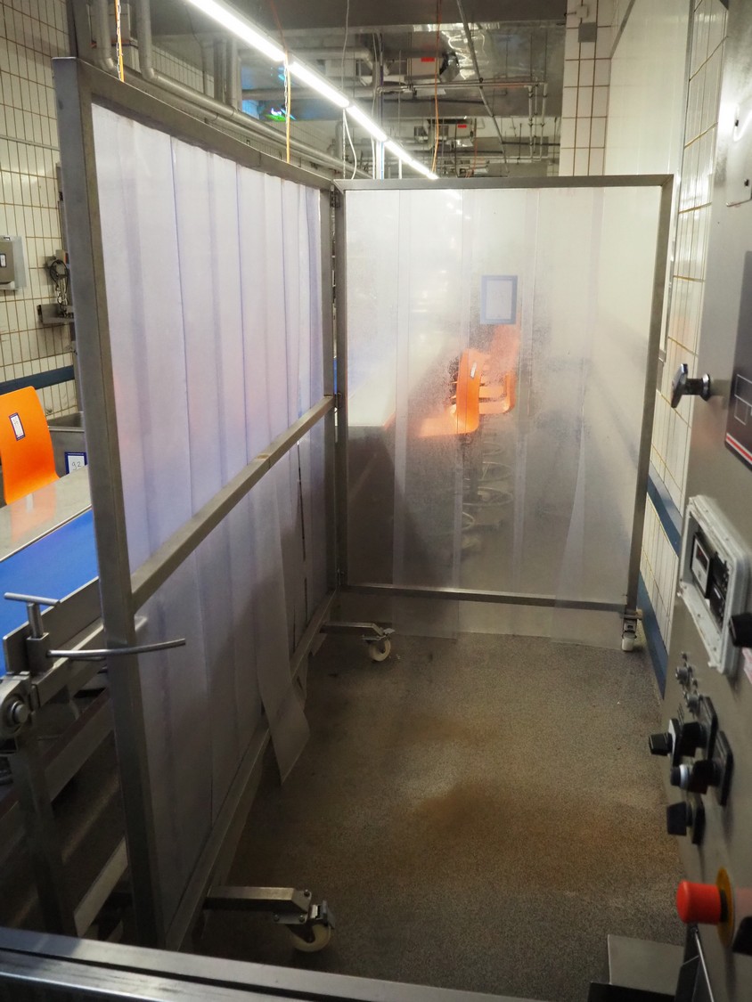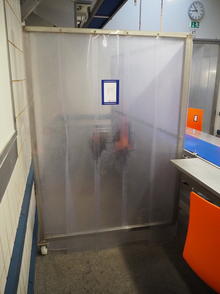 S/s mobile screen with plastic curtains, dimensions: 2200 mm x 1500 mm x 1930 mm.