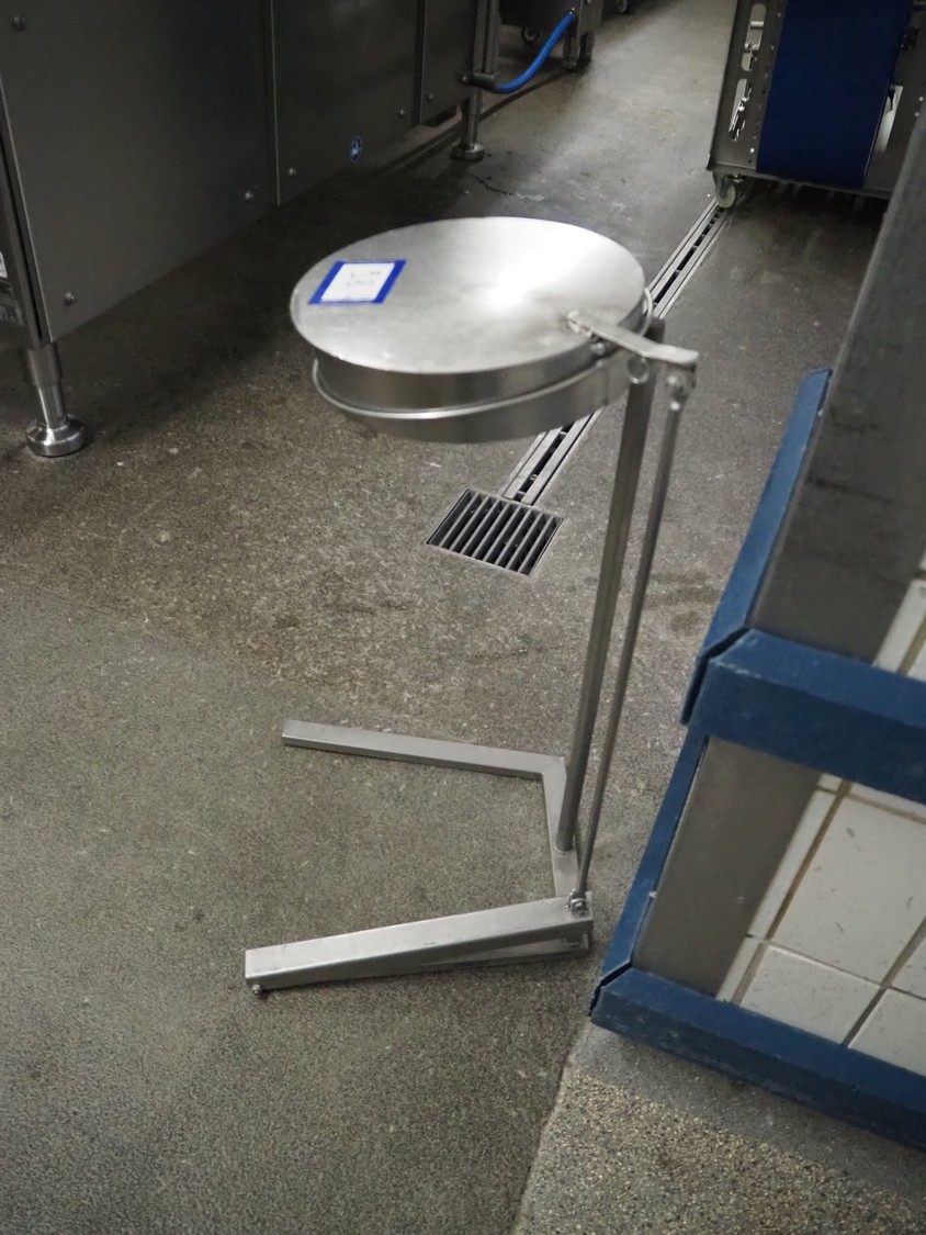 S/s waste bag holder, foot control, dimensions: 500 mm x 400 mm x 900 mm.